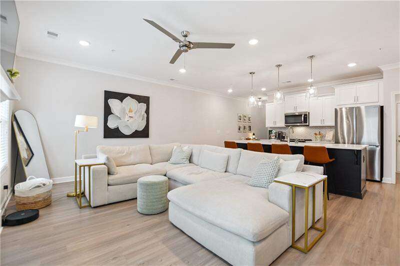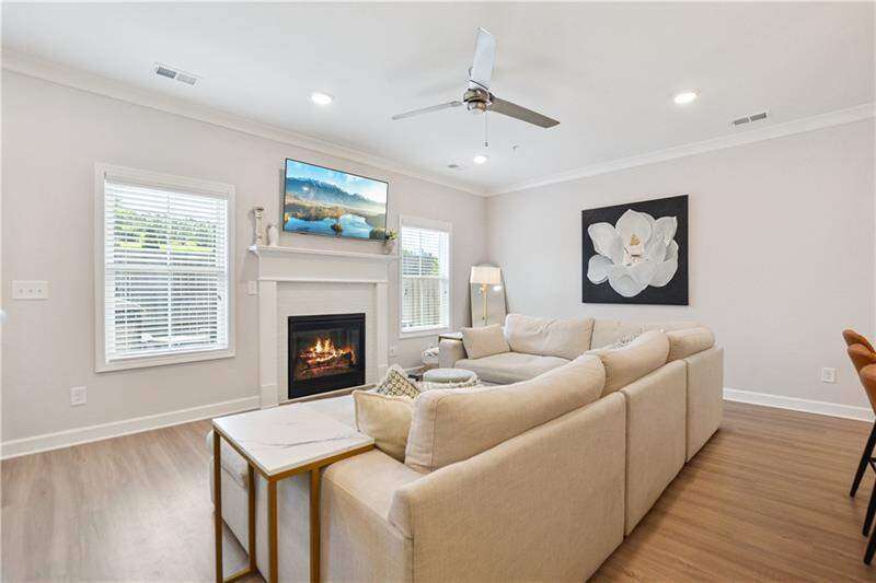 MODERN LUXURY MEETS CONVENIENCE IN THE HEART OF MARIETTA + 100% FINANCING OPPORTUNITY ON THIS NEARLY NEW, MOVE-IN READY TOWNHOME!!! Ask about PATH loan eligibility, offering $0 down and no PMI for qualified buyers! This beautifully upgraded Traton Homes "Brooks B" floor plan sits in the boutique Gates at Hamilton Grove community - just 1.5 miles from Kennesaw Mountain and minutes to the Marietta Square, Kennestone Hospital, Barrett Parkway, Kennesaw State University, and major commuter routes. Built in late 2023, this 3-bed / 2.5-bath townhome offers over 1,800 square feet of thoughtfully designed space with custom touches throughout. The open-concept main level features durable LVP flooring, a cozy gas fireplace, and a designer kitchen with white cabinetry, quartz countertops, stainless appliances, pendant lighting, and a large island perfect for entertaining. Enjoy meals in the dedicated dining area or relax on the extended private patio - ideal for grilling or your four-legged friends. (Yes, fencing is allowed!) Upstairs, find a generous loft flex space, a spacious primary suite with a walk-in closet and spa-like bathroom, plus two additional spacious bedrooms and a full bath. Recent upgrades include stylish lighting, custom paint + wallpaper, and decorative wall trim. Neighborhood amenities include a pool, playground, fire pit, and green space. Whether you're a first-time buyer or looking for turnkey luxury in a thriving Cobb County location, this one checks every box. Motivated sellers - don't miss your chance!