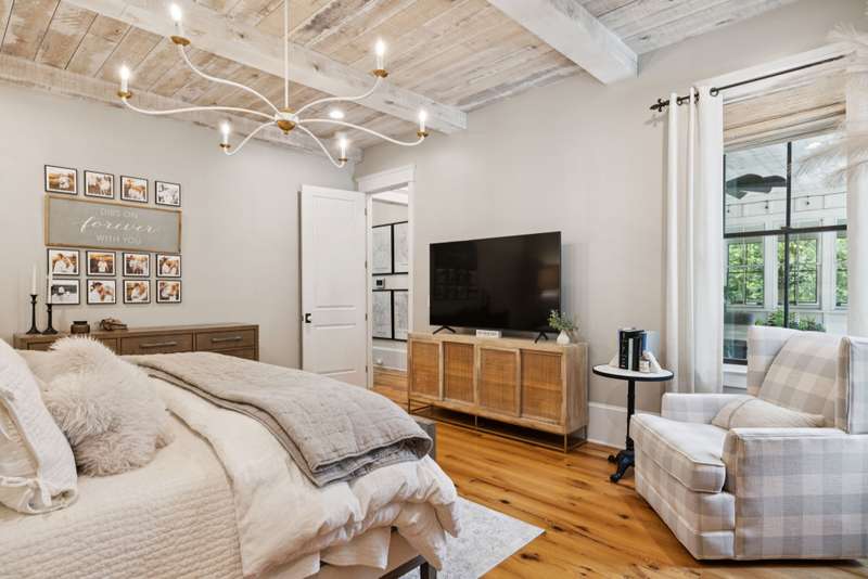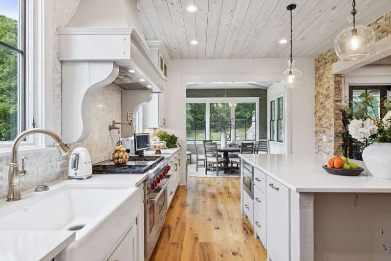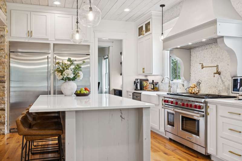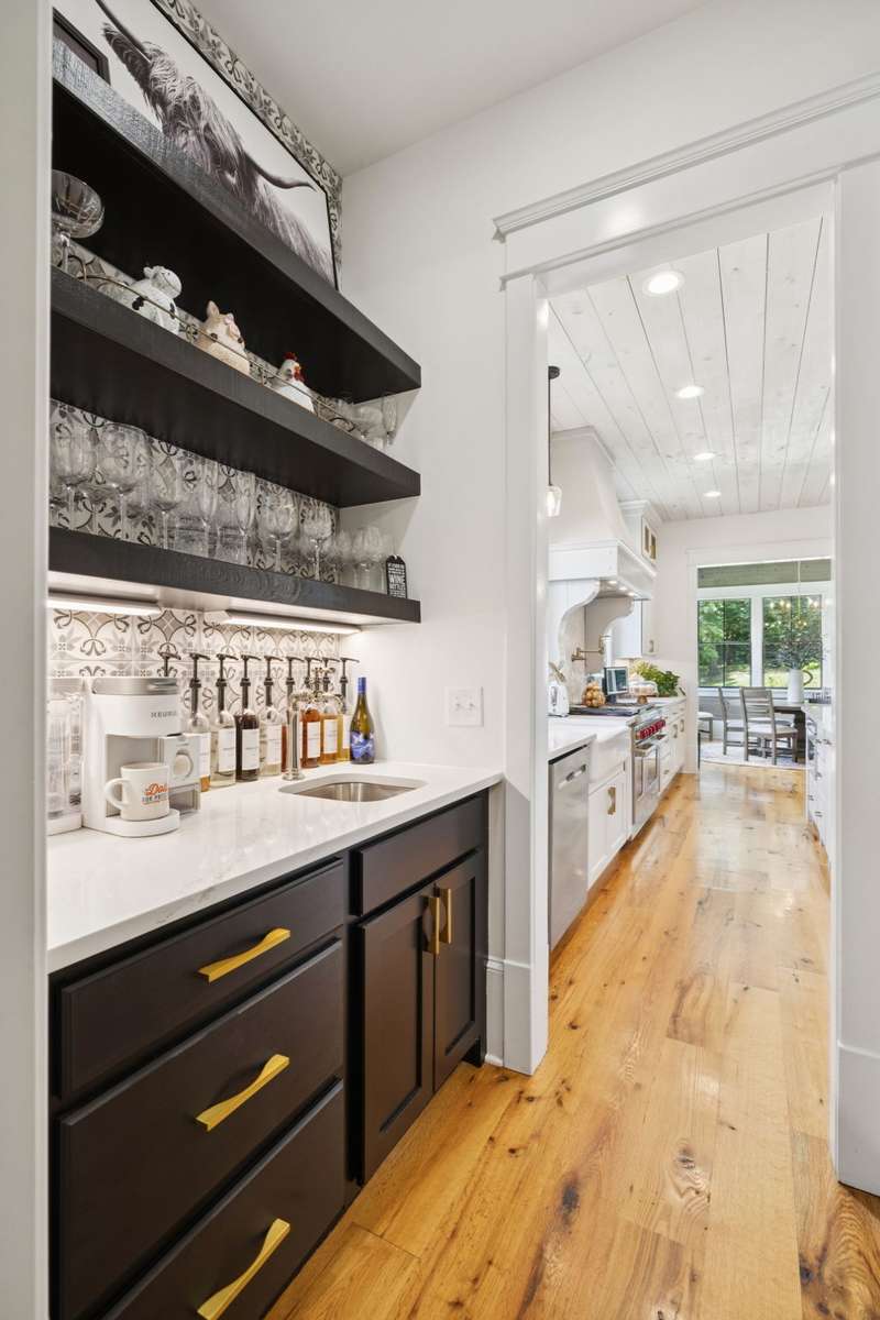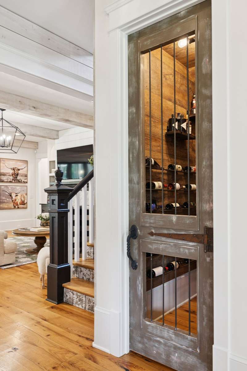 Inside, no detail is spared from the premium lighting to the hardwood & tiled floors. Wine cellar, wooden beam ceilings, shiplap accents, 8' doors, home theatre with sound bar just to name a few features that make this home unique. Gourmet kitchen includes Wolf gas range, double ovens, microwave, quartz counters, full size refrigerator and freezer and butlers pantry with prep sink. The garage is conditioned space, one bay is tantum to accommodate a 4th car or provides a great workshop area. Custom closets and great storage. Beautiful views from every window.