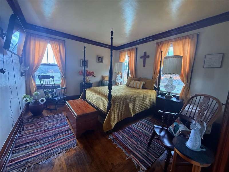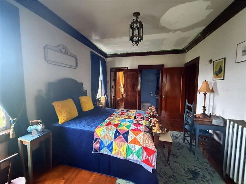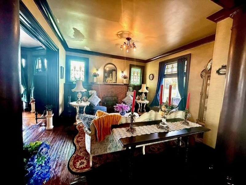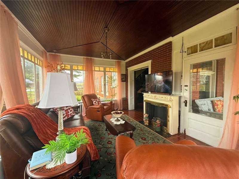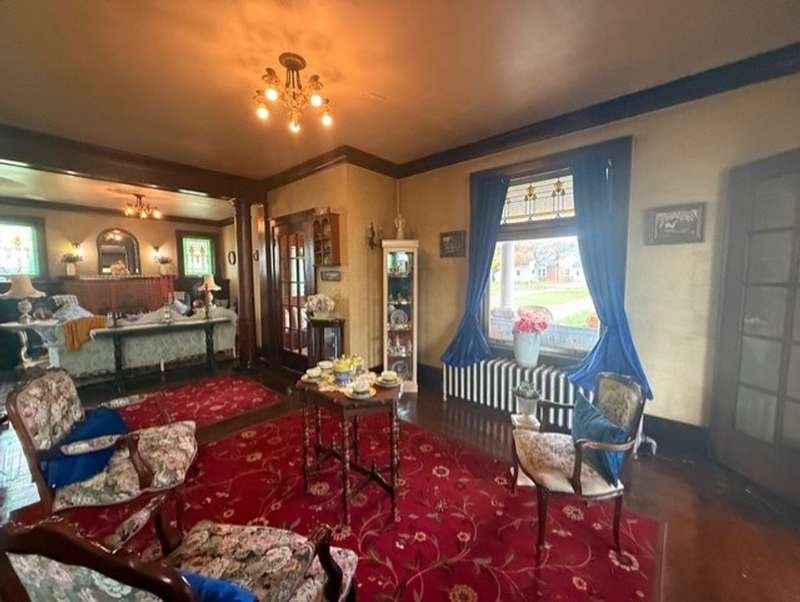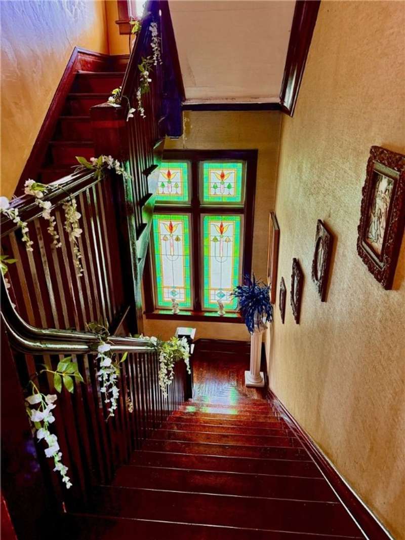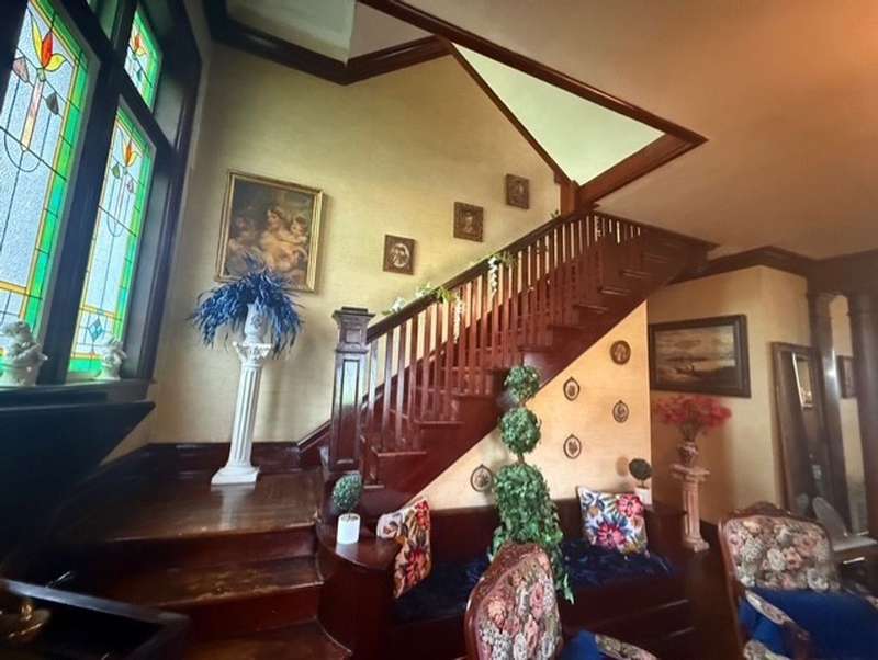 1920 3 story brick home with lots of opportunity! Must see! Beautiful double door main entrance with original tile work . Home has original woodwork, stained glassed windows and hardwood floors and more original tile flooring. The Grand stair case has a storage seat at bottom. The 4 season room that could be used for office, playroom, or just relaxing. This home has 9 bedrooms 3 full baths and one 1/2 bath. new butcher block countertops in kitchen. The owners have made a reading room and a office 0ut of the main floor bedrooms. Each floor has a full bath. large laundry room on second floor. Third floor needs some work has kitchen full bath and three rooms, with a separate entrance that just needs steps to it from the outside. Would make a great Bed and Breakfast, Then you also have the 2 bedroom apartment That is ready to rent, above the 3 car garage.