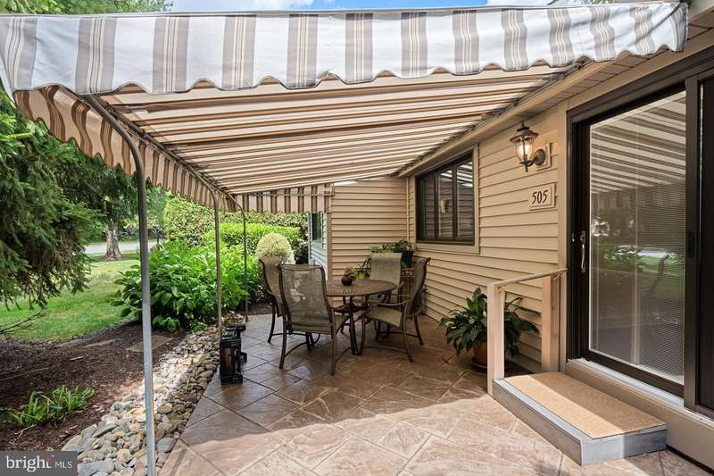 Welcome to 505 Eaton Way, a beautifully updated and maintained 2-bedroom, 2.5-bath home in the highly desirable Eaton Village at Hershey's Mill. This comfortable home practically invites you in. Your garage is right in front of your house, and a short flat entry path without any steps to home. Effortless one-floor living! Step into a wide and elegant entry foyer taking you to the stunning two-story living, awash in natural light from skylights above, complemented by a cozy fireplace for year-round warmth. To the left, a formal dining room provides an elegant space for entertaining. The updated eat-in kitchen features granite countertops and opens directly to a large, stamped concrete patio-screened by lush plantings maintained by the HoA for private outdoor living. Two spacious bedrooms are thoughtfully designed, each with its own full bathroom, and walk in closet -ideal for owners and guests alike. Downstairs, a HUGE finished basement offers incredible flexibility with three separate rooms and a powder room-perfect for visiting out of town guests, a home office, hobby rooms, or a media retreat. It would do handsomely for a large comfortable play area for other visitors whose toys would not be underfoot ! Enjoy peace of mind with newer systems and the meticulous care this home has received. Located directly across the lot from the Eaton Village pool for a quick dip for you on a hot day, you'll have quick access to all of Hershey's Mill's outstanding amenities, including golf, tennis, walking trails, 24/7 security, and more. This is truly a move-in-ready gem in one of Chester County's premier 55+ communities.
