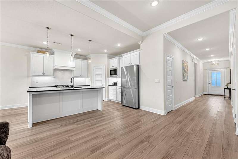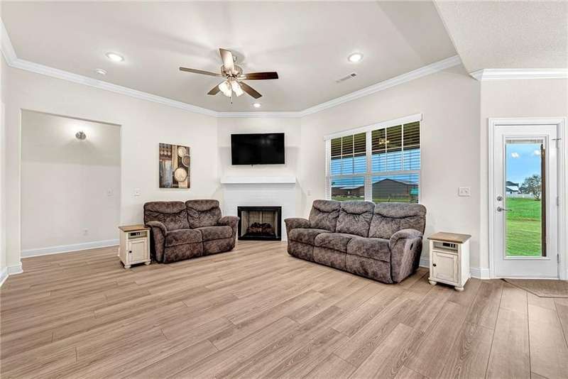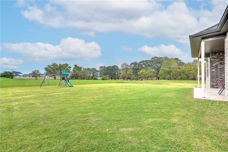 Welcome to this immaculate three-bedroom, two-bath home located in a sought-after subdivision! This property is a rare find with no neighbor on the right side and the backyard that backs up directly to an open field, ensuring relaxation which feels like you are in the country but still nestled in a subdivision. The home features a highly desirable open floor plan, perfect for hosting and daily life. You'll especially love the layout, as the private master suite is completely separate from the other two bedrooms. This space boasts an elegant en-suite bath with a luxurious soaking tub and a generous walk-in closet. Enjoy the perfect blend of convenient subdivision living with the unique benefit of natural, protected green space and a smart, private floor plan.