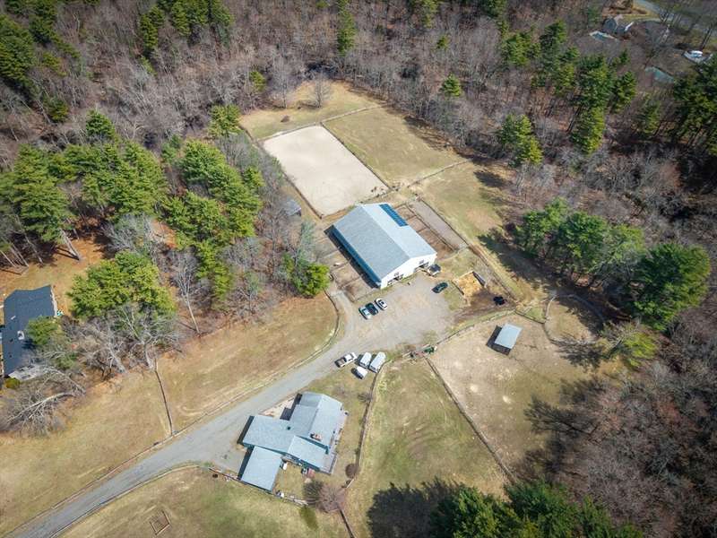 Opportunity for your Animal Sanctuary awaits on this 8.92 acre horse farm featuring 8 pastures, a 24 stall 70 x100’ barn thoughtfully designed for ease and low maintenance.16 of 24 stalls have in/ out paddocks.Large lit sand riding ring. Barn Includes a 734 sf 2br apartment (rental income or staff perk), lounge w 1/2 bath, rider locker room, 2 tack rooms, feed room,storage for 2000 hay bales /1000 bags of shavings and owned solar system on barn.A 2852sf custom contemporary home w central AC, featuring first floor BR options, Fireplaced primary suite,3.5 baths,2 fireplaces,2 car garage & unheated bonus room for office/storage. Huge unfinished basement with pool table, 2 y/o furnace and Rolf oil tank. On demand HW. Equipment shed &run in shed.Standby generator, private well water for home & farm. Abutting Willowdale State Forest and extensive ECTA trail system. Easy access to Rte1.Dreaming of llamas, horses or goats? Perfect setup - keep farm under Chapter Land for tax break!