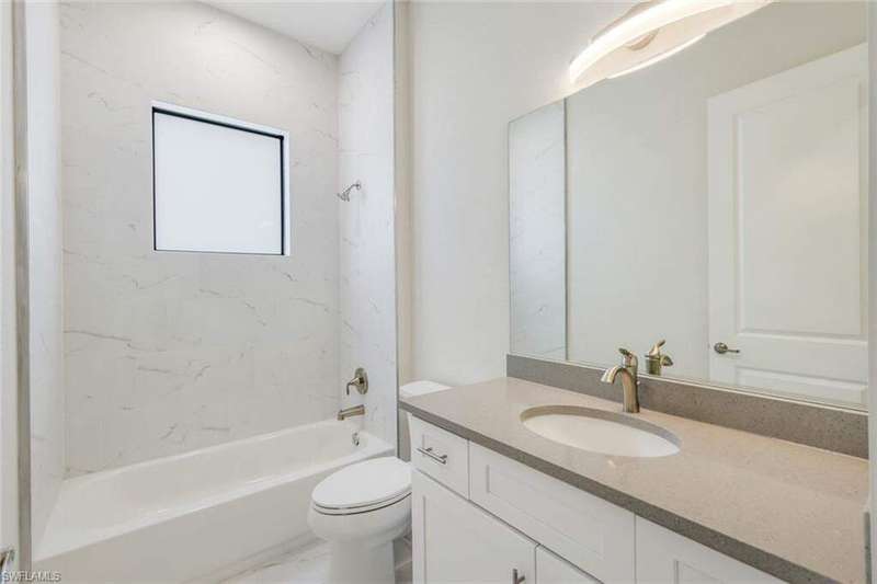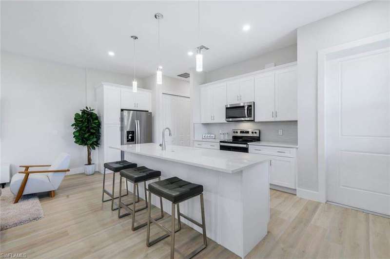 JASPER FLATS - NEW CONSTRUCTION IN NAPLES - Attached Villas: The Dakota floor plan features 2 bedrooms and 2 baths with 1264 sq. ft. under air and a single car garage. Superior standard fittings and finishes including: CBS construction, Quartz countertops throughout, solid wood Shaker style cabinetry, Moen and Kohler plumbing fixtures, stainless steel kitchen appliances and tankless hot water heaters, luxury vinyl plank flooring, frameless tempered glass shower enclosures are included and all closets feature ventilated shelving. Impact glass windows and slider doors standard throughout. Optional Paver Patio available. Great South Naples location, 10 minutes from downtown Naples and the beaches, close to Bayshore Arts District/Celebration Park, convenient to I-75! PHOTOS ARE OF THE MODEL OF THIS FLOOR PLAN AND THE COMMUNITY. THIS UNIT IS OFFERED UNFURNISHED.