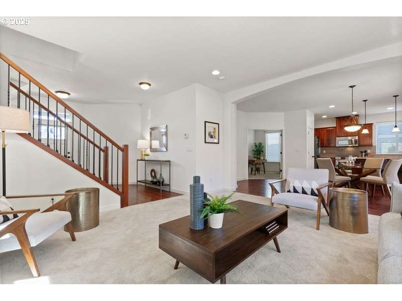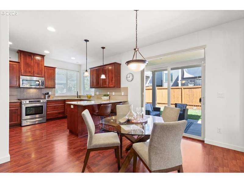 Modern design, thoughtful layout, and unbeatable location come together at 13543 SE Almond Drive. This 4-bedroom, 3-bath home offers over 2,500 sq ft of versatile living space, complete with standout features like a third full bathroom and 612 sq ft of dedicated garage storage. The open-concept main floor features a spacious living area, dining room, and a well-appointed kitchen with stainless steel appliances, a large island, and ample storage. A full bathroom and bedroom on the main level create the perfect setup for guests, remote work, or multigenerational living.The home has been freshly painted throughout, and the three upstairs bedrooms feature brand-new flooring. The light-filled primary suite includes a walk-in closet and en suite bath, while a third full bathroom, laundry room, and bonus loft provide flexibility for any lifestyle.The backyard offers a flat lawn, raised garden beds, and direct access to green space through a private gate—ideal for play, pets, or relaxing outdoors. The oversized garage delivers rare additional storage or workshop potential, with 612 sq ft of space not included in the main square footage.Located on the same street as Pfiefer Park and just two blocks from Rock Creek Middle School and Clackamas High School, this home also offers unbeatable access to local dining, shopping, and the seasonal farmers market—all just minutes away. A perfect blend of comfort, functionality, and convenience in one of Clackamas’ most desirable neighborhoods. Listing agent is related to seller.