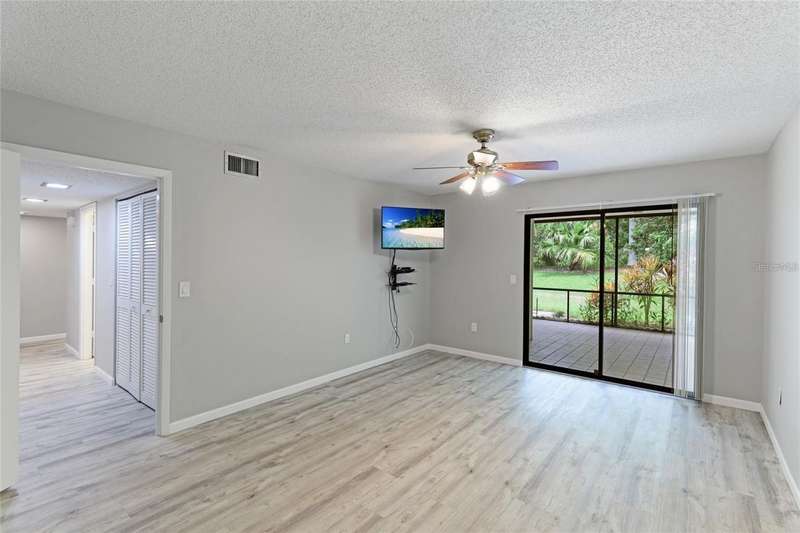 One or more photo(s) has been virtually staged. Nature Lover's Paradise with an Enchanting Private Lanai!One of the most captivating features of this villa is the expansive 300 sq ft private screened lanai, accessed through three sliding glass doors-from the living room, the third bedroom/office, and the primary suite. Nestled in a designated Bird Sanctuary, this tranquil retreat invites daily visits from cardinals, mockingbirds, woodpeckers, egrets, ibis, blue jays, brown thrashers, and more. Whimsical squirrels and other local wildlife add to the charm, making this space a true sanctuary for nature lovers.At the front of the home, a welcoming patio is perfect for enjoying morning coffee or an evening wind-down. Both the kitchen and second bedroom overlook this serene area, filling the home with natural light and a peaceful ambiance.HOA dues include a wide range of services: internet, WiFi, two cable hookups, exterior maintenance, and building insurance, along with other valuable amenities including community pools, tennis and pickleball courts!Located just 1 mile from IMG Academy, this home is ideal for families involved with the renowned sports training facility. Parents often choose to stay nearby. Additionally, the Ringling College of Art and Design-a magnet for creatives from around the globe-is just 20 minutes away, adding even more appeal.This villa offers a rare combination of natural beauty, everyday convenience, and cultural connection. Don't miss your opportunity to make this special home your own!
