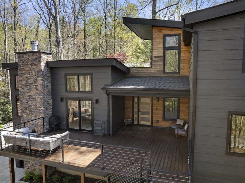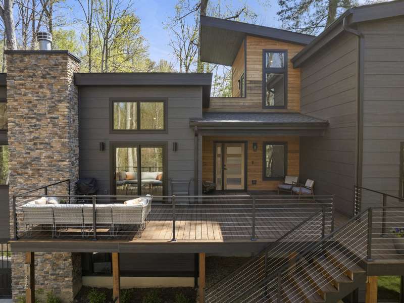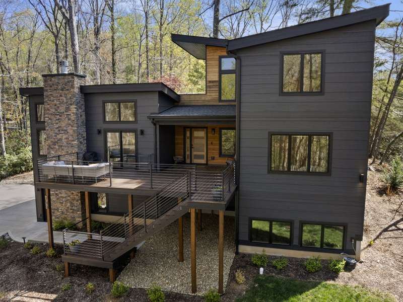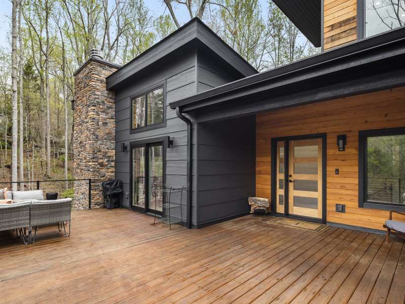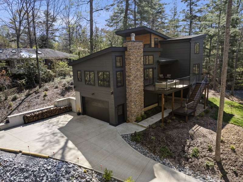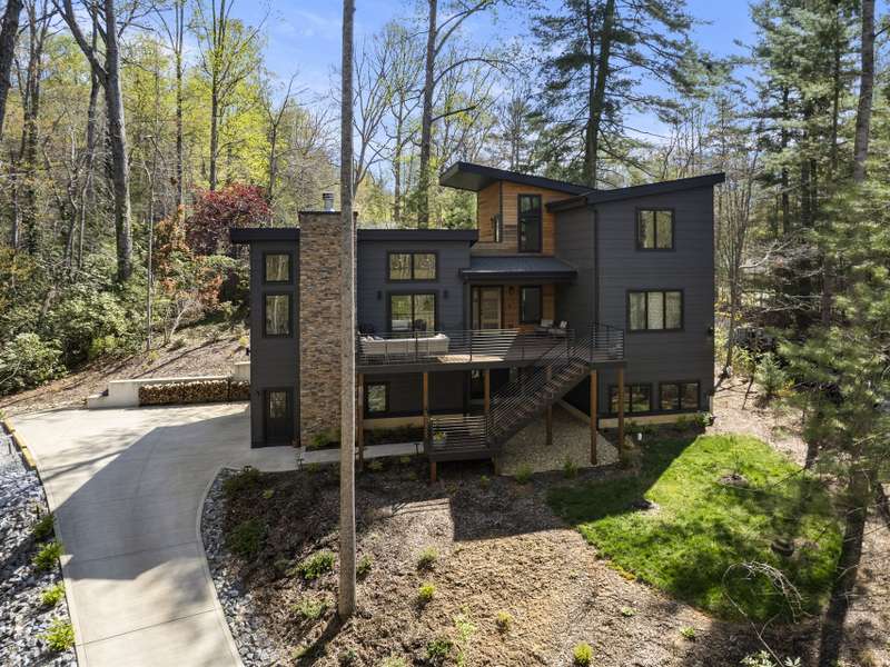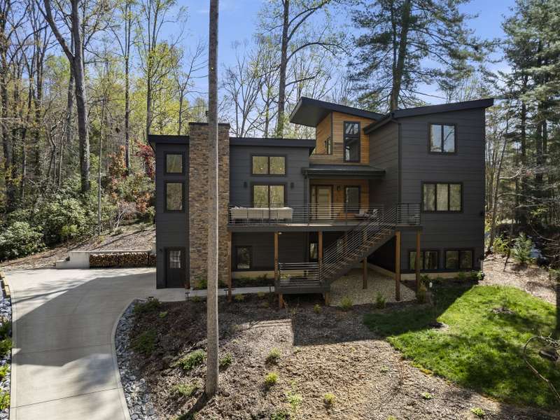 Discover this extraordinary mountain modern retreat, located less than 10 minutes from the heart of Downtown Hendersonville! Built in 2022, this pristine home blends impeccable craftsmanship with contemporary design and everyday functionality. This home boasts an open floor plan flooded with natural light?ideal for entertaining and flowing seamlessly onto a spacious deck that invites outdoor gatherings. The main level features a luxurious en suite bedroom, offering comfort and convenience on the first floor. Upstairs, two private guest rooms provide a peaceful retreat for family or visitors. The fully finished basement adds incredible versatility, featuring a large recreation room with a full en suite bath?perfect for a home office, gym, media room, or play space. With modern finishes, thoughtful layout, and a prime location, this home offers the perfect blend of mountain serenity and city convenience. Don't miss this exceptional opportunity!