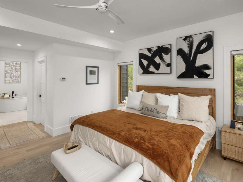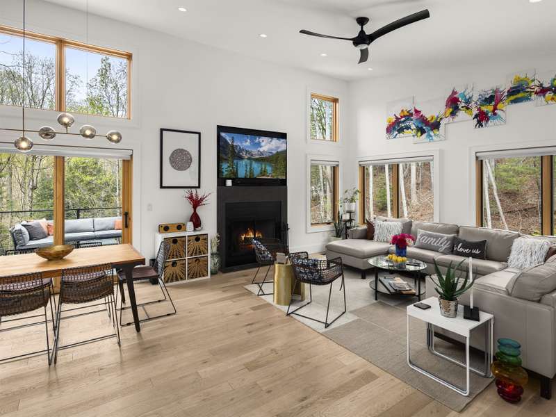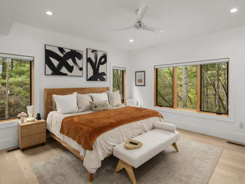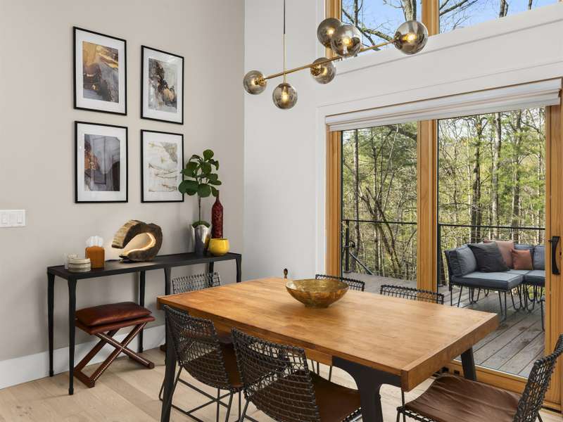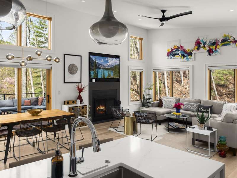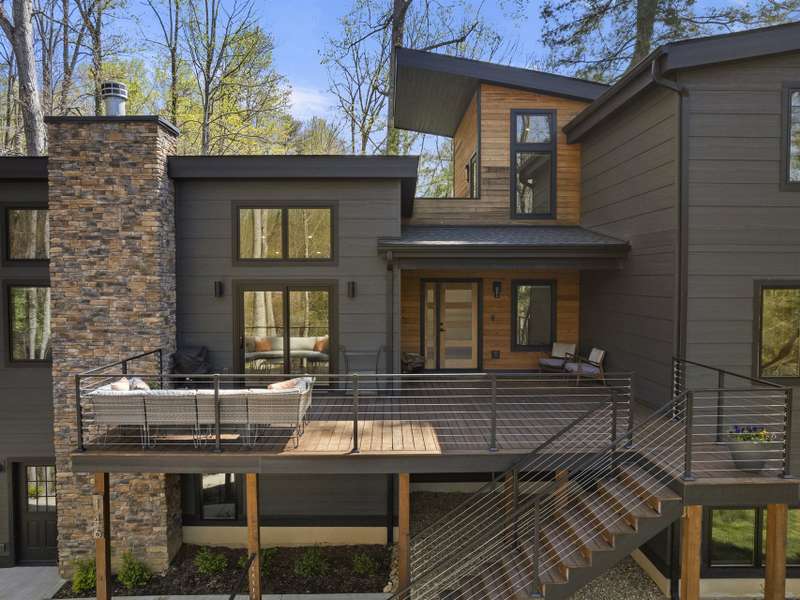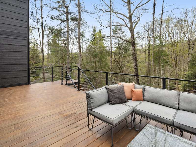 Discover this extraordinary mountain modern retreat, located less than 10 minutes from the heart of Downtown Hendersonville! Built in 2022, this pristine home blends impeccable craftsmanship with contemporary design and everyday functionality. This home boasts an open floor plan flooded with natural light?ideal for entertaining and flowing seamlessly onto a spacious deck that invites outdoor gatherings. The main level features a luxurious en suite bedroom, offering comfort and convenience on the first floor. Upstairs, two private guest rooms provide a peaceful retreat for family or visitors. The fully finished basement adds incredible versatility, featuring a large recreation room with a full en suite bath?perfect for a home office, gym, media room, or play space. With modern finishes, thoughtful layout, and a prime location, this home offers the perfect blend of mountain serenity and city convenience. Don't miss this exceptional opportunity!