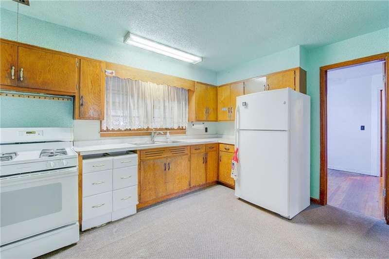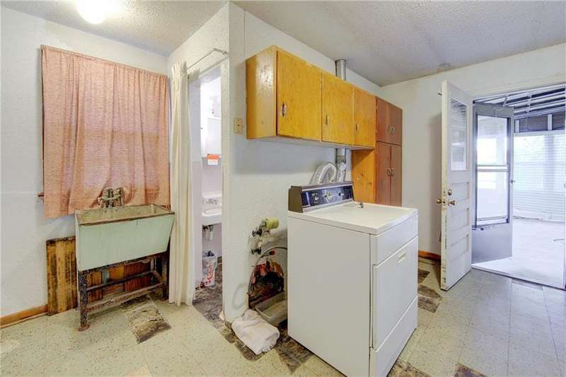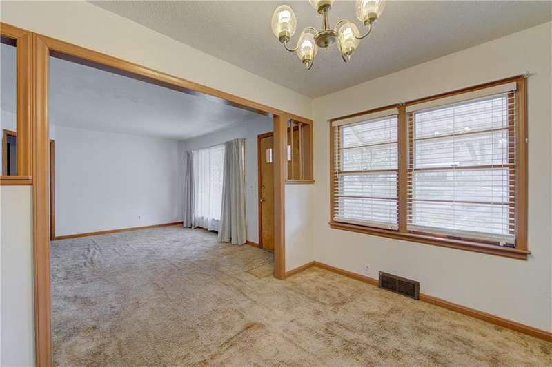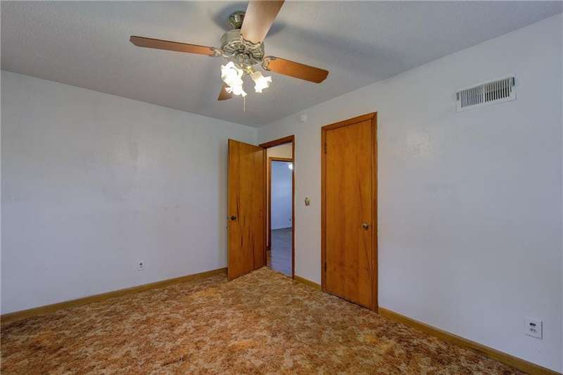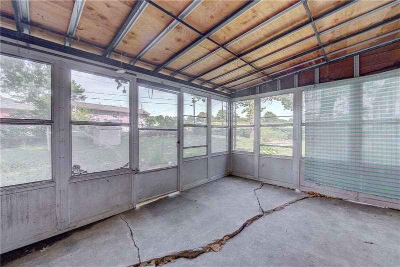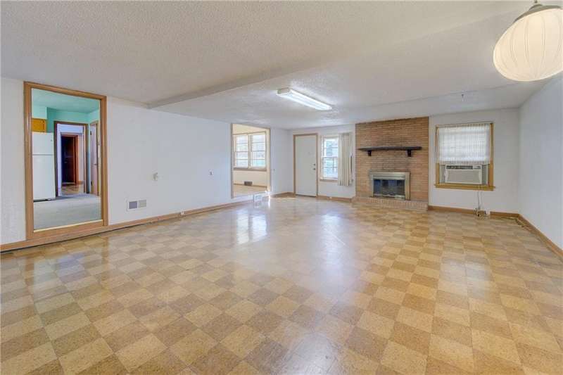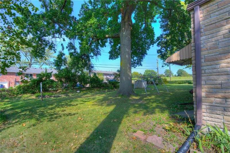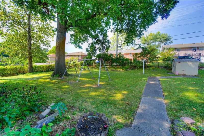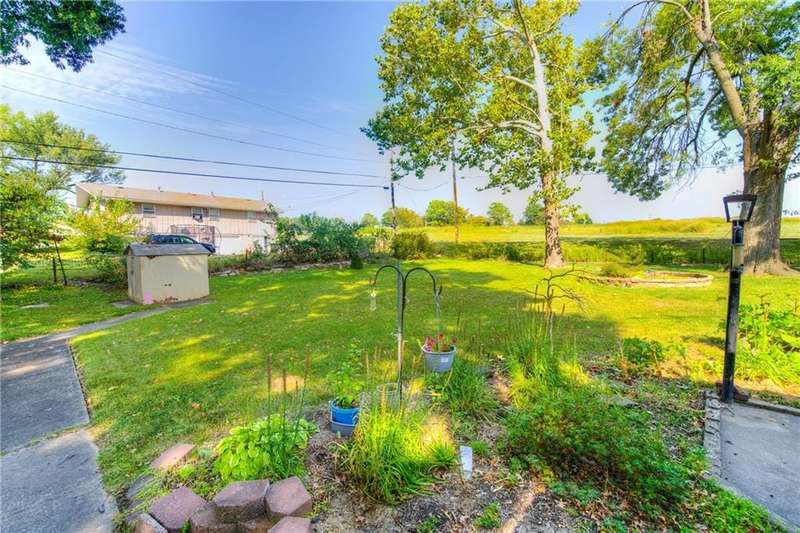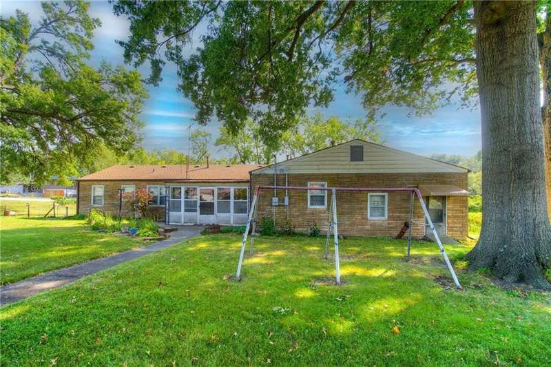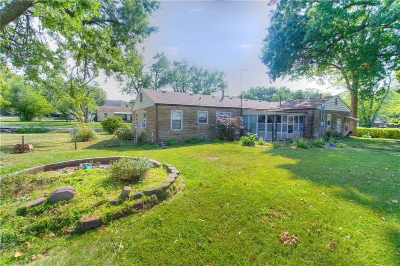 So much potential! Over 1800 sq ft of one level living on a fenced corner lot! Huge family room with woodburning fireplace that opens to the kitchen, dining room and front living room. Three bedrooms and 2 full, functioning bathrooms, just needing some TLC. Laundry room on the main level. The covered patio walks out to the level, fenced backyard with mature trees, shed and flower beds. There are extra rooms in the back of the garage that would be perfect for a workshop and/or gardening space. Convenient location just blocks to 350 hwy, grocery stores and restaurants. Easy access to anywhere in the KC metro and just down the street to Kenagy Park!