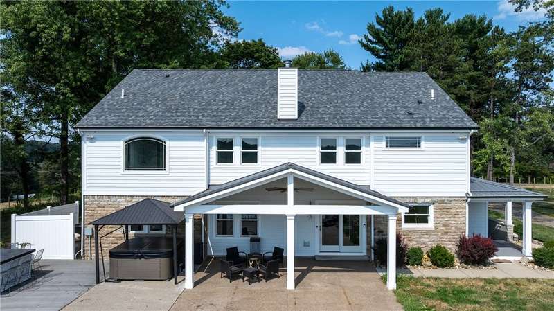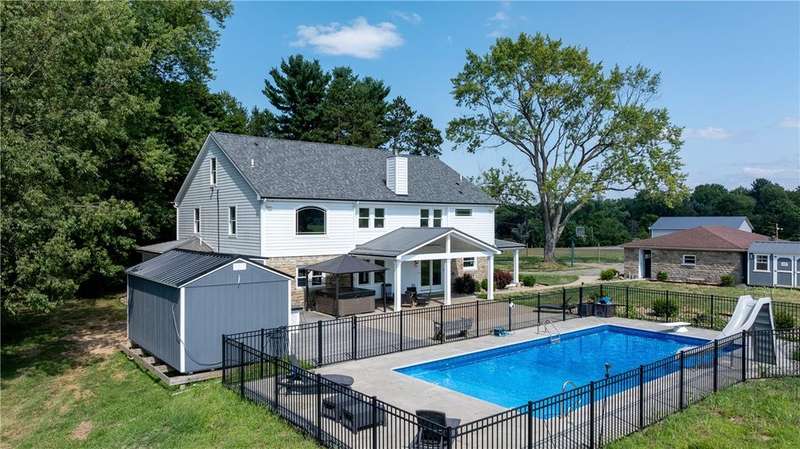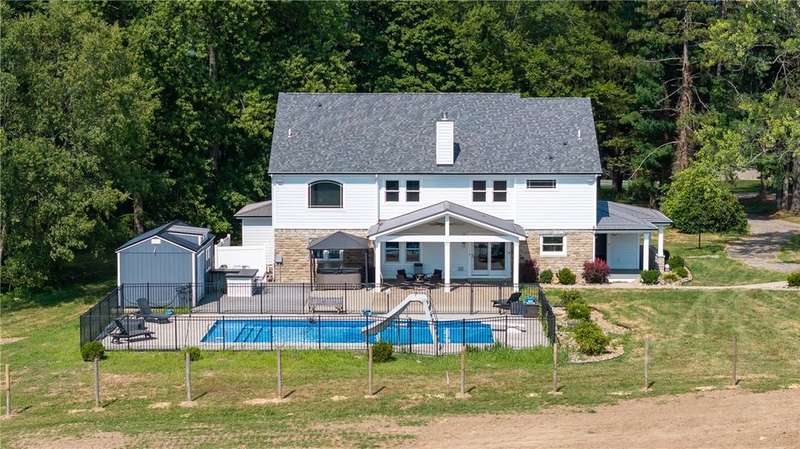 Welcome to this beautifully renovated five bedroom contemporary craftsman's style farmhouse nestled on 1.5 acres in a picturesque country setting. Completely updated throughout, this home seamlessly blends modern comfort with timeless charm. This home is the perfect retreat for space, style and serenity. The home offers an abundance of windows with sun-filled living areas, two-story Great Room with stone log-burning fireplace, designer kitchen with huge center island kitchen, fully equipped to meet all your culinary needs, updated baths, main level home office and secondary bedroom. Nicely sized mudroom and two laundry rooms. Outside is an entertainer's paradise-enjoy the swimming pool, poolside clubhouse, featuring an outdoor built-in bar, and hot tub. A three-car detached garage provides ample storage and workspace. This property offers the best of country living with modern amenities just minutes to major highways, shopping and recreation.