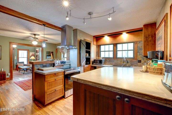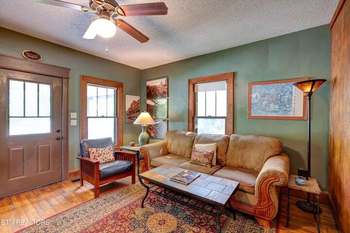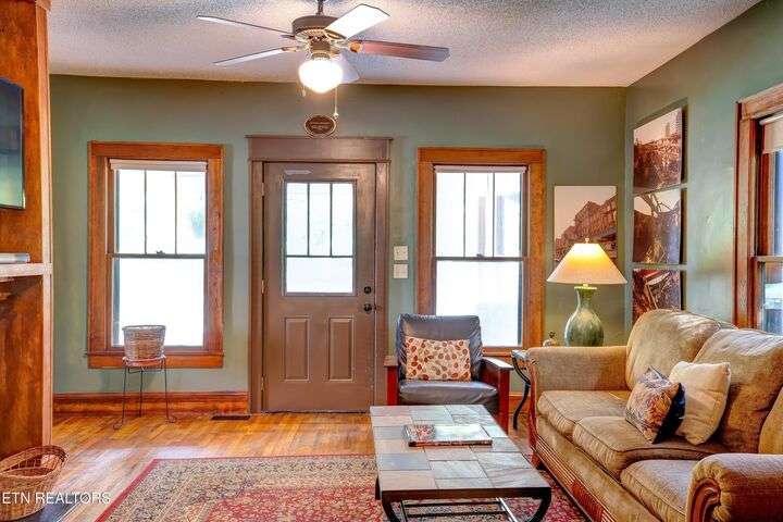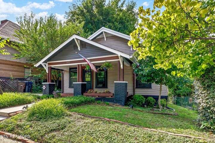This beautifully maintained Craftsman bungalow offers timeless appeal with original unpainted trim, doors, windows, and hardwood floors—all preserved to showcase its historic character. Inside, you'll find built-in features and two decorative fireplaces adding to the home's charm. The kitchen was respectfully remodeled with custom cabinetry and concrete countertops. The bathroom has been stylishly refreshed as well. Step outside to enjoy the spacious outdoor living areas—relax on the covered front porch or host gatherings on the partially covered, freshly-painted back deck. All appliances convey for added convenience. HVAC & kitchen appliances new in 2017, water heater new in 2024. Ideally located just under 2 miles from downtown, 4 miles from UT Campus, and only a few blocks from First Creek Greenway and a local park. This home is in move-in condition and perfect for entertaining. This home has also been a successful AirBnb; all furnishings are negotiable. Don't miss seeing it!