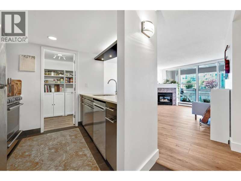 Renovated. Bright. In the Heart of It All. This fully renovated 2-bed home sits on the lush courtyard level with sunny southwest exposure-green, and full of light. The kitchen is sleek with tons of storage (hello, walk-in pantry!) and the cozy gas fireplace is perfect for chill nights. Bonus: gas + heat included in your strata fees. You´re steps to T&T, Costco, Crosstown Elementary, parks, and Skytrain-everything you need is right there. The building has solid amenities: lap pool, hot tub, sauna, updated gym, games roof & lots of visitor parking. Plus, major updates are done-new roof, paid-for repiping & a fresh depreciation report. Pet-friendly & short-term rentals allowed. Easy, central living with zero guesswork. (id:58403)