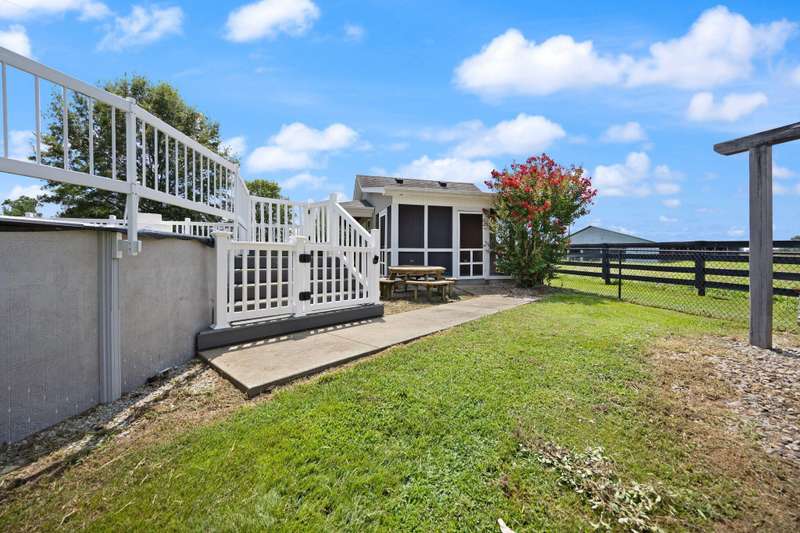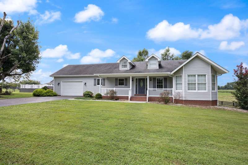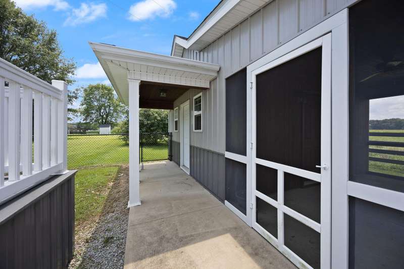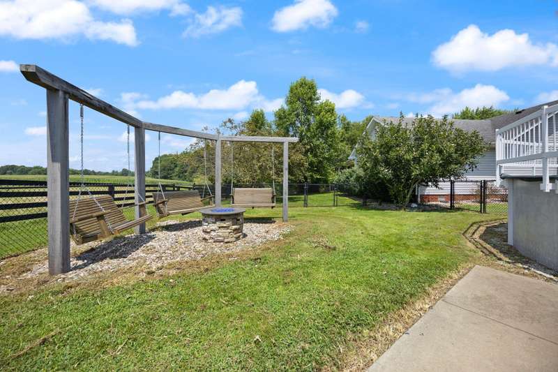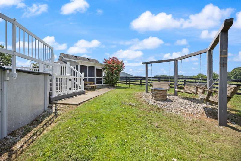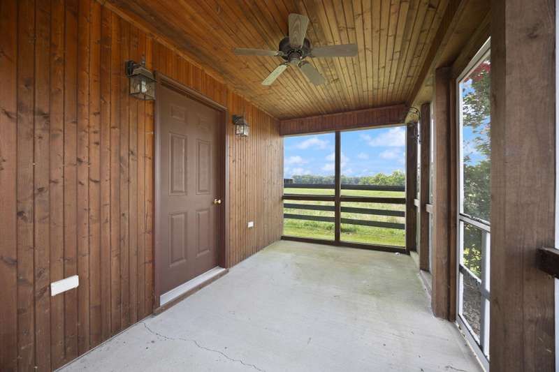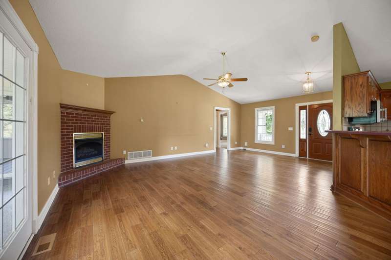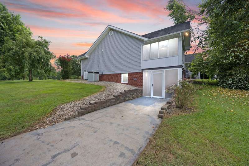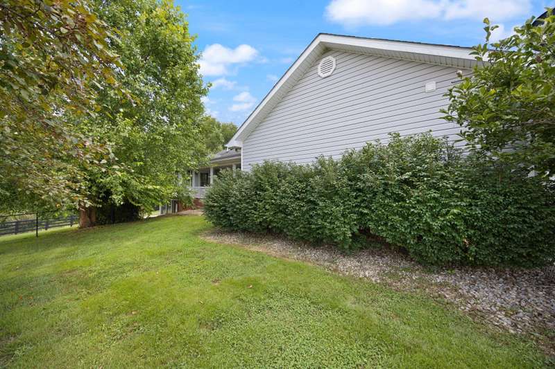 Welcome home-where comfort, flexibility, and country charm come together on 1.05 acres! This spacious home offers over 3,000 sq ft of finished living space, including 1,877 sq ft on the main level & 1,200 sq ft in the finished walkout basement. The main floor features a cozy living room w/ gas fireplace, kitchen, and split-bedroom layout. Step out from the living room to a covered back porch and screened-in area w/ composite decking-perfect for relaxing outdoors. With 3-5 bedrooms, 3.5 baths, two kitchens, and two laundry areas, this home is ideal for multigenerational living, hosting guests, or rental potential. The basement includes two rooms w/ closets (no windows), second kitchen, washer/dryer hookup, and walkout access-dry and never leaked. Enjoy the above-ground pool (liner only 3years old), pool house, gazebo, and fenced backyard. A black wood fence outlines the property, adding classic country charm. You'll love the small orchard w/ apple & plum trees, blackberry bushes, and sunny garden spot. Other highlights: 2-car garage (1 door), blacktop driveway, and well water (city water to pool house/hydrant). Located on a quiet dead-end road just 7 miles west of Liberty!