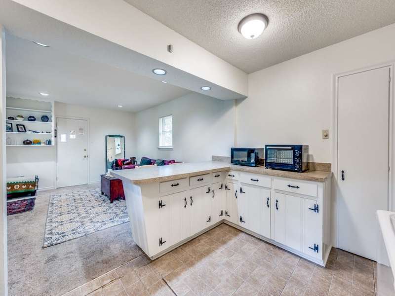 Traditional ranch-style house zoned to Lakewood Elementary. Home features light interior and hardwood floors throughout. Open living & dining area with fireplace plus additional living off the kitchen provides ample space for entertaining. Kitchen has 4-burner gas cooktop and oven, reach-in pantry and breakfast bar. Refrigerator and washer-dryer stay. Primary bedroom has ensuite bath. Two additional bedrooms share hall bath with original tile.. Parking includes two covered carport spaces. Conveniently located to White Rock Lake, hike-bike trails, shopping and restaurants.