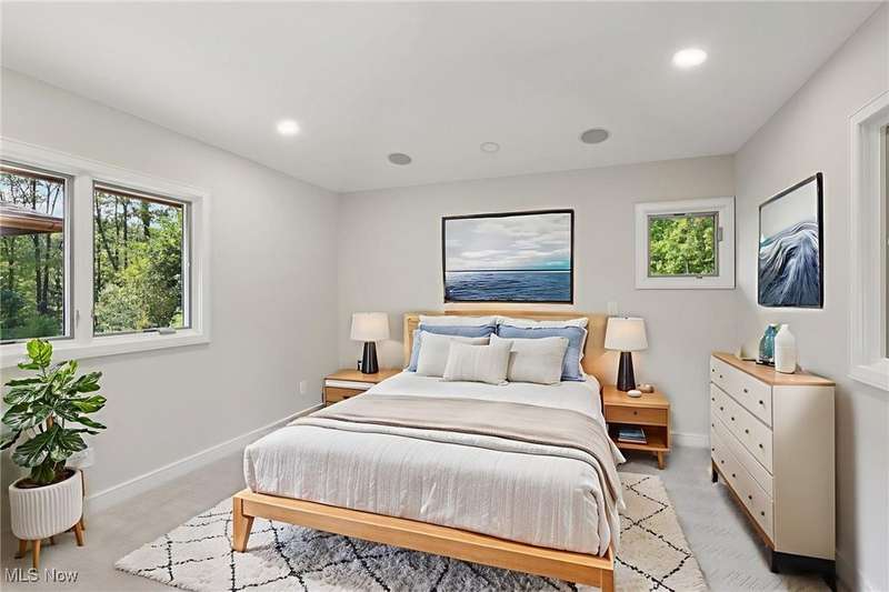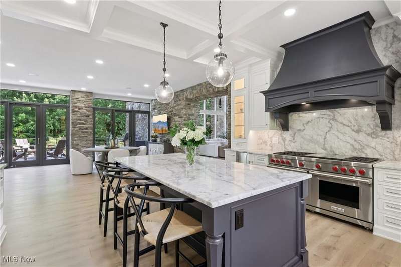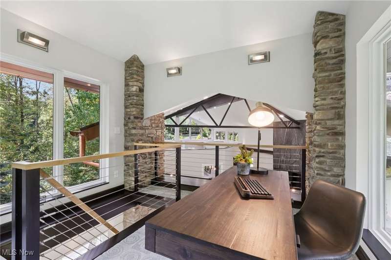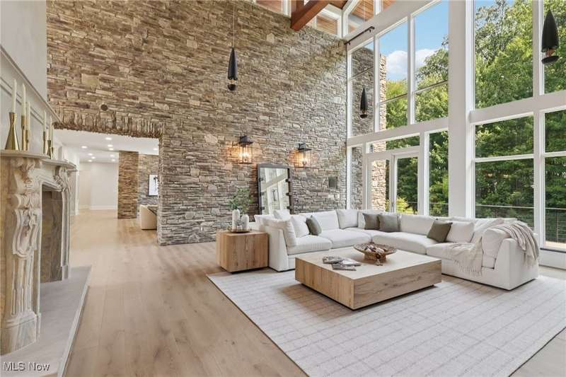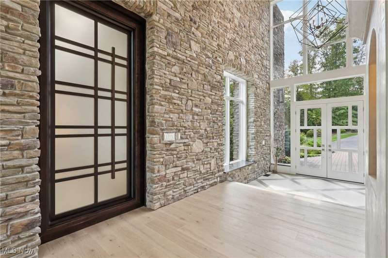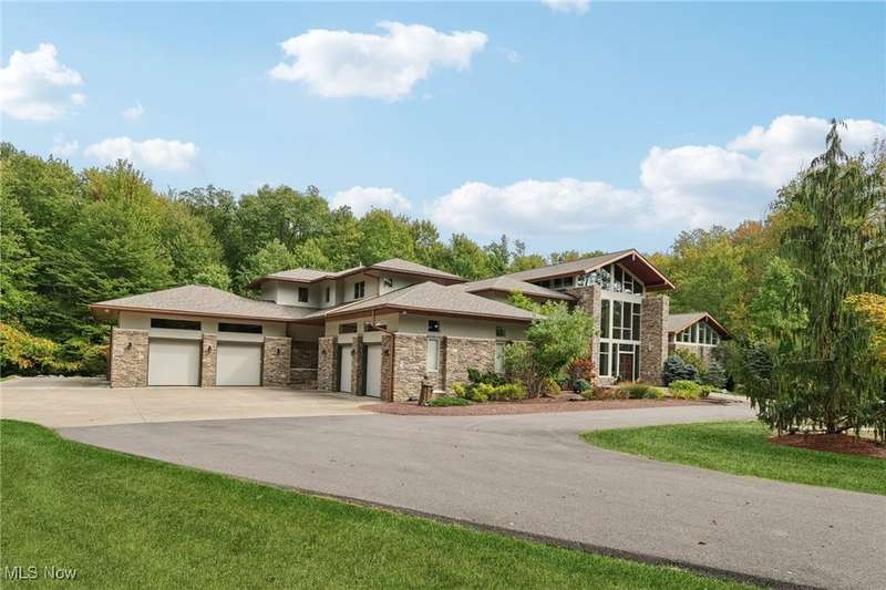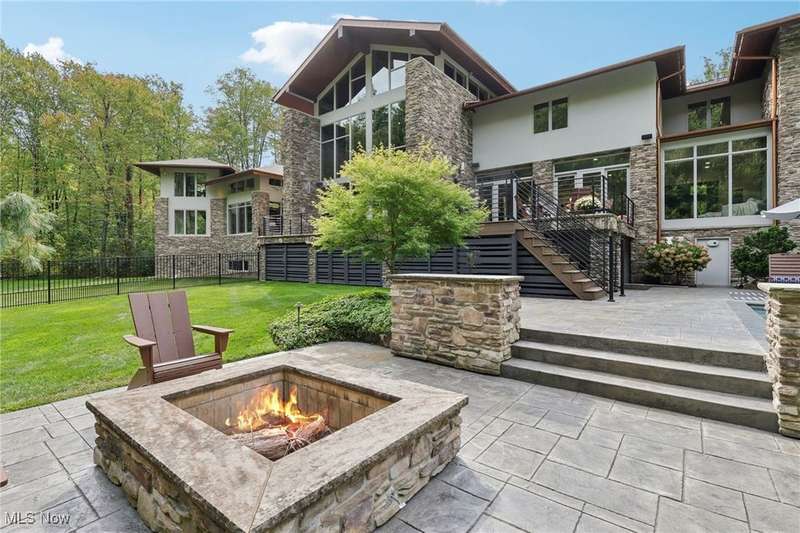This extraordinary contemporary estate blends modern design with Rocky Mountain elegance to create a private sanctuary of unparalleled sophistication. Reimagined with uncompromising detail, the exterior flows seamlessly from the serene lily pond and waterfall entry to the resort-worthy patio, pool, firepit, and pergola. Walls of glass frame sweeping views of the manicured three-acre grounds, dissolving boundaries between indoors and out. Inside, soaring ceilings, wide-plank white oak floors, and designer lighting define modern refinement. The chef's kitchen is a true centerpiece with natural stone countertops, professional-grade appliances, wine cooler, beverage fridge, generous pantry, and walk-in prep kitchen. The main-level owner's wing offers a dramatic fireplace suite, lofted lounge with panoramic vistas, wellness area, and a spa-inspired bath with dual vanities, soaking tub, and oversized shower. Two large closets with custom cabinetry complete the space. A connected office/den overlooks a tranquil fountain and opens to a private deck. The lower level redefines entertaining with a 18-foot wine cellar, illuminated onyx bar clad in Calcutta Brazil marble and walnut, billiards, ping-pong, poker room, and fitness center with direct access to a spa bathroom complete with sauna and shower. The additional pool bath is conveniently located at the lower level entrance and features two showers and a dedicated water closet. Upstairs, four bedrooms and three baths provide space and privacy. An expansive first floor laundry with dual washers and dryers and a dedicated mudroom elevate both elegance and everyday ease. Set on three wooded acres backing to Ladue Reservoir, this estate delivers unrivaled privacy, resort-style amenities, and effortless luxury.
