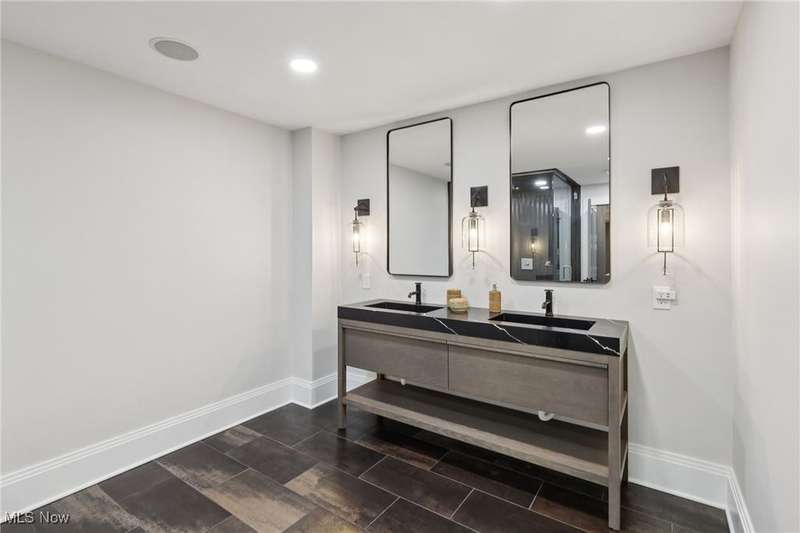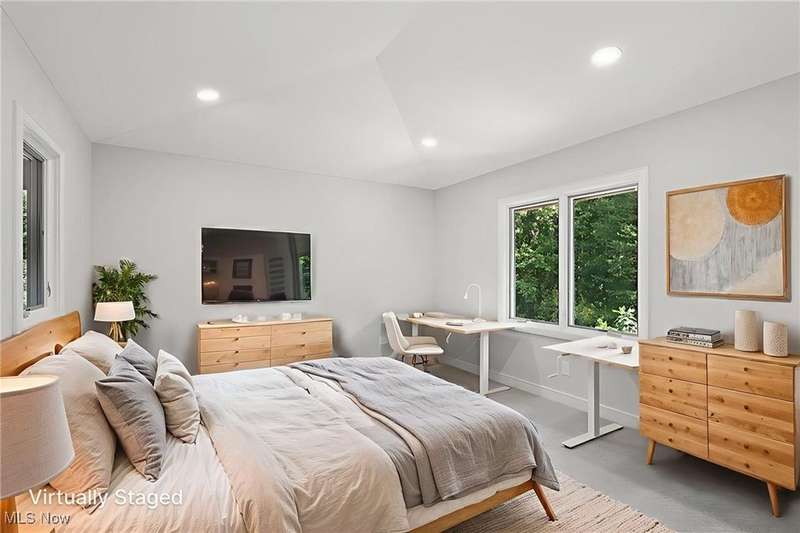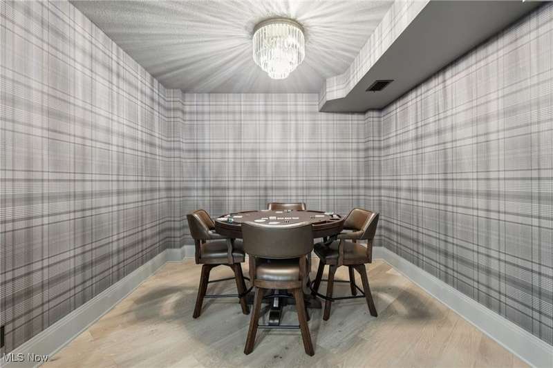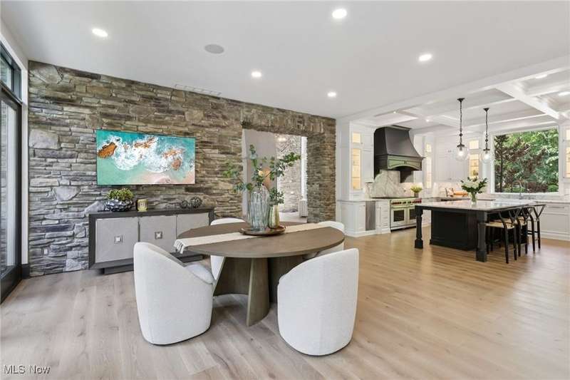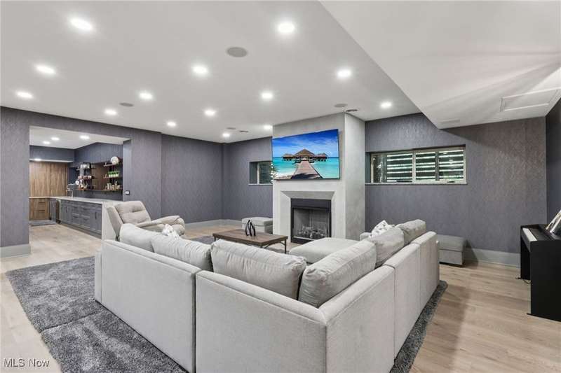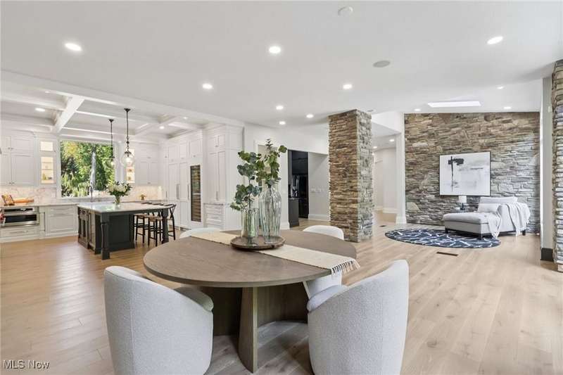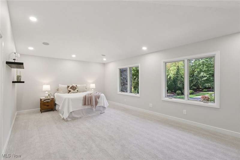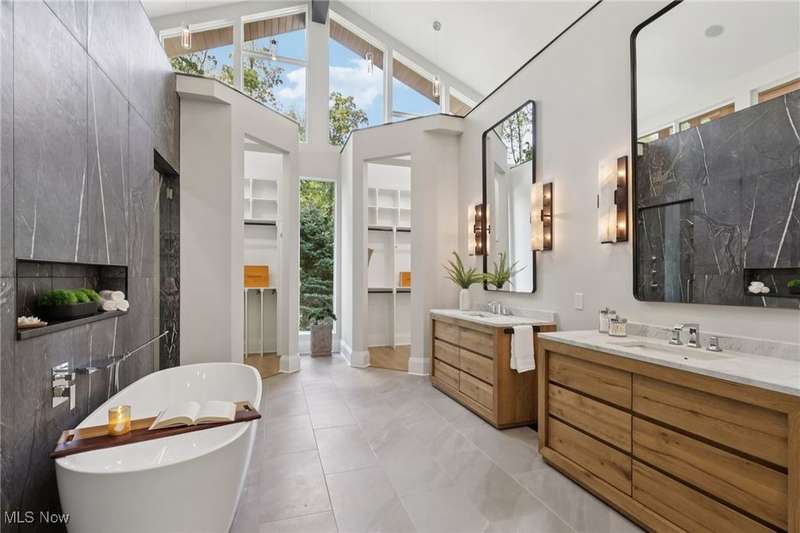 This extraordinary contemporary estate blends modern design with Rocky Mountain elegance to create a private sanctuary of unparalleled sophistication. Reimagined with uncompromising detail, the exterior flows seamlessly from the serene lily pond and waterfall entry to the resort-worthy patio, pool, firepit, and pergola. Walls of glass frame sweeping views of the manicured three-acre grounds, dissolving boundaries between indoors and out. Inside, soaring ceilings, wide-plank white oak floors, and designer lighting define modern refinement. The chef's kitchen is a true centerpiece with natural stone countertops, professional-grade appliances, wine cooler, beverage fridge, generous pantry, and walk-in prep kitchen. The main-level owner's wing offers a dramatic fireplace suite, lofted lounge with panoramic vistas, wellness area, and a spa-inspired bath with dual vanities, soaking tub, and oversized shower. Two large closets with custom cabinetry complete the space. A connected office/den overlooks a tranquil fountain and opens to a private deck. The lower level redefines entertaining with a 18-foot wine cellar, illuminated onyx bar clad in Calcutta Brazil marble and walnut, billiards, ping-pong, poker room, and fitness center with direct access to a spa bathroom complete with sauna and shower. The additional pool bath is conveniently located at the lower level entrance and features two showers and a dedicated water closet. Upstairs, four bedrooms and three baths provide space and privacy. An expansive first floor laundry with dual washers and dryers and a dedicated mudroom elevate both elegance and everyday ease. Set on three wooded acres backing to Ladue Reservoir, this estate delivers unrivaled privacy, resort-style amenities, and effortless luxury.