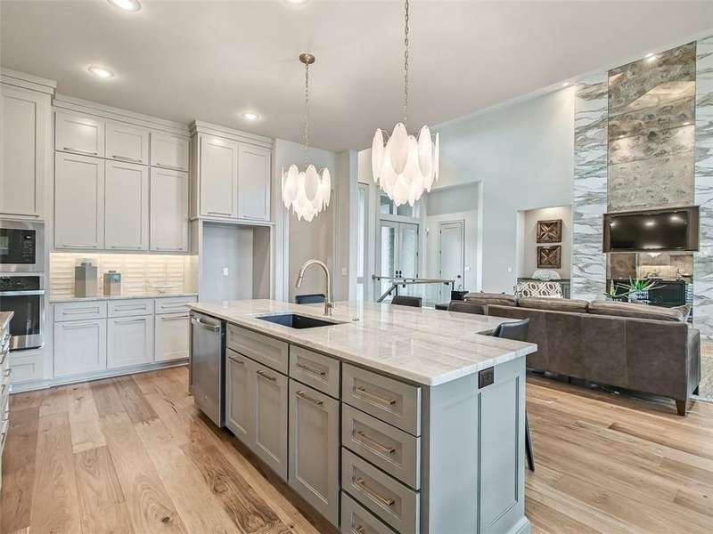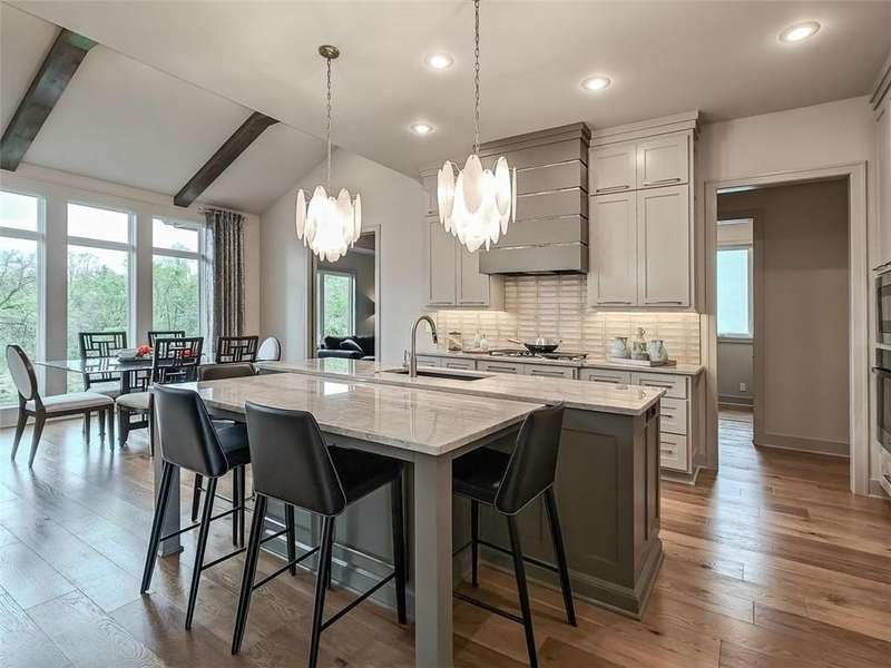 Welcome to The Ridgewood Gallery II by Don Julian Builders, beautifully positioned on Lot 109 in the coveted Bristol Highlands Estates. This Reverse 1.5 Story is the perfect blend of craftsmanship, livability, and style—offering the kind of thoughtful layout today’s buyers want most and ready for a Winter 2026 move in but you can choose all the things now! Step inside to a vaulted main level anchored by a warm gas fireplace and an impressive kitchen with an oversized island, cabinets to the ceiling, and room for gathering. The pocket office provides an ideal work-from-home nook, while the luxurious primary suite feels like a private retreat. With 5 bedrooms and 5 bathrooms, everyone enjoys their own space—each bedroom includes its own private bath. Downstairs, the lower level is designed for both entertaining and everyday life: a chic wet bar, spacious rec room, additional bedrooms, and walkout access that seamlessly connects indoor and outdoor living. The covered deck and 3-car garage add comfort and convenience to the 3,909 sq ft layout. Set in Shawnee, Bristol Highlands Estates offers quick access to Shawnee Mission Park, Lake Lenexa, community trails, Lenexa City Center, shopping, dining, and major highways. Located within the award-winning De Soto School District (Mill Valley High School), this home pairs luxury living with an unbeatable location.