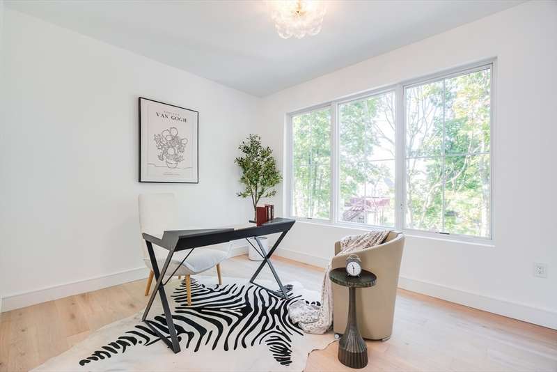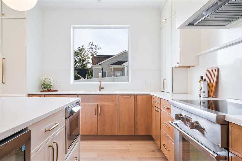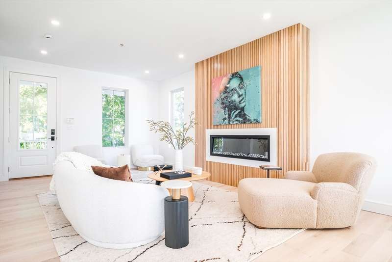 This stylish new construction townhome is bright and airy featuring over 3,400 sq ft of space, a 1 car garage, and an exclusive backyard. The open concept 1st floor offers many stunning features like a chef's kitchen featuring Thermador appliances, gorgeous custom white oak slim shaker cabinets, 9 ft ceilings, and a linear fireplace with white oak panel details. The first floor also features a bedroom that can function as an office. There are 3 bedrooms on the 2nd level, including the primary suite with its large walk-in closet, and a gorgeous spa-like bathroom. The fully finished 3rd floor gives you bonus space with a full bathroom. The lower level features a mudroom entry from the garage, a comfortable family room, a bedroom and a full bathroom. Located just minutes from I-90, local restaurants, and shops.