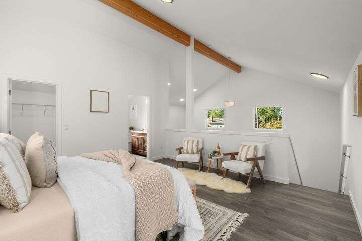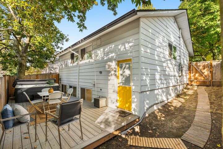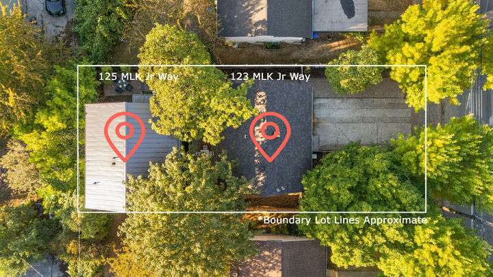 Two homes on one lot! Package includes a front home 123 MLK: 3 Bedrooms, 1.75 bath, 1400 SqFt with a den/office nook. Enjoy main floor with hardwood floors, open kitchen design. Lower level primary suite with 3/4 bathroom. Laundry and bonus den/office nook. Newer back deck plus a hot tub, and fenced front yard for garden beds. Back home 125 MLK is a detached DADU 970 SqFt finished and separately fenced: 2 bedrooms on the main + a full bath, open living/kitchen plan, upstairs primary suite with its own walk-in closet & attached bathroom, plus a private patio. Two off-st parking spaces. A smart investment to your portfolio, or perfect for live in one and airbnb the other; or Idea: consider co-housing and buy with your bff! Incredible value!