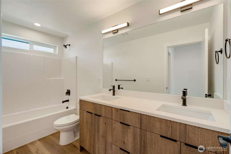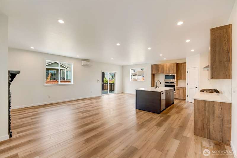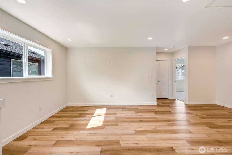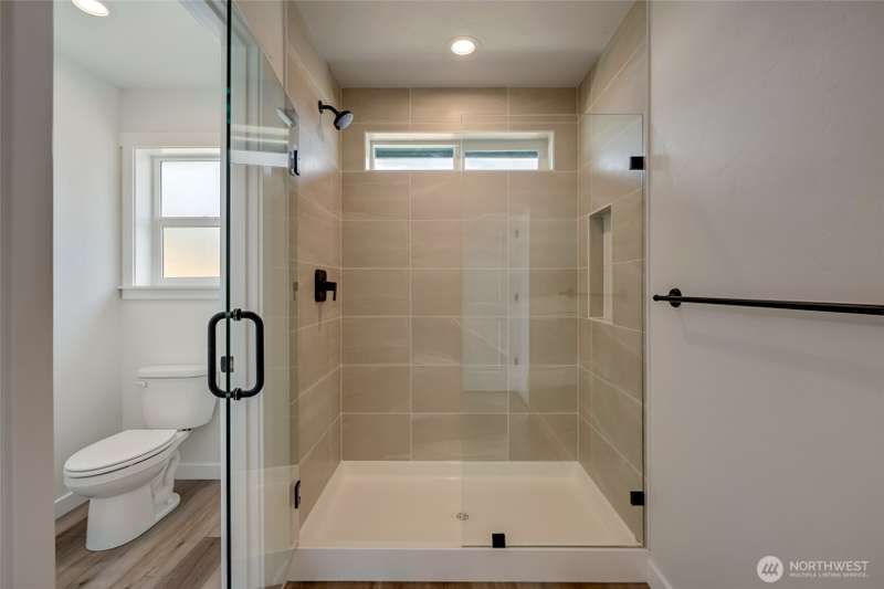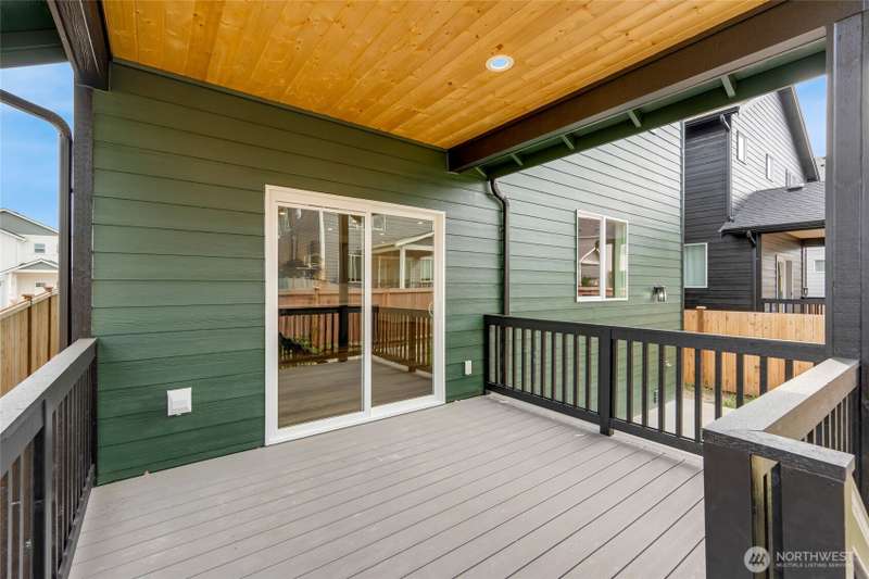 This home features classic European cabinets with Quartz Counters, Nine foot Ceilings, Handcrafted Masonry Fireplace, prewired for electric vehicles. Enjoy covered decks. A very inviting open floor plan on the main floor. 4 bedrooms & additional family bonus room upstairs. Spacious bedrooms including a beautiful ensuite off the primary with stunning tile work in the shower. High quality finished soffits. House has air conditioning, and comes with a fully fenced yard. Close to everything. Located inside the Lakewood School District.