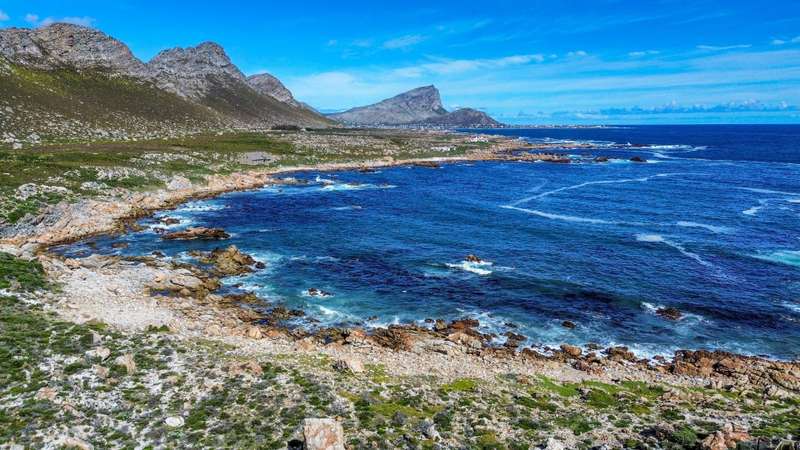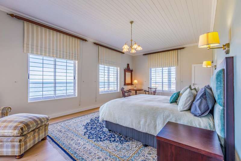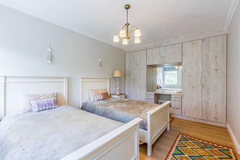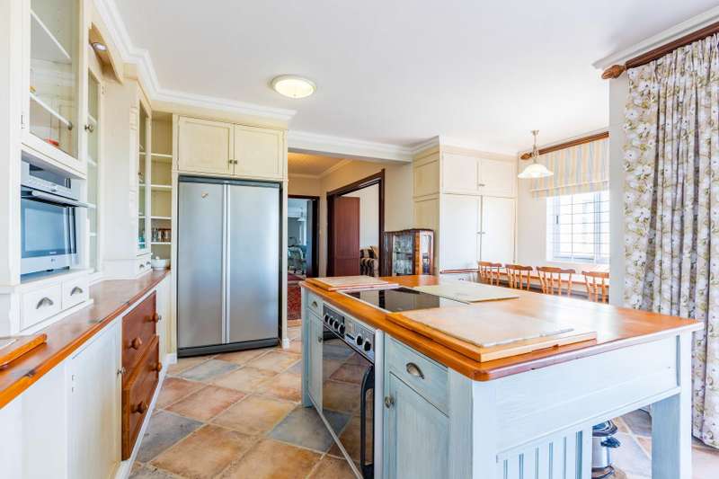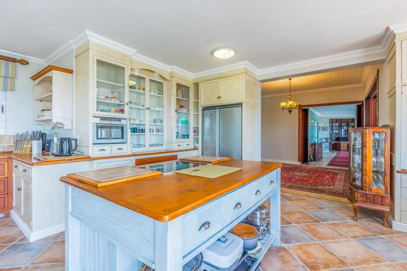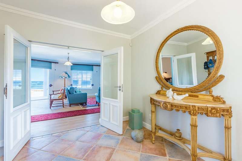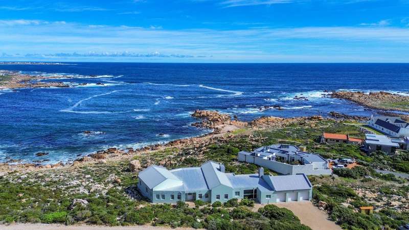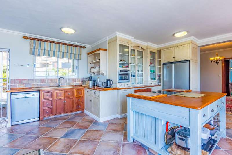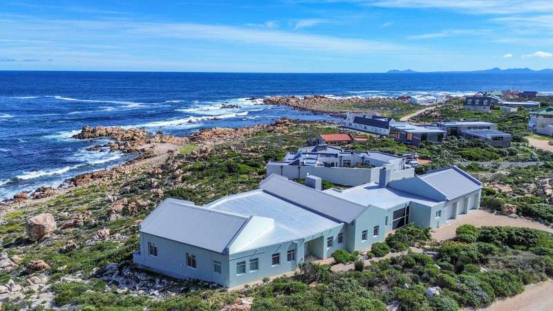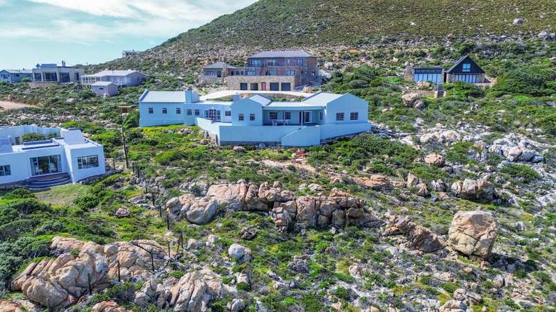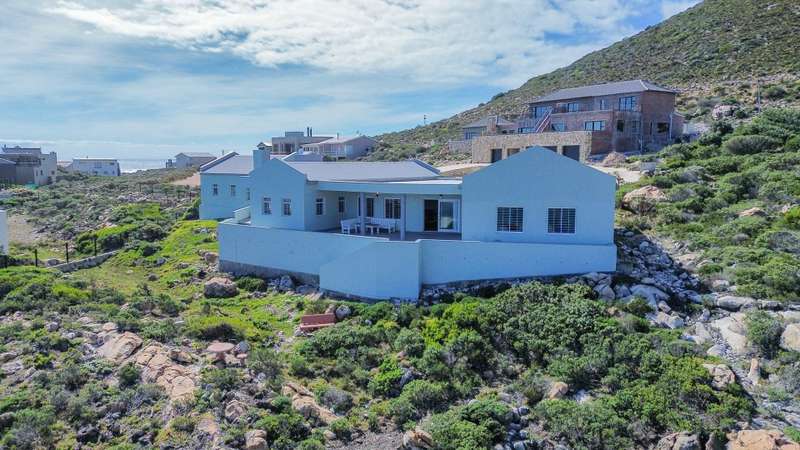 JOINT Mandate - A discreet and inviting entrance takes one into this south-west facing, single storey home on the rocks. Enter into a formal lounge with study area opening onto a roofed stoep offering sweeping ocean views. The main suite is on the south-west side with ocean views from most of the windows. A comfortable well-cupboarded dressing room divides the rather comfortable bedroom from a spacious and sunny full bathroom. There is a sunny fourth/guest bedroom/hobby room on the east/mountainside. The 2nd + 3rd bedrooms which are bathed in sunlight share a full bathroom and are off the landing to the east with the tv, games + 2nd dining area to the south-west with sea views from all the windows. The spacious open-plan kitchen/dining area with sewing nook/school corner opens onto a sea-facing patio to the south-west and to the east is a cosy enclosed area which has many uses and an airy fitted laundry. The entire kitchen/dining area is tiled with a fireplace rounding off this areas' offerings. Stack doors, edged with stunning architraves allow for both the formal lounge and tv/games area to be closed off, thus kids/grandparents and parents can all visit/laugh and play without irritating the other. Wine racks abound in various areas in the kitchen. Walk-in dry food cupboard. Direct access to a 3 car garage with auto roll-up doors. There is a 3rd bathroom off the garage. 2 x Geysers. Perimeter beams. All blinds and curtains remain. Trellidoors on all sliding doors, BURGLAR BARS on all windows. Indigenous fynbos garden with full irrigation. The bedrooms/formal and informal living areas have vinyl flooring. BICs throughout. The property extends down to the rocks. A stunning property with much to offer.