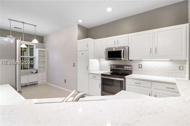 This updated Adirondack-style Andover cottage near a quiet cul-de-sac features an open-concept layout with two bedrooms, a den/office, and two bathrooms. Highlights include an eat-in kitchen with quartz counters and stainless appliances, a screened porch overlooking a wooded view, a two-car garage with a deep sink, and beautiful landscaping with maintenance included. Conveniently located near Hidden Cypress Amenity Center and Veterans Memorial Sports Field, the home is move-in ready for enjoying the Sun City lifestyle.