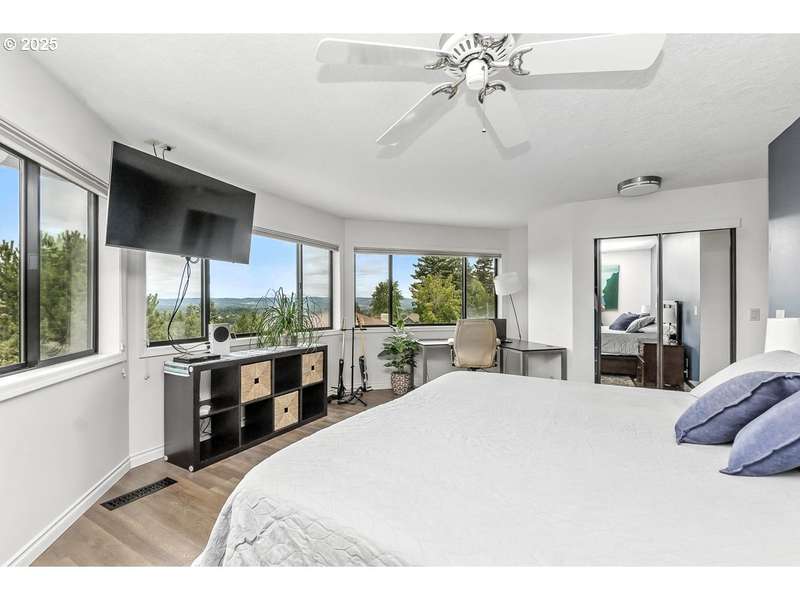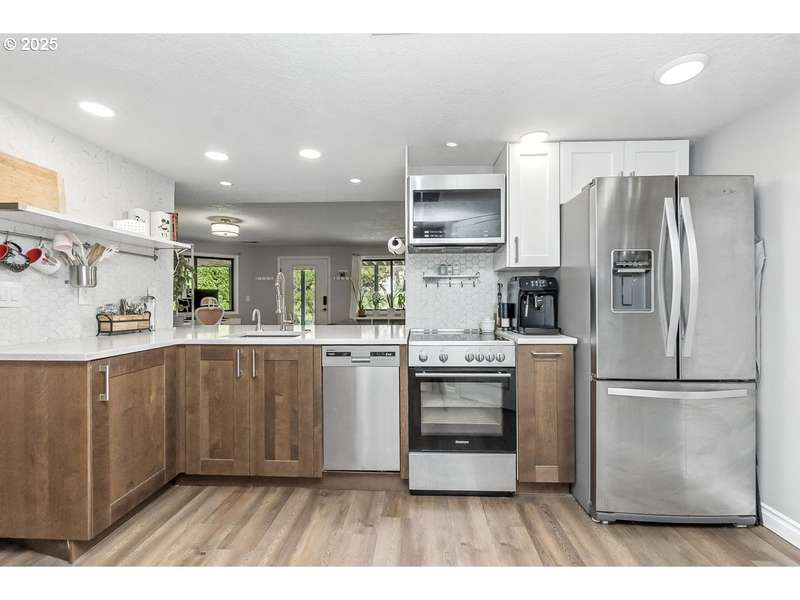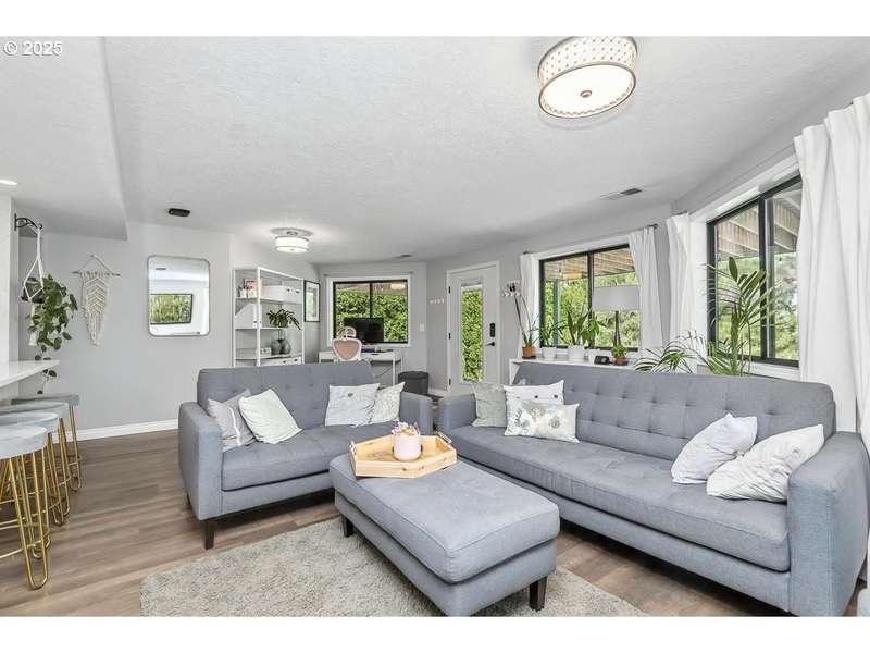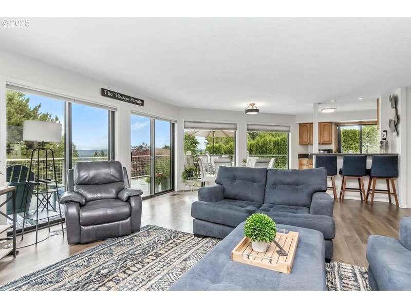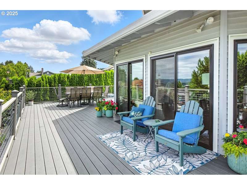 Stunning Mountain Views! Full bath and bedroom on main. Beautiful home with open living and expansive deck off kitchen/ dining area that makes for fantastic outdoor living/entertainment. Tall ceilings and gorgeous finishes. All new Milgard windows. Tons of storage space. Spacious master suite with dual closets. Fully finished basement with separate entrance and full kitchen that is perfect for multigenerational living, rental unit, or flex space. Totally remodeled downstairs bath. Easy maintenance back yard with storage shed. Easy freeway access and commutes to Intel, Nike, etc.