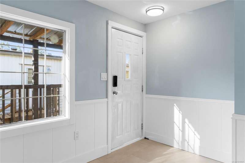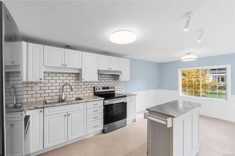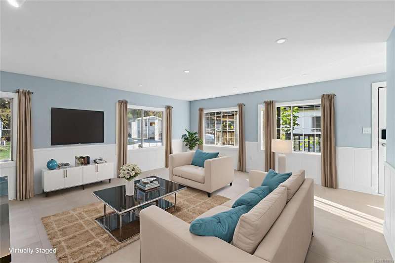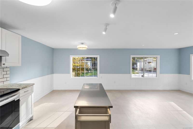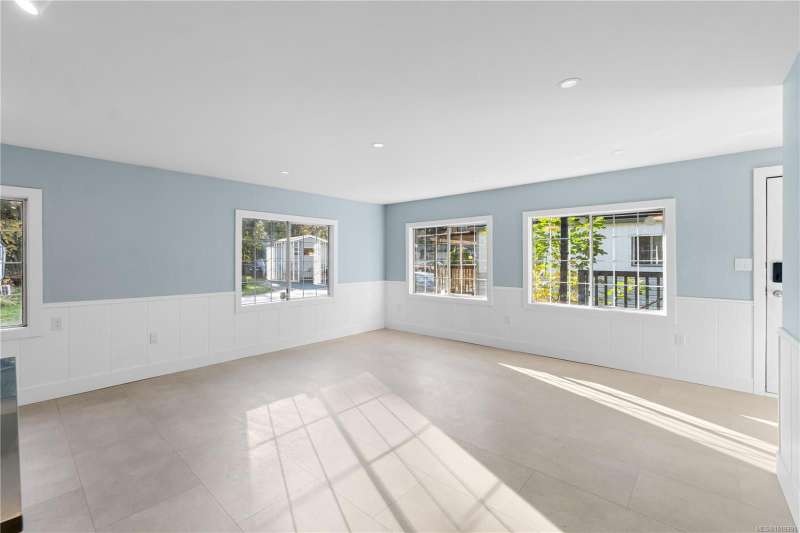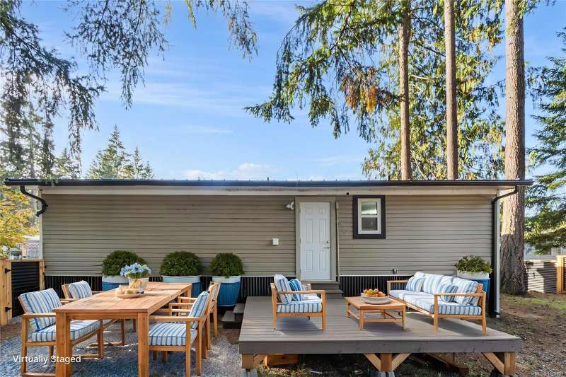This extensively renovated 3-bedroom, 2-bathroom home sits on a spacious double lot in south Nanaimo, just 5 minutes from the airport, 20 minutes to Costco, and 15 minutes to the ferry. No detail has been spared. The home boasts extensive upgrades including a new heavy gauge metal roof, new gutters, new 15,000' 5' metal privacy fence, electrical upgrade w/a 2025 Silver Label, all new plumbing, 5 new LG appliances, new flooring, new drywall, new paint, new blinds and new lighting throughout. The 2 complete bathroom renos include a stand-up shower, freestanding soaker tub and vanities-all new. The kitchen has a powered island, new backsplash, new fridge/stove/dishwasher/hood fan. Let's not forget the new heat pump, new metal exterior skirting and both of the freshly painted covered front entrance and 12x12 back deck that is perfect for entertaining. Parking for 3 vehicles. All ages welcome and 2 pets ok.