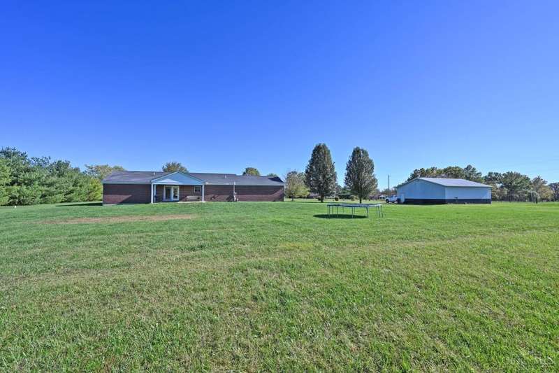 Rare opportunity to own a move in ready home with space to live, work and play inside and out! This spacious and well cared for brick ranch features a split bedroom floorplan and sits on approximately 3 serene acres. Large living room, first floor laundry and lots of storage room in the unfinished area of the lower level! Recent updates in the finished lower level include a custom weight area, dance studio, and a cozy TV/lounge with new fireplace. Ideal for entertaining or relaxing. Enjoy the ease of a wide, circular driveway leading to an impressive 32x40 insulated 4 car detached garage with plenty of room for a workshop area. Major improvements include: New HVAC 2022, new flooring, new lower level finishes, roof 2017, water heater 2018 and 220 electric available.