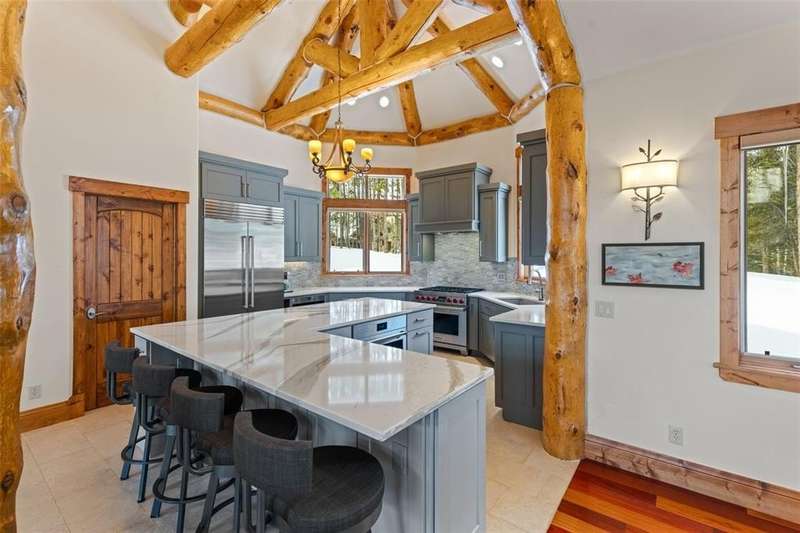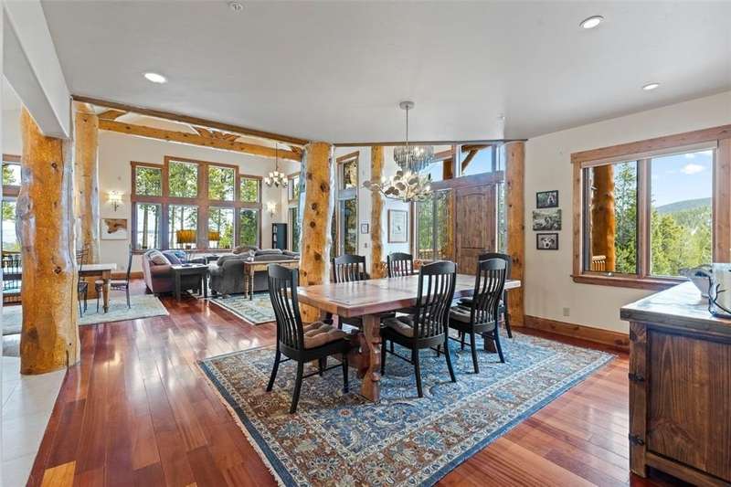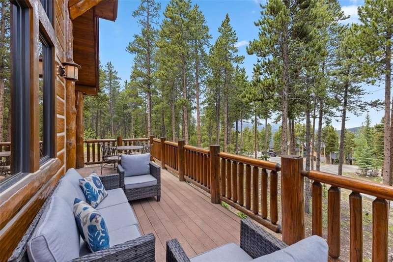 Rare Juniata home!! Experience the best of mountain living with nearly 2 acres of private land, top-rated hiking, biking, and cross-country trails right outside your door, a home built by one of Breckenridge’s top builders, and less than a 10-minute drive to the Breckenridge Ski Resort. This custom-built home features a spacious open floor plan with a brand-new kitchen equipped with Wolf appliances and two dining areas. Step outside the kitchen to a large deck with stunning views down the valley toward Frisco. Gather friends and family in the walk-out entertainment room or escape to the primary bedroom wing, where you can enjoy coffee on your private porch with views of Bald Mountain. The home boasts top-quality finishes, beautiful log accents, three fireplaces, multiple outdoor spaces, and a three-car garage with a work area. This home is the epitome of private mountain living, all while being just minutes from downtown Breckenridge.
