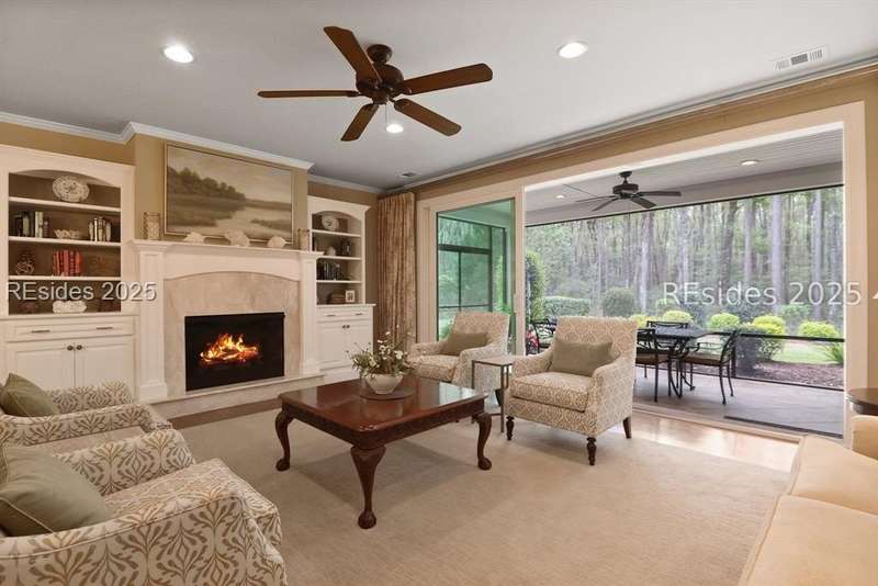 This stunning 3BD/3.5BA Sonoma Cove w/ loft model is nestled on a spacious .35-acre wooded lot offering exceptional outdoor living. The home features two inviting living areas; a great room w/a cozy fireplace &a hearth room w/custom built-ins. The gourmet kitchen is a chefs dream complete w/a five-burner gas range, abundant cabinetry, granite countertops, large island& a spacious pantry w/custom shelving. The second floor provides a private retreat perfect for guests featuring a bedroom, full bathroom & an additional living space. Step outside to the custom screened lanai w/tile flooring designed for year-round enjoyment.
