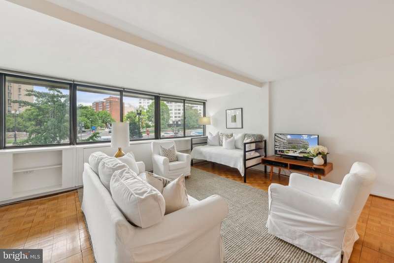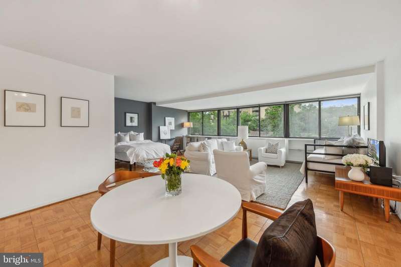 Welcome to an extraordinary opportunity to own a piece of Washington, DC history in the iconic Watergate East. This beautifully designed 775 sq. ft. efficiency lives large, offering a thoughtfully defined layout that feels more like an expansive one-bedroom. The spacious living area flows effortlessly into a dedicated dining space and an updated kitchen, while a separate sleeping alcove easily accommodates a king-size bed. Bathed in natural light from a full wall of windows, the home feels bright, airy, and inviting from the moment you walk in. Elegant finishes throughoutincluding sleek countertops, modern flooring, and a generous walk-in closetadd both style and function. The Watergate East offers a lifestyle unlike any other, with resort-style amenities including landscaped gardens, flowing fountains, a swimming pool, state-of-the-art fitness center, and full-time concierge staff. Located just steps from the Kennedy Center, the Potomac River, and Foggy Bottoms vibrant dining and nightlife scene, this is city living at its most refined.
