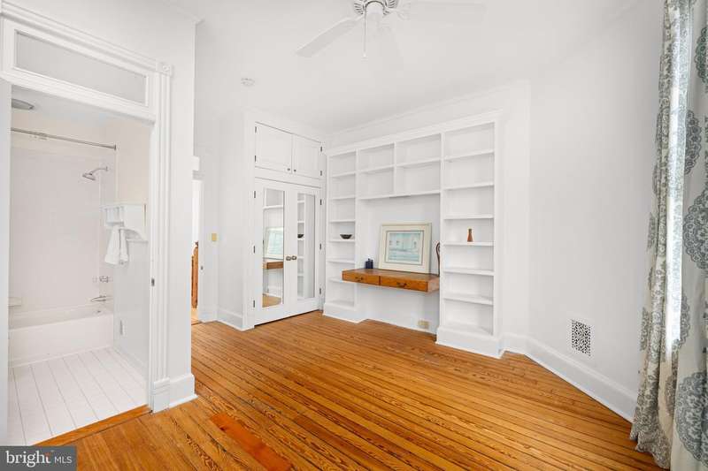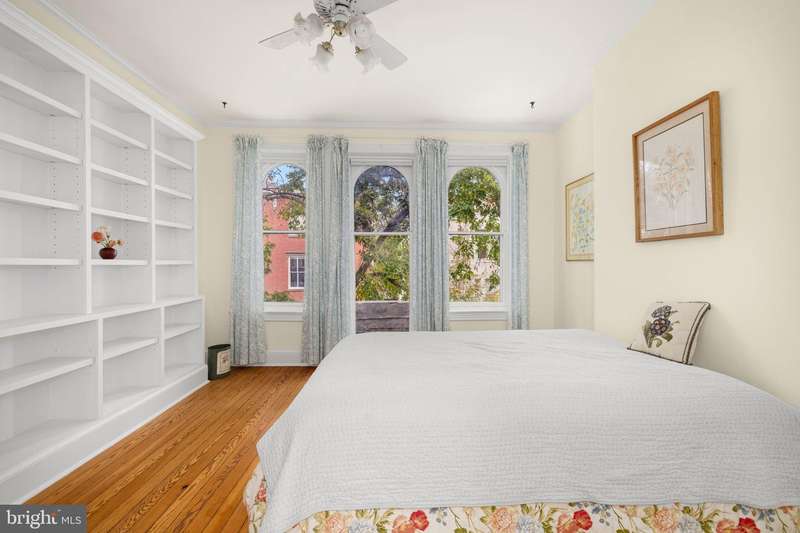 This is a special and highly authentic East Village brick Victorian. Its authenticity comes from the countless original detailsfloors, moldings, fireplaces, and windowscarefully preserved throughout. Its distinctiveness begins with the faade, a prime example of high Victorian architecture, and part of a unique row of Georgetown houses unlike any others in the village. Inside, the house has been thoughtfully and expertly adapted for todays lifestyle. Main Level Two curved double front doors open into a practical vestibule with glass entry. A massive original staircase with carved newel post and balustrade sets the tone, paired with an elegant custom dining room/library with floor-to-ceiling bookshelves and cabinetry. Front parlor with fireplace, original ceramic tile surround, and hardwood flooring. Spacious eat-in kitchen with stainless steel appliances, ceiling-height cupboards, generous storage, and walk-out to a flagstone terrace and garden. High ceilings, original glass transoms above doorways, and recessed lighting.Lower Level Expansive family room with built-in cabinetry and floor-to-ceiling bookshelves. Abundant natural light, ceramic tile flooring. Full white-tile bathroom. Bedroom/home office with separate rear entrance, built-ins, and garden views. Laundry closet with shelving and a utility/storage room.Second Floor Large landing with powder room. Living room with soaring ceilings, original pine floors, fireplace, and three-part bay window overlooking Federal houses on 30th Street. Bedroom with double closets (plus storage above), pocket doors, and an en-suite bath finished in white tile and marble with nickel fixtures.Third Floor Landing flooded with natural light from a large skylight, original wood floors. Front bedroom with three original windows opening to a balcony over 30th Street, floor-to-ceiling bookshelves, large closet, and a full white-tile bath with skylight. Rear bedroom with western views of magnolia, crpe myrtle, and ornamental trees; additional skylight; built-ins and desk; double closet with storage above; and en-suite bath.