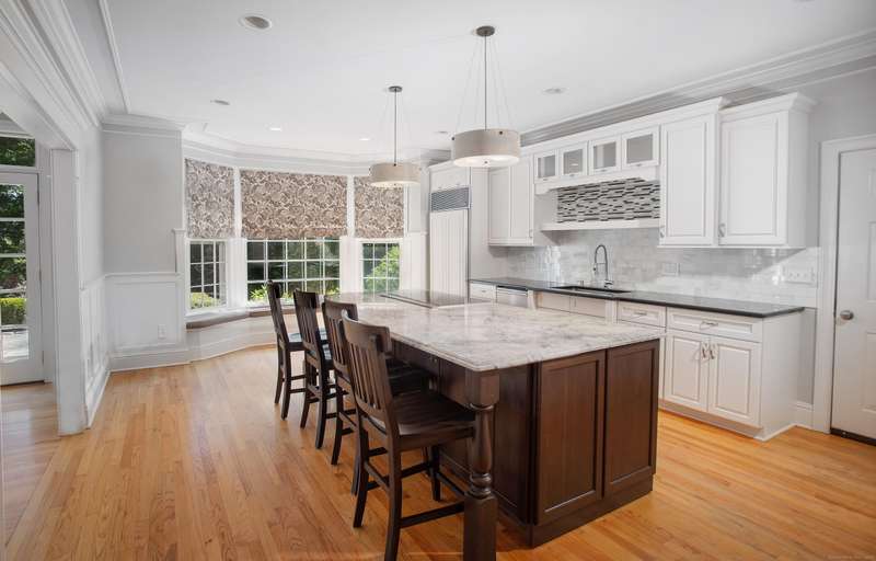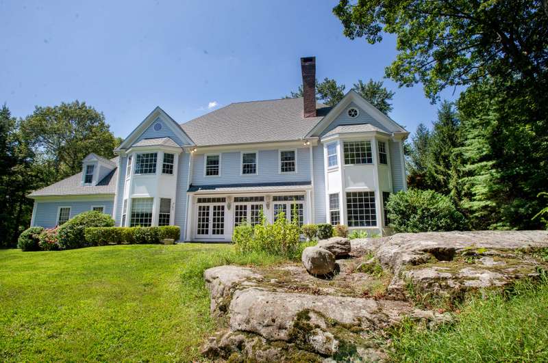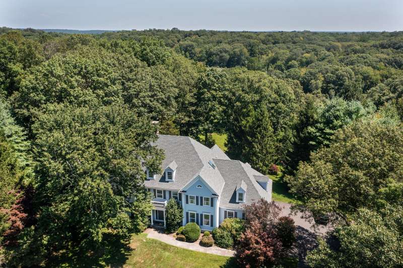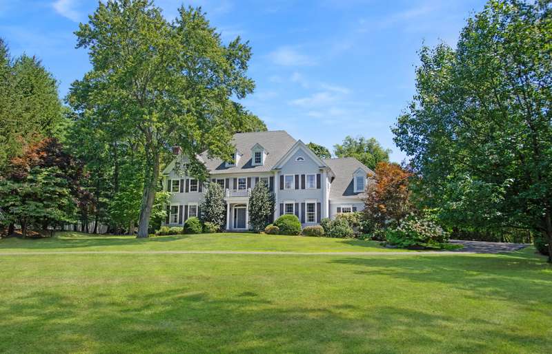 Welcome home to this classic Colonial on one of South Ridgefield's most beautiful and coveted roads. Set on three gorgeous acres, this Reed Whipple-built home has that perfect balance of timeless style and comfortable living. Sunlight pours into the spacious rooms, where hardwood floors, custom paneling, and high ceilings add warmth and charm. The formal living room with fireplace opens to a cozy library with built-ins and its own fireplace-such a great spot for reading or working from home. The dining room flows into a fabulous kitchen with granite counters, professional appliances, a large island, breakfast area, and plenty of cabinetry. The family room is the heart of the house, with a fireplace, built-ins, and French doors leading out to the patio. Upstairs, the primary suite feels like a retreat with its walk-in closet and marble bath. Three more ensuite bedrooms, a laundry room, a flexible bonus space with a full bath-perfect for guests or an au pair-and even a sauna complete the upper level. The finished lower level offers additional living space plus a mirrored gym. Outside, the setting is truly special-mature trees, lush landscaping, and even a private pond make it feel like your own park. All this, just minutes to Ridgefield's charming village center with shops, dining, theaters, and great commuting options to NYC. And with a brand-new roof, it's move-in ready. Welcome Home!