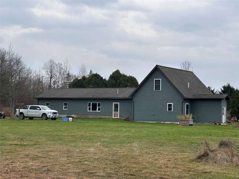Hard to Find-Wonderful Country Property perfect for Outdoor Enthusiast, Mini Farm or Workshop/garage seeker! Great Open Concept (loft not included in Sq Ft) floor plan wtih 24x32 basement with interior stairs & stairs to outside entrance too. Heat is electric baseboard heat and WDSTV in Great Rm. Attached 2 car side load garage. Beautiful pond, woods, 2 pastures, yards around the home! 30X40 Built 1992 Barn with Hayloft, Tack Rm, Electric, Dirt floors, 4 Stalls +extra space, sliding front & rear doors. 20x40 Outbuilding attached to Barn has cement floors, electric built 1998. Homestead Status reduces total tax $3687 by $235.27. Come take look at this home and be in by Christmas!