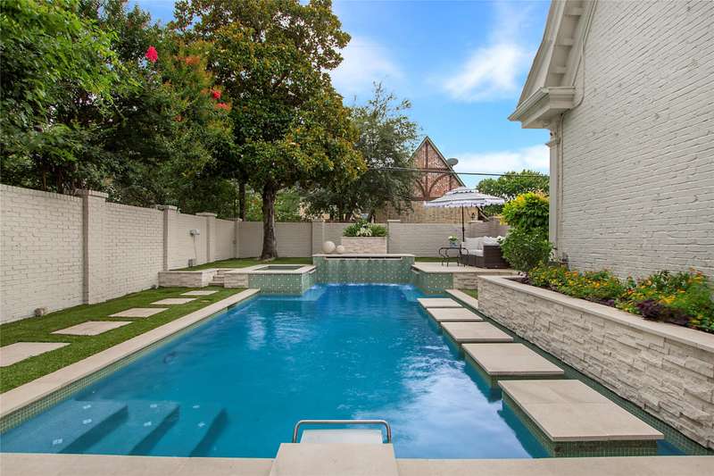 Commanding attention on its gorgeous 66 x 150 corner lot in prestigious University Park near Centennial Park, Curtis Park, University Park Pool, and the Volk Estates, this custom-built classic traditional home masterfully blends timeless architecture with refined transitional style and has been previously featured in Architectural Digest. The stately three-story brick home, with its Gambrel roof and surrounded by manicured landscaping and blooming crepe myrtles-offers a seamless blend of classic charm and elevated, transitional style-delivering effortless luxury from the very first glance. Step inside to soaring 10-ft. ceilings, rich hardwoods and an expansive central hall that anchors elegant entertaining spaces and intimate retreats. The formal living room, with its limestone fireplace and French doors, opens to a private outdoor oasis. Both with light-filled French doors opening to the outdoors, a formal dining room leads to a scenic side patio and a richly appointed library opens to a front porch-adding to the homes dignified charm. The chefs kitchen dazzles with white Carrara marble, a Wolf commercial range, and premium appliances-think SubZero, Thermador, Asko and Hoshizaki-flowing seamlessly into a cozy breakfast nook. With French doors opening to a front porch, the downstairs primary suite is a tranquil escape with its gorgeous spa-like white quartz and porcelain tile bath & custom walk-in closet. Upstairs, an oversized den, sitting room, 4 spacious bedrooms & a private guest suite with its own bath & adjacent kitchen offer space & flexibility. The 3rd floor reveals a game room, mirrored gym or playroom & a full bath-easily convertible to a 7th bedroom. Outside, a serene pool & spa-complete with soothing fountains, color-changing LED lights & surrounded by turf grass & honed limestone-invite relaxation & entertainment year-round. A 2-car garage with sliding gate completes this rare offering-an effortlessly elegant home in the heart of University Park.