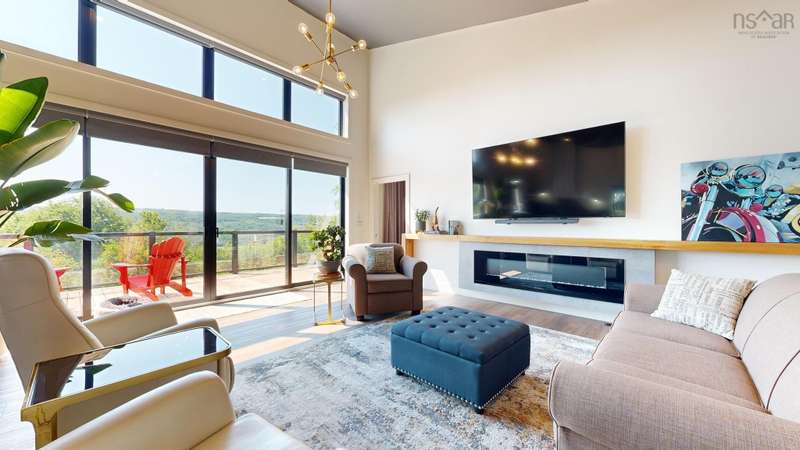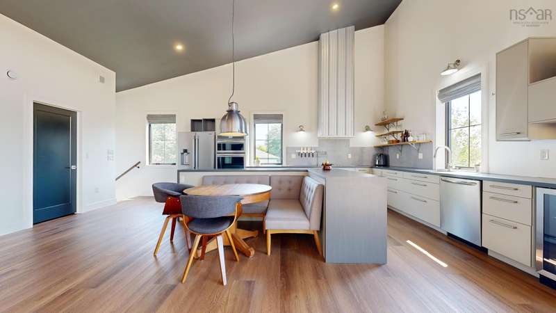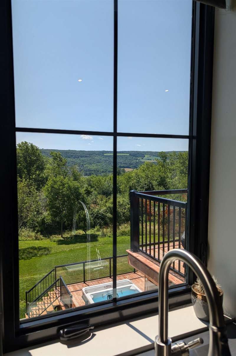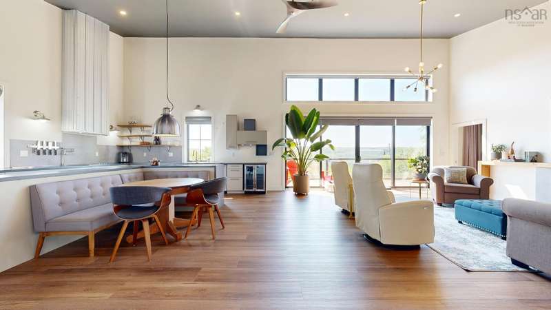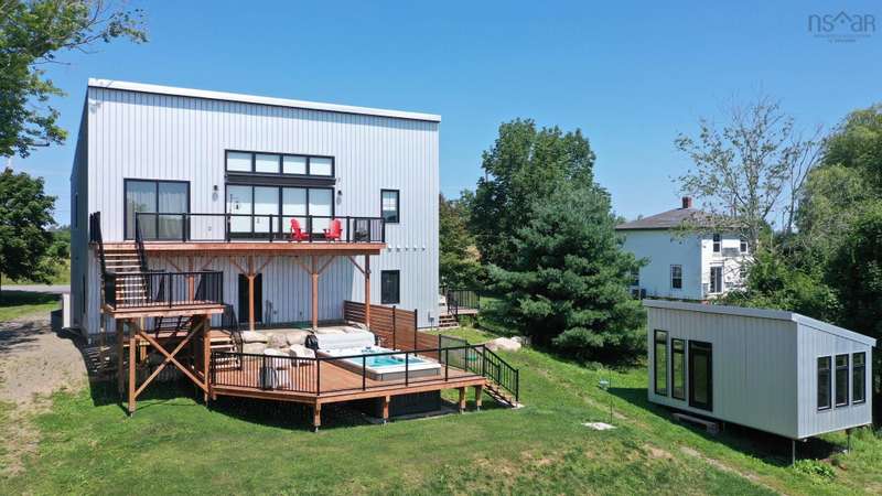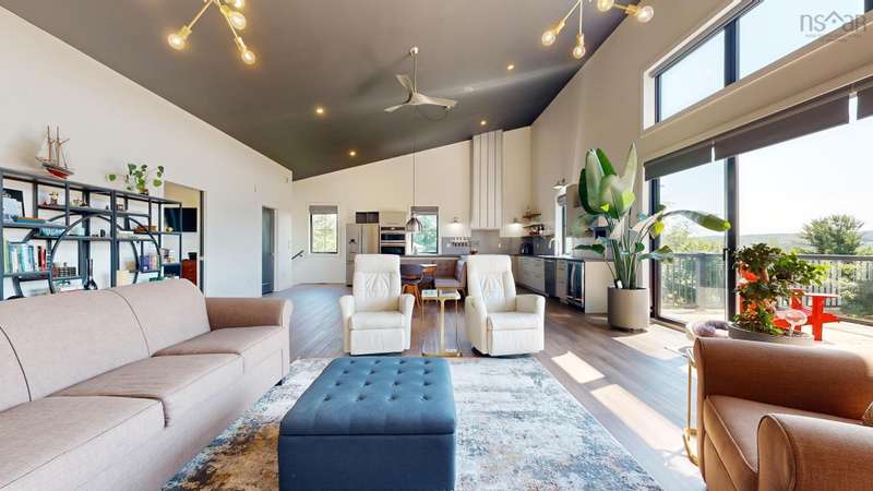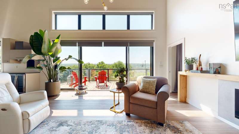 Tucked away at the enchanting edge of the breathtaking Gaspereau Valley, amidst the splendor of wine country, lies a singular treasure awaiting your exploration. The home's immaculate modern design harmoniously intertwines the tranquility of nature with chic architectural elegance, crafting your very own haven. Envision sweeping vistas from both the main living area and the sumptuous primary suite. Spanning 2,222 sq.ft., this sanctuary offers ample space for all. The stunning open concept unveils a custom chef's kitchen, generous dining areas, and a vast living and entertainment space—all crowned by a magnificent 16' vaulted ceiling. Venture outdoors to the expansive 1,200 sq.ft. multi-level deck, where a captivating four-season jetted swim spa / hot tub invite you to unwind and breathe. But the enchantment doesn't end there; the property boasts a fully contained 484 sq.ft. studio apartment, a triple car garage, and an outbuilding ripe for your creative vision. Be sure to embark on the virtual tour and peruse the online brochure—secure your private showing today!