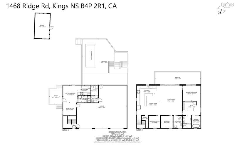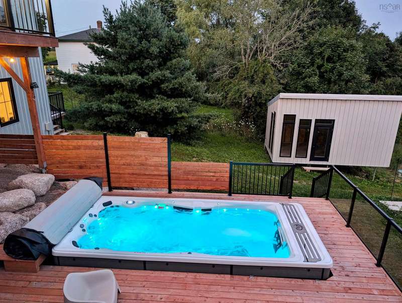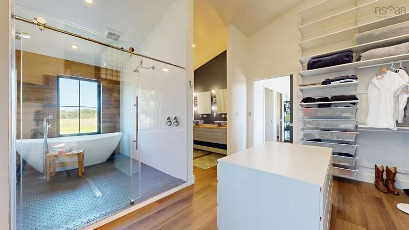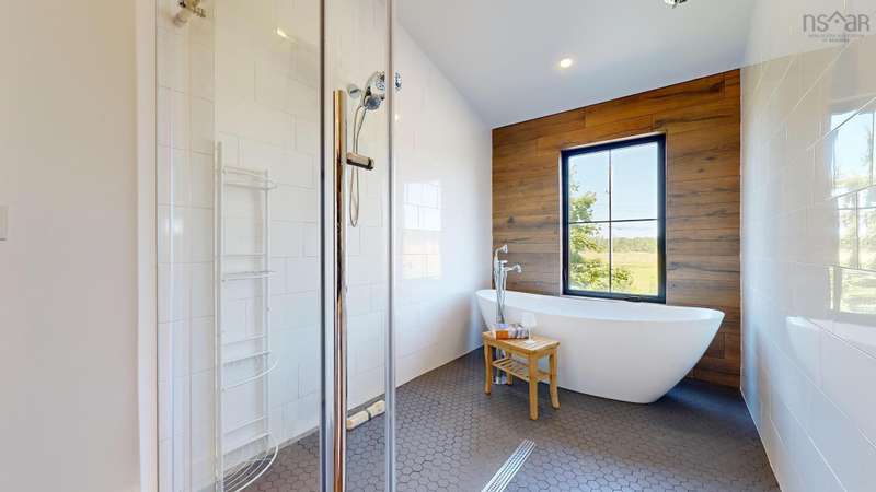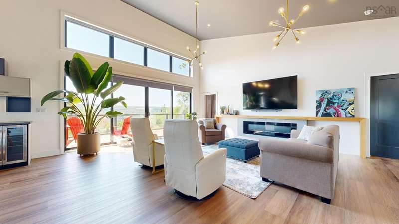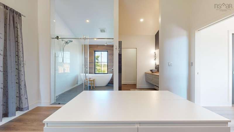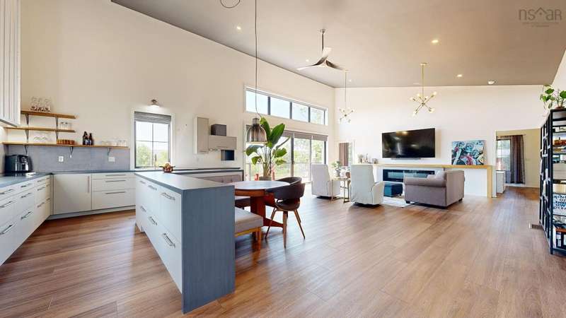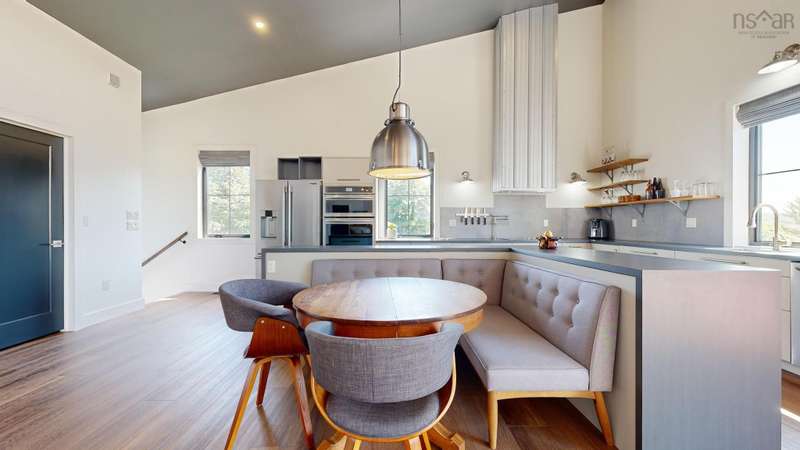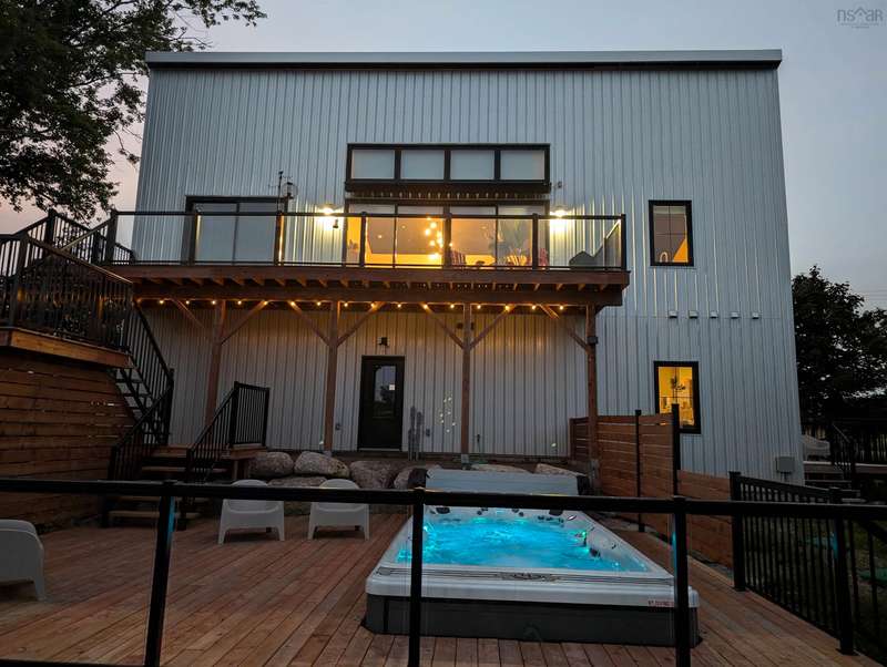 Tucked away at the enchanting edge of the breathtaking Gaspereau Valley, amidst the splendor of wine country, lies a singular treasure awaiting your exploration. The home's immaculate modern design harmoniously intertwines the tranquility of nature with chic architectural elegance, crafting your very own haven. Envision sweeping vistas from both the main living area and the sumptuous primary suite. Spanning 2,222 sq.ft., this sanctuary offers ample space for all. The stunning open concept unveils a custom chef's kitchen, generous dining areas, and a vast living and entertainment space—all crowned by a magnificent 16' vaulted ceiling. Venture outdoors to the expansive 1,200 sq.ft. multi-level deck, where a captivating four-season jetted swim spa / hot tub invite you to unwind and breathe. But the enchantment doesn't end there; the property boasts a fully contained 484 sq.ft. studio apartment, a triple car garage, and an outbuilding ripe for your creative vision. Be sure to embark on the virtual tour and peruse the online brochure—secure your private showing today!