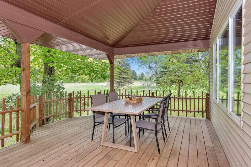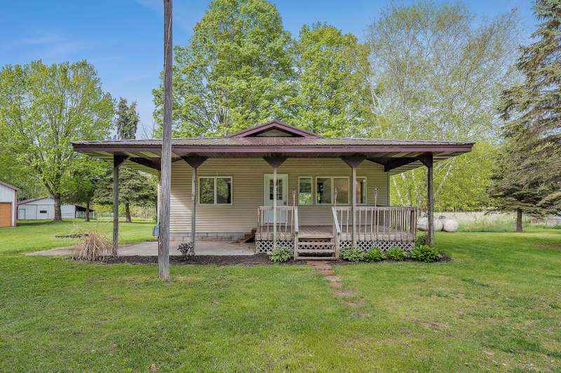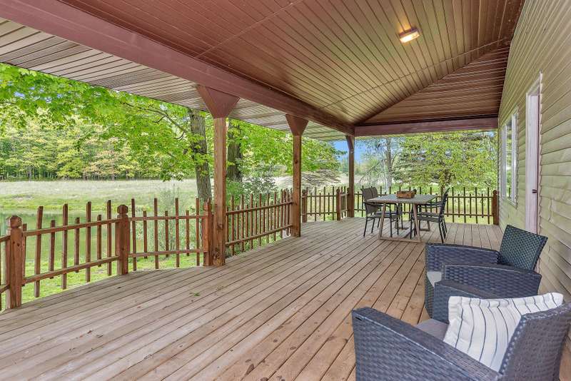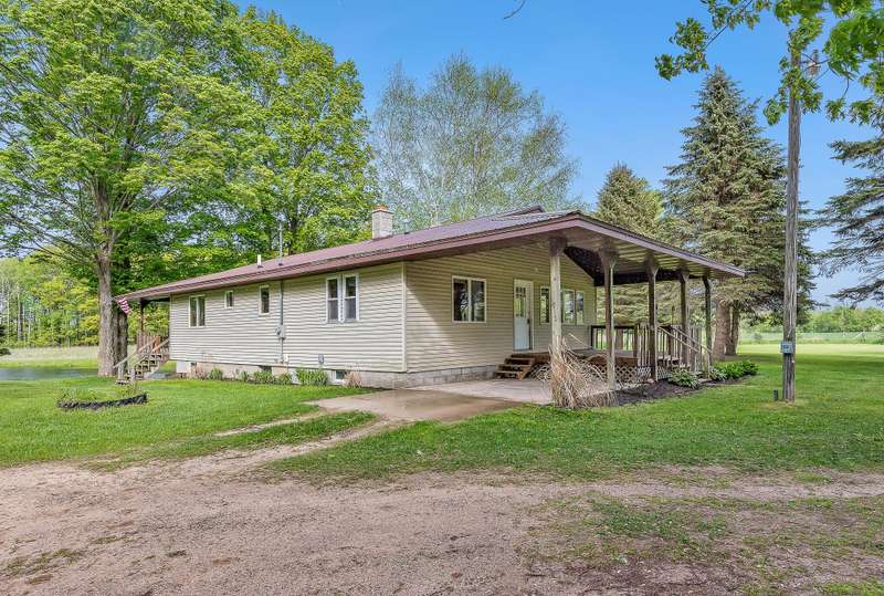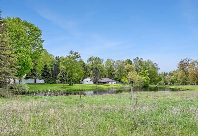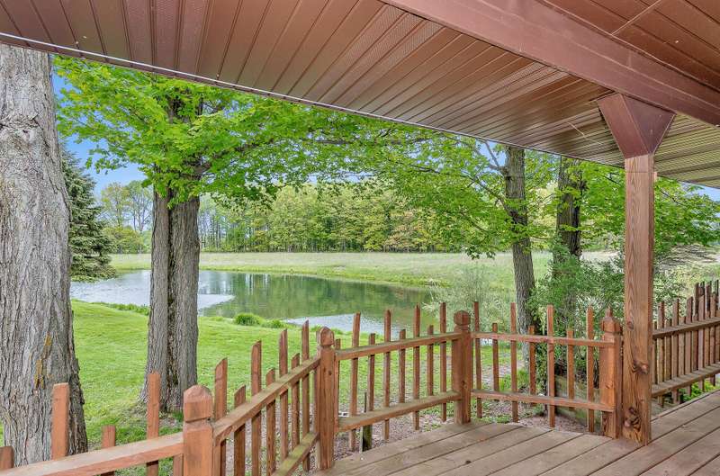Tastefully updated 3 bed 3 full bath home overlooking a beautiful private pond with 9 acres and 2 substantial out buildings. Enjoy your morning coffee on the large covered porch overlooking the private pond. You will be delighted by the new carpet, fresh paint, and large master ensuite on the main level. In the basement there is a large rec room/third bedroom with direct access to the concrete patio in the rear of the home and an additional third full bathroom. With fresh landscaping, a large yard you will not be disappointed. Do not delay. Make it yours today. A member of the selling entity is a licensed real estate agent in the state of Michigan. This listing is also for sale on 32.8 acres. See MLS#: 25023484