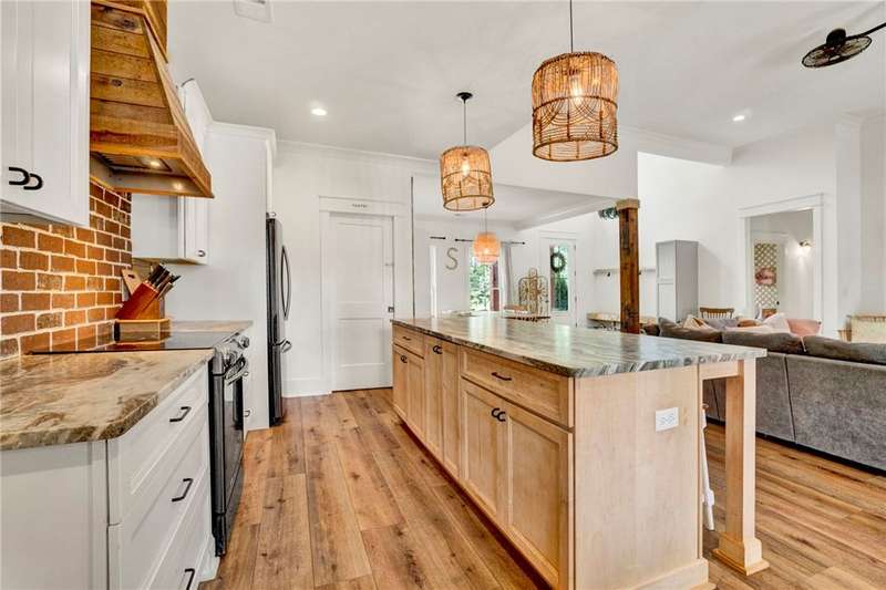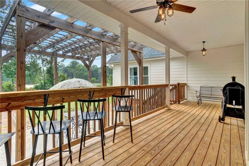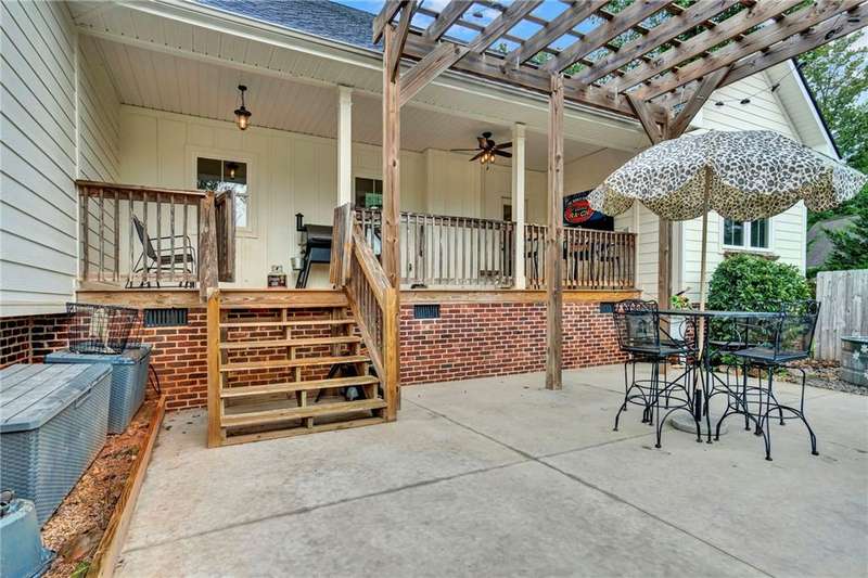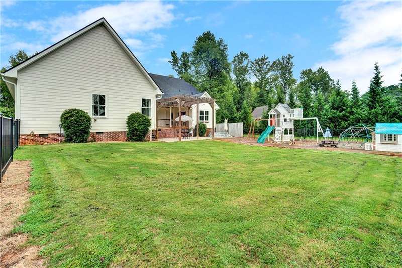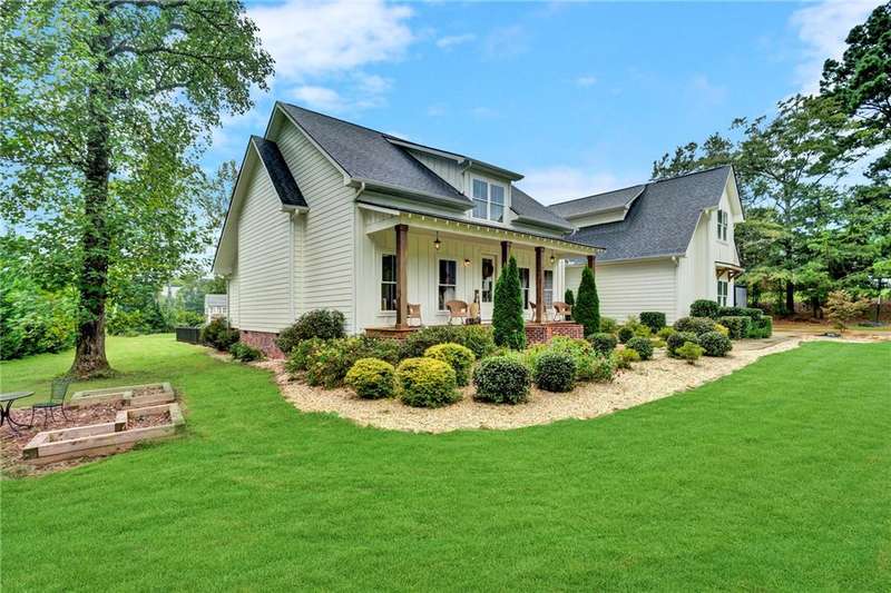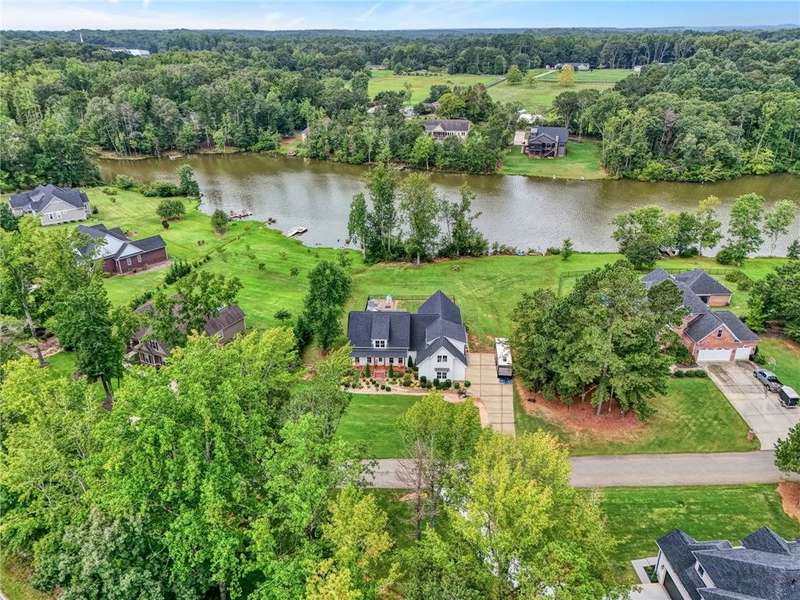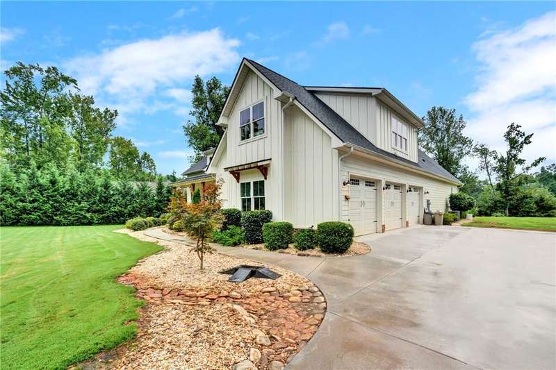 Nestled along the shores of Crawford Lake in Powdersville, this home has the charm of a modern farmhouse wrapped in the serenity of a lakefront retreat. The white concrete plank siding with board and batten accents gives it that timeless appeal, the kind that makes you feel like you've found the place you've always been meant to call home. Step inside and the two story foyer greets you with light and space. Just off the entry is a large dining room, perfectly placed for gatherings that grow even more special as the holidays approach. You can almost picture a long table filled with friends, family, and laughter. From here the heart of the home unfolds into the kitchen and family room, where life naturally gathers. The kitchen is as functional as it is beautiful. A long island stretches wide, ideal for spreading out holiday treats or evening homework while dinner simmers. The granite counters are stunning, each slab carefully chosen. A lovely hood crowns the stove, and the farmhouse sink feels right at home here. The thoughtful choice to avoid surrounding the sink with upper cabinets makes the space feel open and airy, as if the room breathes with you. The oversized pantry is a dream, ready to swallow up every crockpot, snack, and oversized platter you could possibly own. The family room is generous in size, anchored by a brick fireplace with gas logs that set the tone for cozy evenings. Wide windows draw your gaze to the lake just beyond, where the water shimmers in every season. Step outside and the living space continues. A covered deck makes for shady afternoons while a sprawling patio below becomes the hub for barbecues, stargazing, or simply a quiet evening by the water. The fenced yard gives kids their own place to run and play, yet just beyond the fence the lake stretches, a constant reminder of the rare beauty of this setting. Back inside, the home is designed mostly on one level. The primary suite is split from the guest rooms, creating a retreat of its own. Here too, large windows frame the lake view. The bath is well appointed with double sinks, a walk in shower, and a closet so spacious it feels like its own room. Just beside this suite sits a versatile space the seller uses as a gun room and office, a feature that adds both practicality and a touch of personality. The laundry room is oversized as well, ready for big appliances and storage that actually works. The guest bedrooms are tucked away on the other side of the home, connected by a jack and Jill bath that features its own farmhouse style sink. Each bedroom is bright and cheerful, designed with care and ample closet space. Upstairs you'll find another guest room and a nicely sized bonus room. Large windows flood these spaces with natural light, and plumbing is already in place for a future bath should you decide to expand. Outside, the level lot is beautifully landscaped, adding polish to the natural setting. Living on Crawford Lake in Powdersville is not something that comes available often, and this home captures the dream perfectly. The community dock opens the door to fishing, canoeing, or simply drifting across the water at your own pace. The location is just as special as the home itself. Wren schools are known for their strong sense of community and tradition, and this address puts you right in the heart of it. Yet you are also just minutes from Greenville, Anderson, or Easley, giving you the best of both convenience and retreat. This is more than a house on the lake. It is a story waiting to be lived, where farmhouse charm meets the stillness of water and the joy of community, all in one rare and beautiful setting.