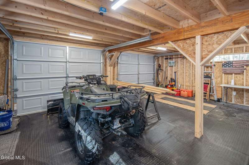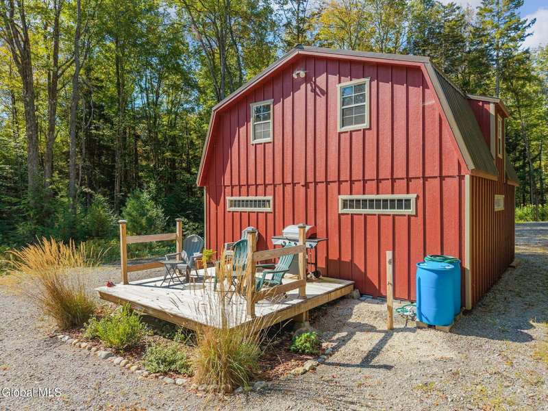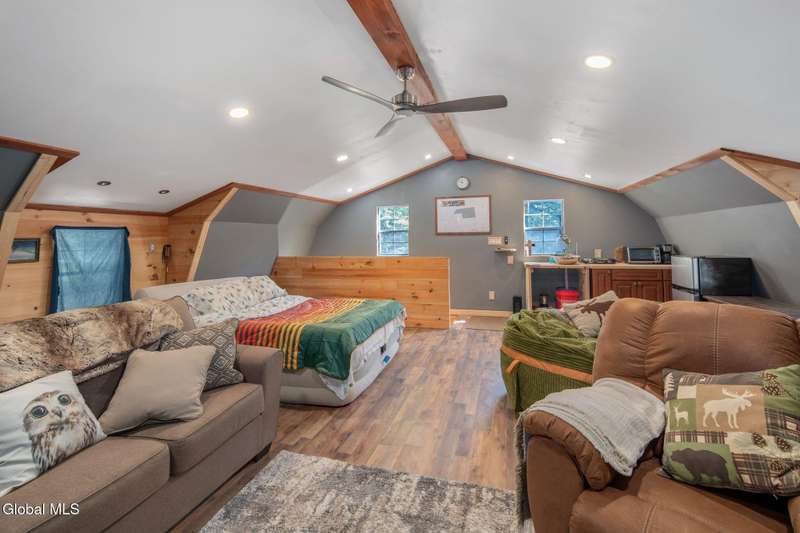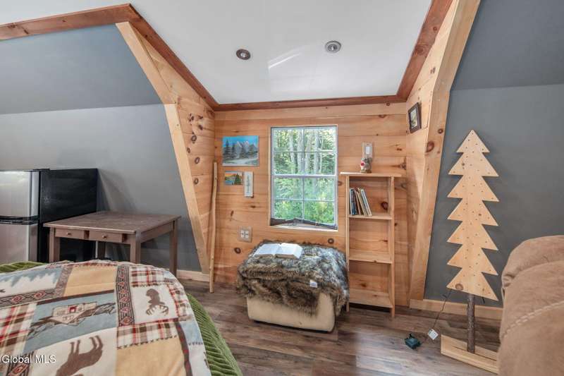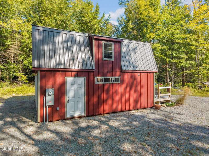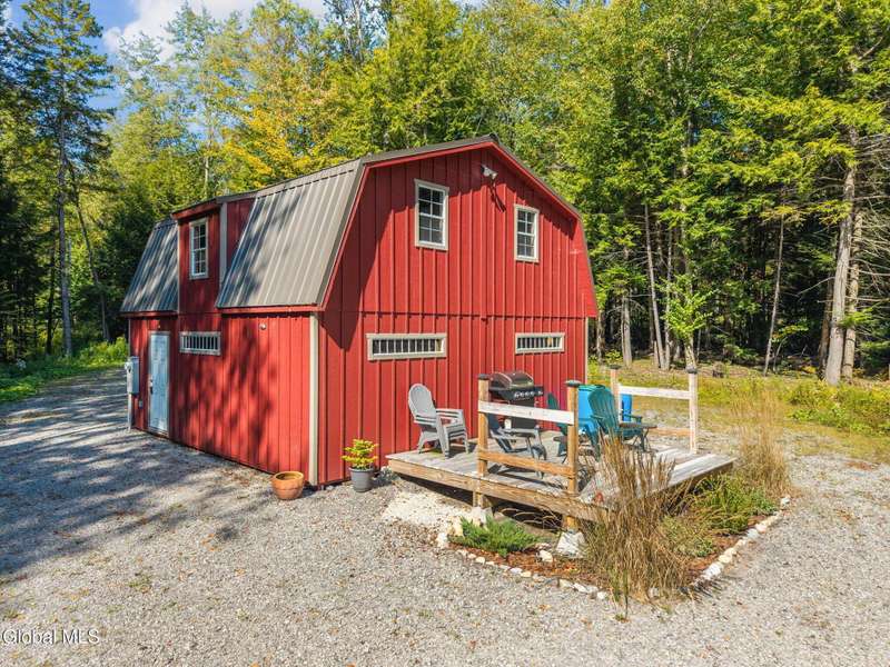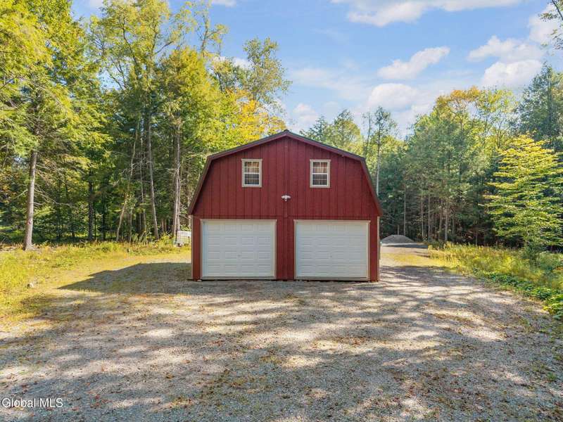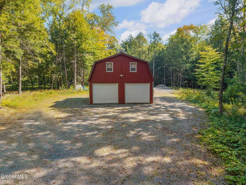 A haven for recreation and nature enthusiasts, this property is situated directly across from snowmobile and ATV trails. Spanning 20 acres, it features a mix of hardwoods and softwoods, a year-round brook, and trails. The two-story garage, constructed by Amish craftsmen, includes a finished second floor, making it an ideal retreat for hunting, snowmobiling, ATV riding, or enjoying the tranquility of the surroundings. Notable features of this property include: 200-amp electric service, Verizon Fios connectivity, a 240-volt heater, ship-lap dormers, laminate flooring, a stone fireplace with an electric insert, a small efficiency kitchen area, a 12x12 ft deck, a wrap-around driveway, recessed lighting, and an abundance of electrical outlets. No well or septic system, these can be installed.