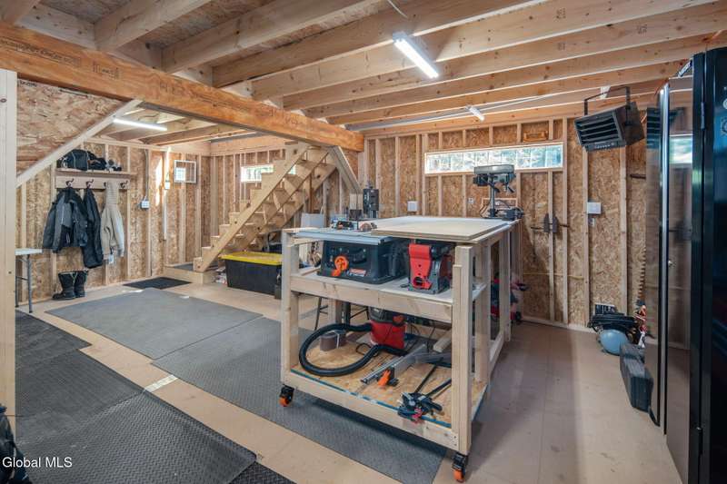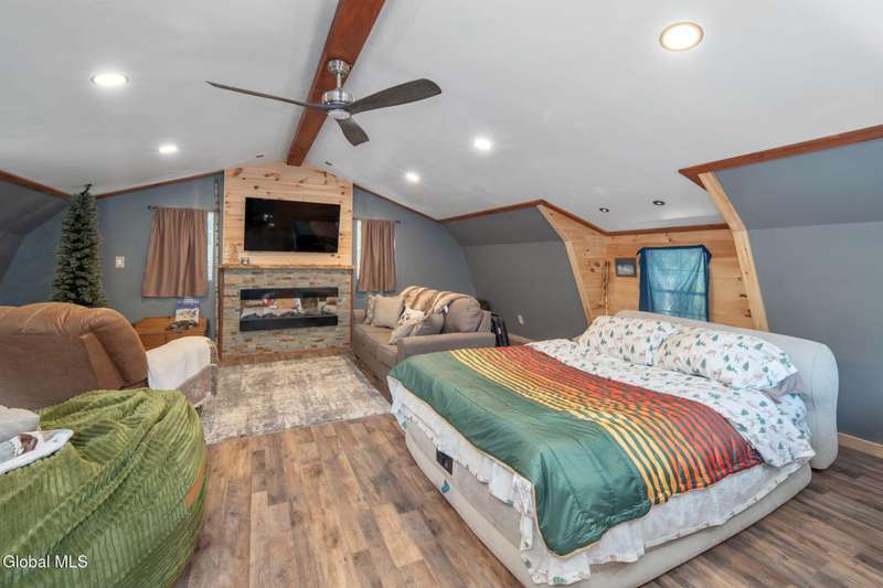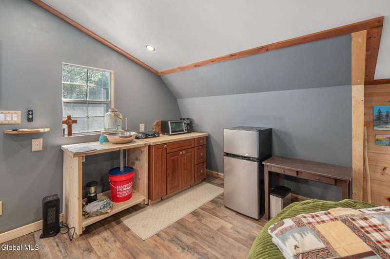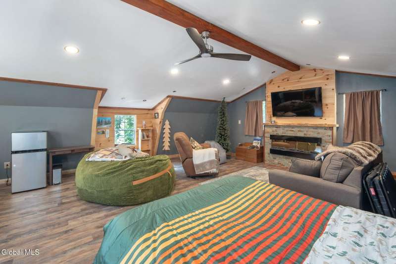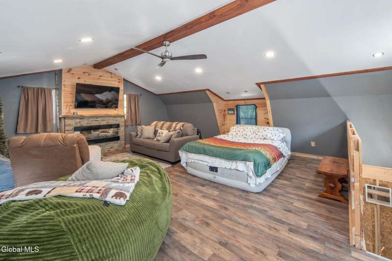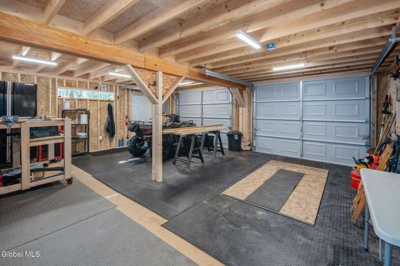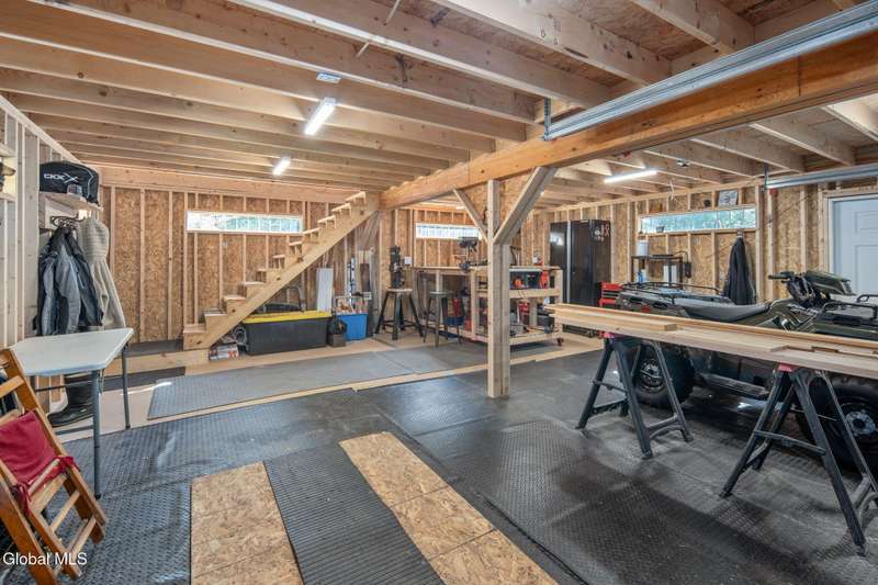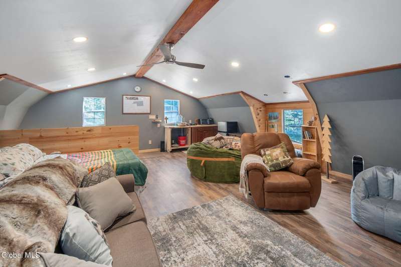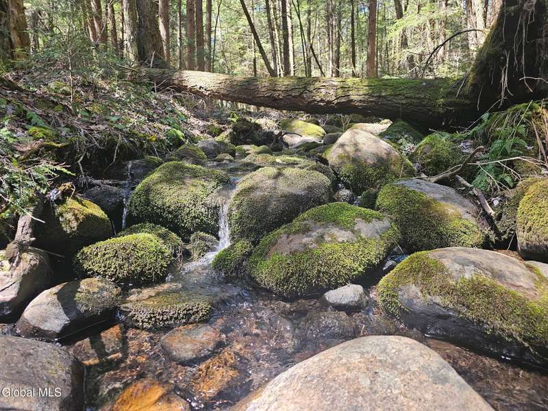 A haven for recreation and nature enthusiasts, this property is situated directly across from snowmobile and ATV trails. Spanning 20 acres, it features a mix of hardwoods and softwoods, a year-round brook, and trails. The two-story garage, constructed by Amish craftsmen, includes a finished second floor, making it an ideal retreat for hunting, snowmobiling, ATV riding, or enjoying the tranquility of the surroundings. Notable features of this property include: 200-amp electric service, Verizon Fios connectivity, a 240-volt heater, ship-lap dormers, laminate flooring, a stone fireplace with an electric insert, a small efficiency kitchen area, a 12x12 ft deck, a wrap-around driveway, recessed lighting, and an abundance of electrical outlets. No well or septic system, these can be installed.