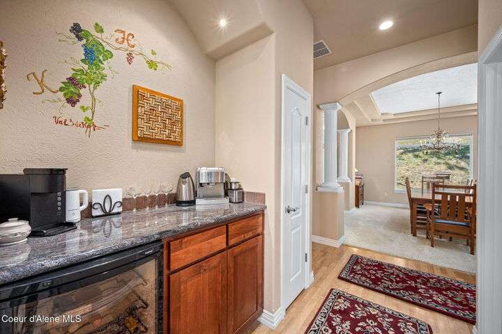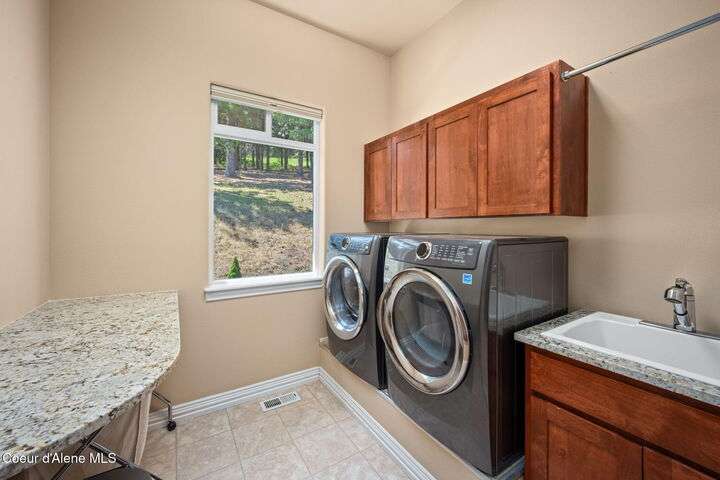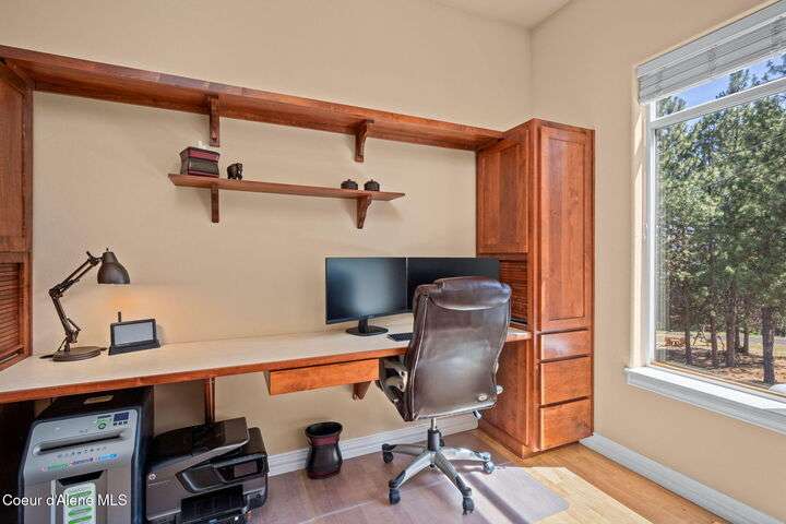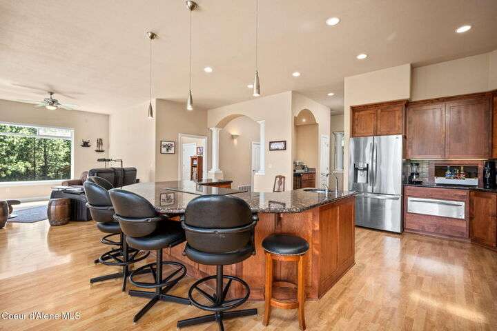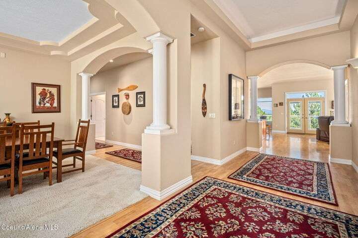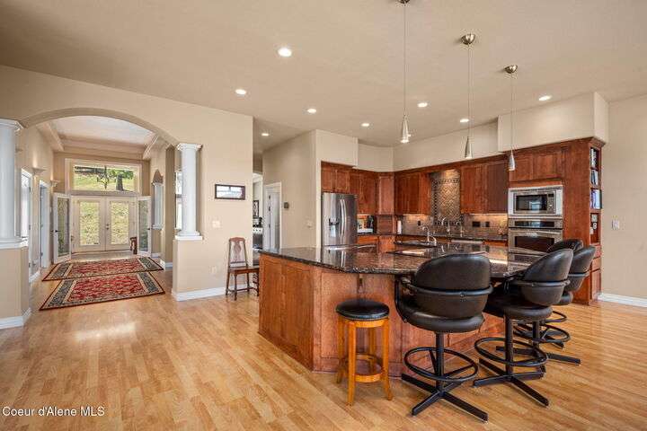 Nestled south of the Spokane River on 16.29 acres, this 2948 sq ft, 3-bed, 3.5-bath home (built 2003) is a serene oasis just 23 min from Coeur d'Alene's Sherman Ave, 13 min from Post Falls, and 40 min from Spokane Airport. Enjoy a grand double-door leaded glass entry, hardwood floors, 10' ceilings, and a gourmet kitchen with granite counters, cherry cabinets, and a large island. The primary suite stuns with a walk-in closet, jetted tub, and two-sided gas fireplace. Relax on the trex deck with million dollar views or in the 3-person spa. A 40x60 shop and 12x60 lean-to, spray foam insulation, and 220v power sits on a concrete slab. Updates include a 2019 metal roof, Hardie board siding, and asphalt driveway. With an elevator, zero-step entries, 4-car garage, 3-zone sprinklers, and a security system, this home is also wired for generator that offers luxury and accessibility. All appliances stay! Low taxes with timber exemption. Your dream retreat awaits! Exquisite Private North Idaho Estate - Your Ultimate Sanctuary Awaits! Escape to a world of unparalleled luxury and tranquility with this breathtaking 2,900 sq ft, 3-bedroom, 3.5-bathroom masterpiece (Sitting on a 2,882 sq ft basement!), nestled on 16.29 acres of pristine North Idaho landscape, just south of the Spokane River. Built in 2003 and meticulously updated, this estate offers a harmonious blend of modern sophistication, accessibility, and rugged outdoor beauty. Perfectly positioned for convenience, you're only 23 minutes from the vibrant Sherman Avenue in downtown Coeur d'Alene, 13 minutes from the charming heart of Post Falls, and a mere 40 minutes from Spokane International Airport. Whether you seek a private retreat, a family haven, or a versatile property for work and play, this home delivers it all. A Grand Arrival: As you approach through the automatic iron gate, a 1,200-foot asphalt driveway, newly paved in 2024, guides you effortlessly to the property. Designed for easy maintenance and snow plowing, the driveway features an extended trailer turnout, ensuring seamless access for vehicles of all sizes. The gate, operable by code or clicker, adds a layer of security and exclusivity to your private oasis. Beyond the gate, the sprawling estate unfolds, revealing meticulously maintained grounds, a 3-zone sprinkler system, and a charming fire pit area in the front yard - the perfect spot for cozy evenings under the stars. Architectural Elegance Meets Modern Comfort: Step through the double-door leaded glass entryway, a stunning prelude to the home's grandeur, and into a welcoming foyer with a tray ceiling and gleaming hardwood floors. A second French door adds an extra touch of sophistication, ushering you into a world of refined living. The open-concept interior, with 9' ceilings throughout, exudes warmth and spaciousness, enhanced by Hunter Douglas window coverings that frame breathtaking views of the surrounding landscape. The heart of the home is the gourmet kitchen, a chef's dream designed for both functionality and style. A large center island with a sink, seating for four (stools included), and granite countertops anchors the space, while cherry wood cabinets and a separate pantry provide ample storage. Adjacent, a cozy breakfast nook invites morning coffee with a view, and a formal dining room with a tray ceiling sets the stage for elegant gatherings. For wine enthusiasts, a dedicated wine bar with granite counters and a wine refrigerator adds a touch of indulgence. The living room, warmed by a gas fireplace, flows seamlessly onto a expansive rear deck crafted with low-maintenance trex decking and sleek glass-panel handrails. Here, you'll find a 3-person spa just steps from the primary bedroom, offering a private retreat for relaxation. A direct propane stub makes outdoor grilling a breeze, perfect for summer barbecues with family and friends. A Primary Suite Like No Other: The primary bedroom suite is a sanctuary of luxury, designed for ultimate comfort and serenity. A two-sided gas fireplace creates a cozy ambiance, connecting the bedroom to the spa-inspired ensuite bathroom. Unwind in the jetted tub, refresh in the spacious walk-in shower, or enjoy the convenience of upgraded vessel sinks and granite countertops. A generous walk-in closet provides ample storage, ensuring your personal retreat remains clutter-free. Step directly onto the deck to soak in the hot tub or savor the stunning views that stretch across the property. Accessibility and Versatility: This home is thoughtfully designed for accessibility, with zero-step entrances from the 4-car garage to the basement, from the basement to the elevator, and from the elevator to the main floor. The OTIS elevator, paired with wide hallways, ensures seamless mobility throughout the home. The walk-out basement, complete with a full bathroom, additional entry point, and dog kennel, offers endless possibilities - a guest suite, home office, or recreational space. A water softener, sand filter, and central vacuum system add convenience, while a home security system provides peace of mind. Modern Updates for Effortless Living: No detail has been overlooked in maintaining this home's pristine condition. In 2018, a new air handler was installed, followed by a comprehensive 2019 exterior overhaul, including a durable metal roof with snow breaks, new gutters, Hardie board siding, rock siding, and a reimagined front entryway. The old deck was removed, and new decking was added to accommodate the hot tub, complete with updated deck stairs. Inside, the laundry room boasts granite countertops, and all appliances - included with the home - are ready for immediate use. The property's infrastructure is equally impressive. A 500-gallon leased propane tank powers the home's two gas fireplaces and outdoor grill stub, while a well head just 50 feet from the house delivers excellent water quality (well driller's report available). The septic system features both primary and backup drain fiel