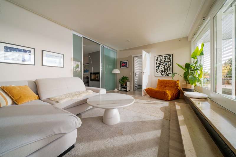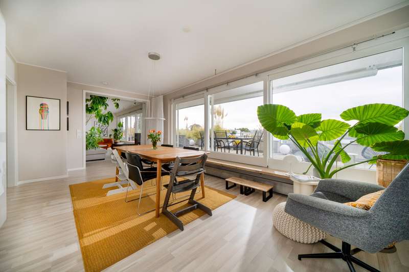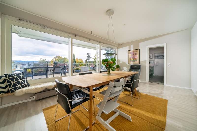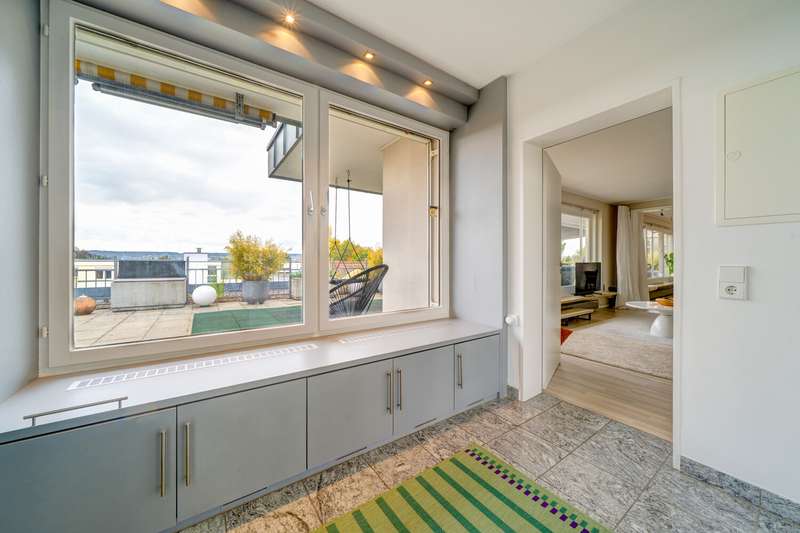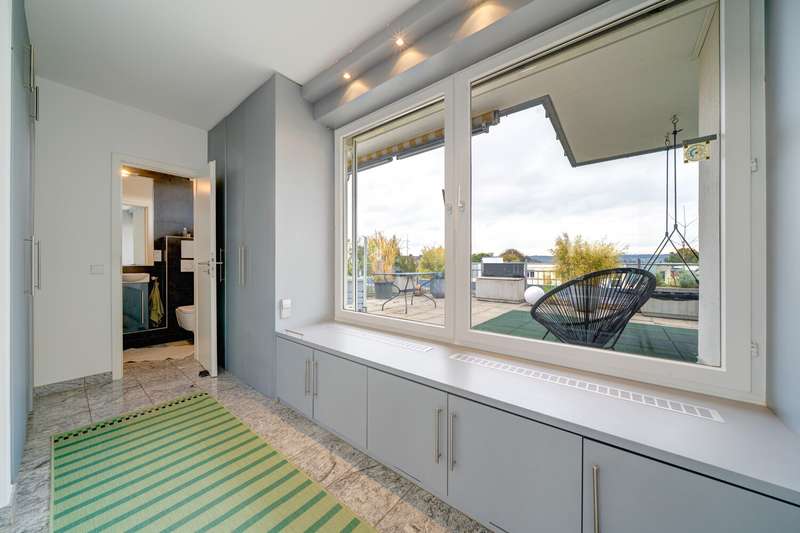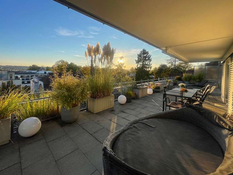 In one of the most sought-after locations in Constance - the quiet and popular Musikerviertel - this sunny penthouse apartment with a sophisticated room layout and a spectacular, approx. 114 m² roof terrace with sensational views of the Säntis and Churfirsten mountains awaits you. The bright apartment, renovated in 2018, is located on the top floor of a well-kept apartment building with a total of 22 units and offers a 180-degree view as well as many relaxing hours of sunshine during the day. Carefully selected materials, floor-to-ceiling windows and a modern floor plan create a stylish living ambience with a loft character. The penthouse impresses with an open-plan living and dining area that offers plenty of space for individual living. The modern fireplace in the living area provides pleasant warmth and a stylish ambience on cooler days. The current floor plan includes two bedrooms, a children's playroom and an open-plan living and dining area with sensational views over the Musikerviertel. This penthouse therefore offers maximum flexibility for different living situations - whether for couples, a small family or anyone who needs an additional study or guest room. The modern bathroom is equipped with a shower and underfloor heating. A separate guest WC with additional shower ensures a high level of convenience and privacy. The entire apartment is furnished to a high standard, ensuring a pleasant, relaxing living environment. The big highlight of the property is the approx. 114 m² sunny, south-facing roof terrace with impressive views of the Alps and the lake. The terrace offers numerous possible uses and the potential for a possible extension of the living space, giving you additional design options. The size of the roof terrace was taken into account proportionately when calculating the living space. For added convenience, an underground parking space is optionally available (purchase price 40,000), which allows you to park your vehicle conveniently, safely and protected from the weather. Come and see this exceptional apartment for yourself. The combination of cleverly designed space, high-quality fittings and a unique roof terrace with lake views makes this penthouse a rare opportunity and is ideal for anyone looking for something special. Please contact us for a viewing appointment to see the many advantages of this property for yourself.