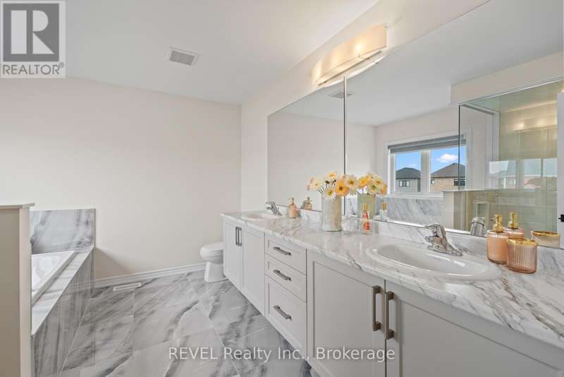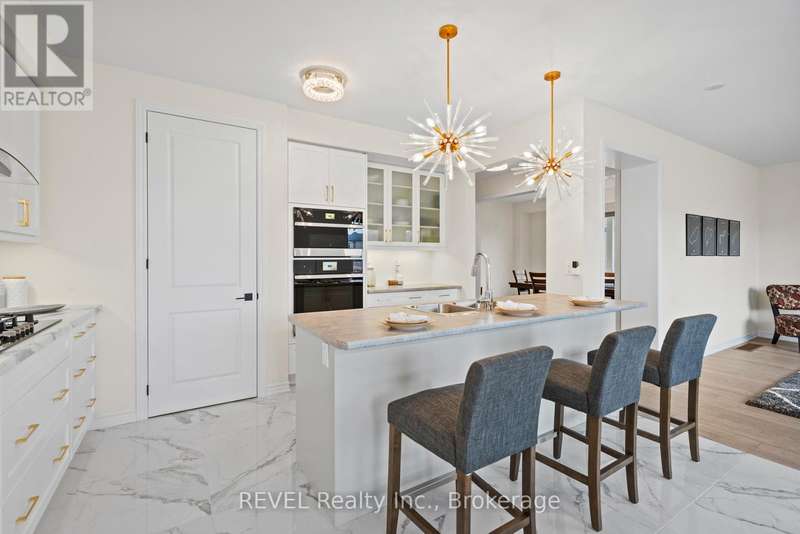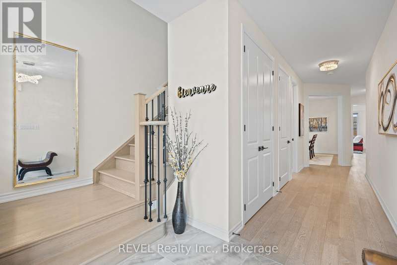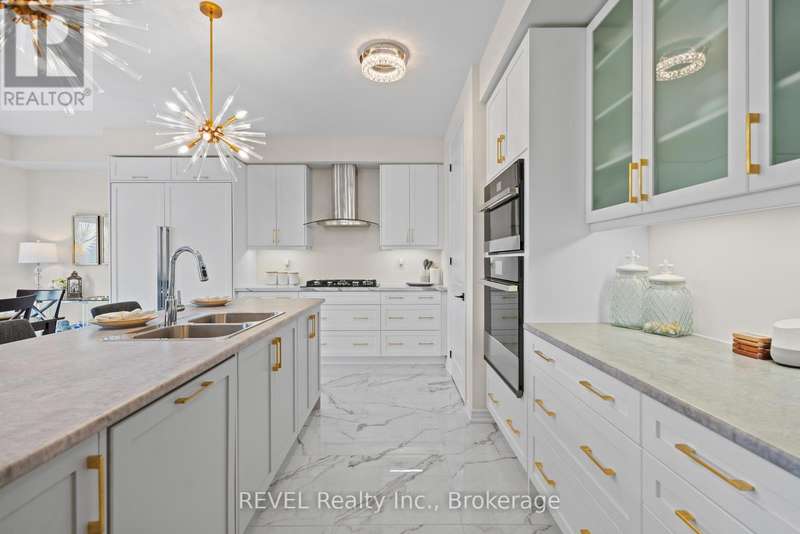 Modern Luxury Meets Ravine Living! Set on a premium 50 ft ravine lot with breathtaking sunset views, this architecturally striking 2-storey home delivers style, space, and sophistication. From the moment you arrive, the bold, modern exterior makes an unforgettable impression, while inside, designer finishes and thoughtful upgrades create a home that's as functional as it is beautiful. Step through double doors to a bright, open main floor with 9 ceilings, solid 8 doors, and 24x24 porcelain tile. Engineered hardwood flows through the dining and living spaces, anchored by a sleek gas fireplace and oversized windows framing the natural views. Triple French doors lead to a spacious deck with gas BBQ hookup perfect for entertaining. The chefs kitchen is a showstopper, with custom cabinetry, gold hardware, soft-close drawers, glass accents, and premium built-in Dacor appliances including a 30 column fridge, 24 freezer, glass cooktop, and combo oven/microwave. Upstairs, an oak staircase with wrought iron details leads to generous bedrooms. The primary retreat offers a spa-inspired ensuite with double sinks, a freestanding tub, and a frameless glass shower. Additional bedrooms share a stylish Jack & Jill bath, also finished with glass and floating vanities. The walkout basement is ready for your vision featuring oversized windows, triple French doors, laundry hook-up, rough-in bath, and a separate side entrance, perfect for an in-law suite, office, or income potential. Extras: Nest thermostat, motorized blinds, upgraded lighting, central vac, humidifier, A/C, garage access with mudroom and walk-in pantry, garage opener, and EV charger rough-in. This home blends modern elegance with everyday comfort designed for those who want more. (id:7434)