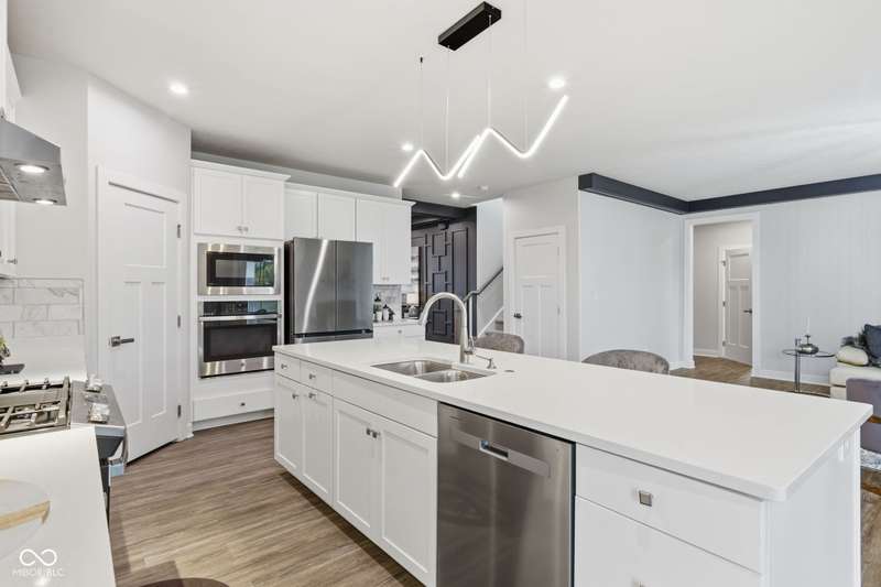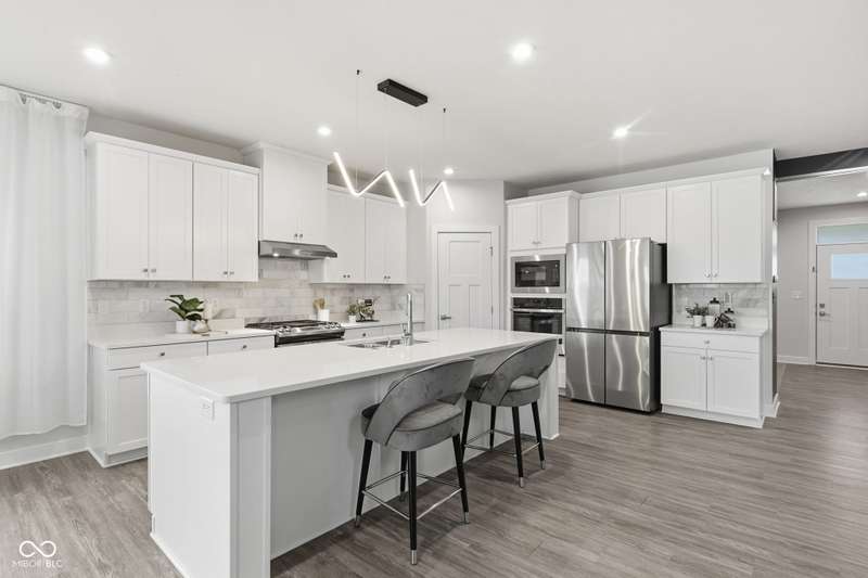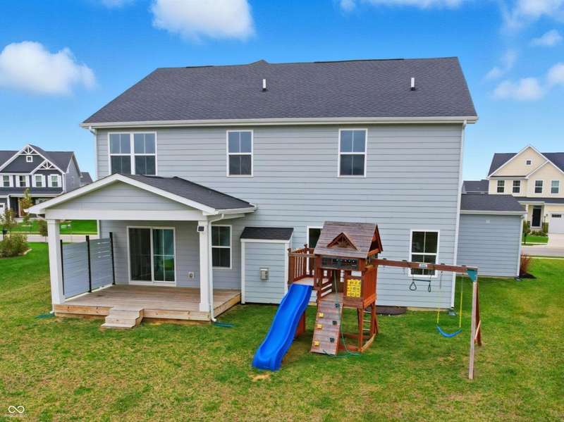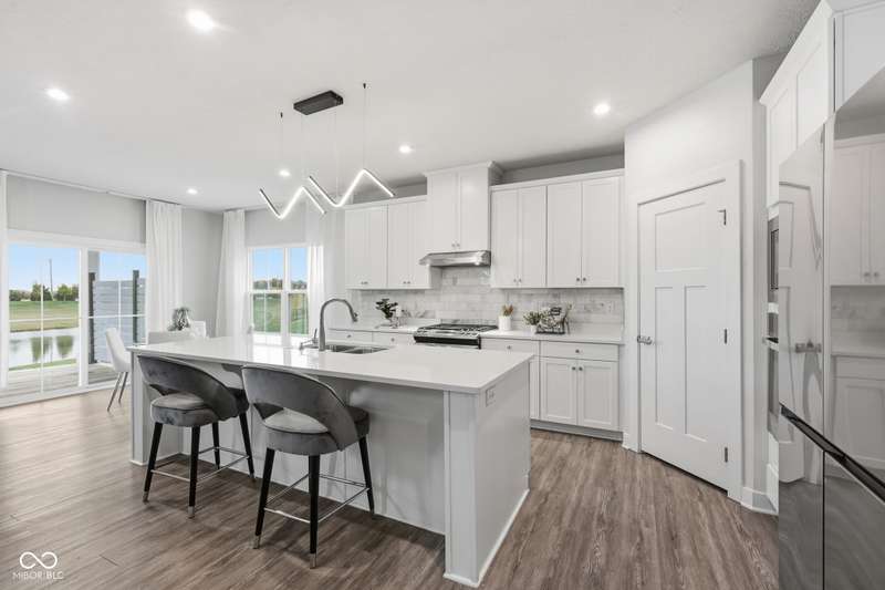 This stunning 2022-built home perfectly blends contemporary style, thoughtful design, and comfort in one of the area's most desirable neighborhoods, served by top-rated Hamilton Southeastern schools. Every detail has been carefully curated, from upgraded finishes to versatile living spaces that adapt to your needs. Freshly painted throughout the main and upper levels (October 2025), the home features an airy open-concept layout filled with natural light. The gourmet kitchen impresses with premium cabinetry, elegant countertops, and a brand-new dishwasher (October 2025). Two luxurious suites, an in-law suite conveniently located on the main level and a primary upstairs, each include private, spa-like baths. Additional highlights include a dedicated study area on the upper floor and a large 16x12 patio ideal for outdoor entertaining. The finished garage currently features a secondary kitchen setup, which can easily be removed if desired. The unfinished basement offers endless potential for future living space or storage. Other upgrades include a water softener, whole-house humidifier, and a radon mitigation system. Enjoy the best of Fishers living, minutes from shops, restaurants, parks, and major highways, while relaxing in a home that feels brand new and backs up to a serene pond, with no rear neighbors. Don't miss your chance to call this one home in time for the holidays!