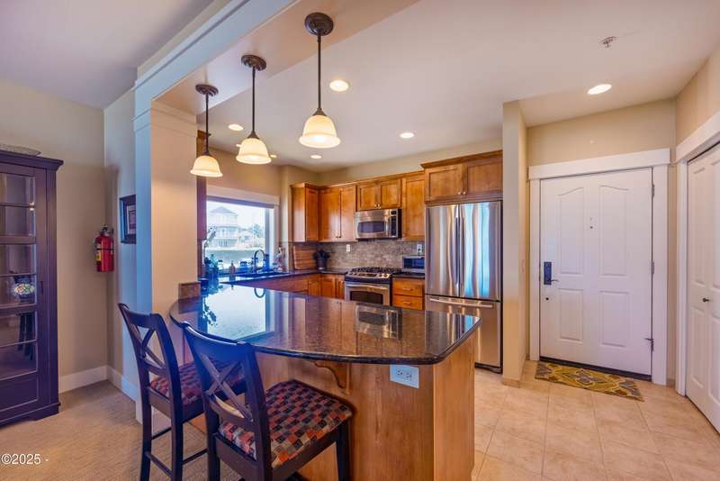 Commanding ocean views and the iconic silhouette of Yaquina Head Lighthouse create a breathtaking backdrop in this beautifully appointed coastal condo. With elevator access and tasteful furnishings negotiable, this impeccably maintained unit offers a fantastic blend of comfort, style, and convenience-equally suited for a coastal retreat or full-time living. The kitchen features granite countertops, stainless steel appliances, and generous cabinetry-designed to accommodate both everyday living and elevated coastal entertaining. Step onto the private balcony and take in the salty breeze, sweeping seascapes, and the rhythmic soundtrack of the surf. Whether it's morning coffee or an evening toast, the view and ever changing colors of the Pacific never disappoint. With convenient access to the beach just moments away, this is a rare opportunity to embrace the best of coastal Oregonwhere natural beauty meets thoughtful design and every day feels like a getaway. Thoughtfully enhanced throughoutincluding updates to the interior, furnishings, and kitchenwarethis home may be offered as a beautiful turnkey opportunity with the right offer.