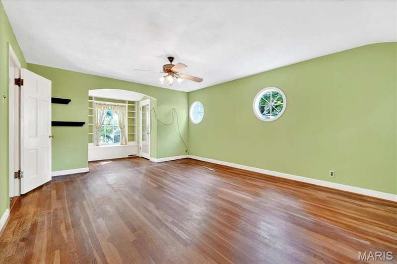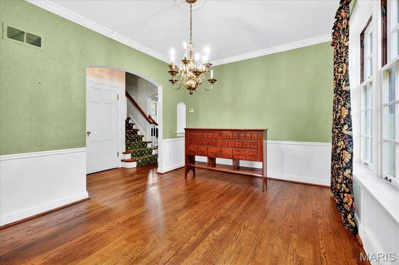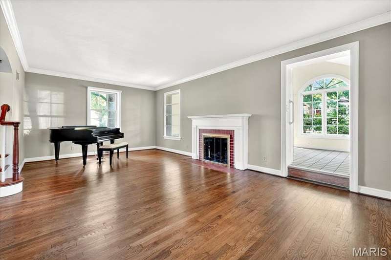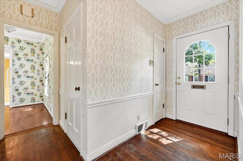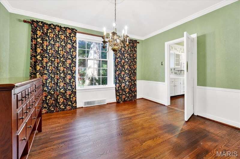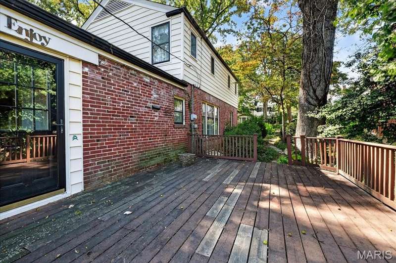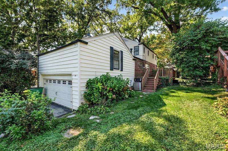 First time available in many years, this charming Warson Woods home is ready for a new owner. Gracious entry opens to formal dining room with wall of windows providing tons of natural light. A large living room with gas fireplace, built-ins, crown moldings and wood floors leads to a wonderful sunroom with vaulted ceiling, tile floor and custom windows. The functional kitchen steps down to a charming breakfast room the perfect spot for morning coffee. Two nicely sized bedrooms and a full bath and a powder room off the entry hall complete the main floor. Upstairs you will find a large primary bedroom with 3 closets and original wood floors. The second bedroom has charming windows, wood floors and two closets. A spacious hall bath with tub and shower. The lower level includes a rec room, laundry and utility room. There is also an attached two car garage a rare find in Warson Woods. Private deck and wonderful corner lot with mature trees. Convenient to shopping, schools, and restaurants. Warson Woods pool available with membership. Don't forget the annual 4th of July parade.