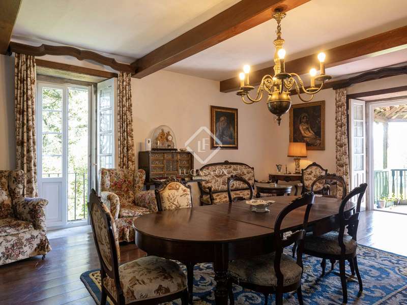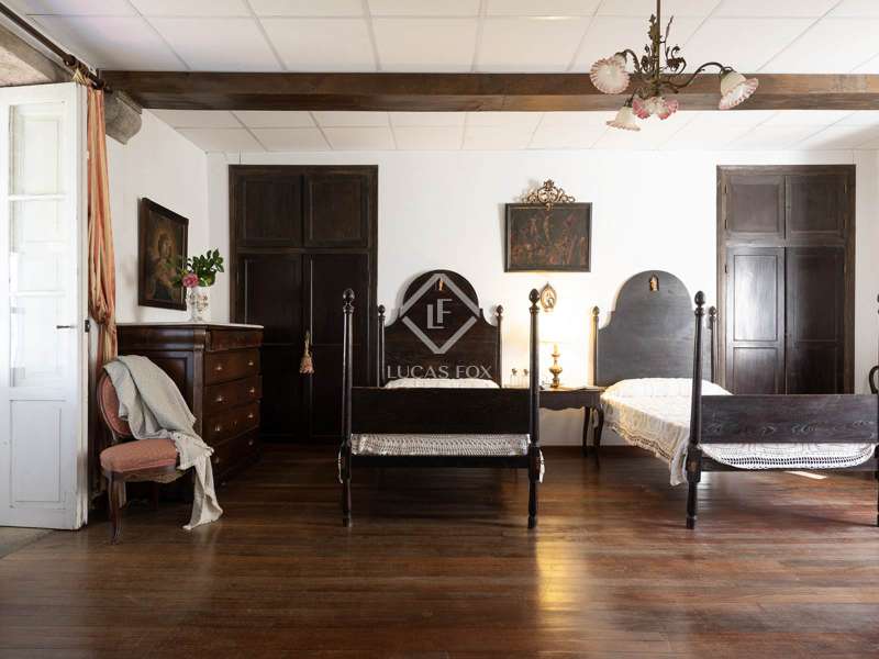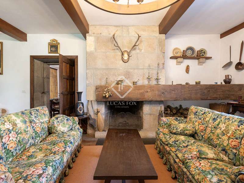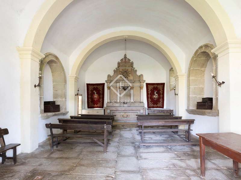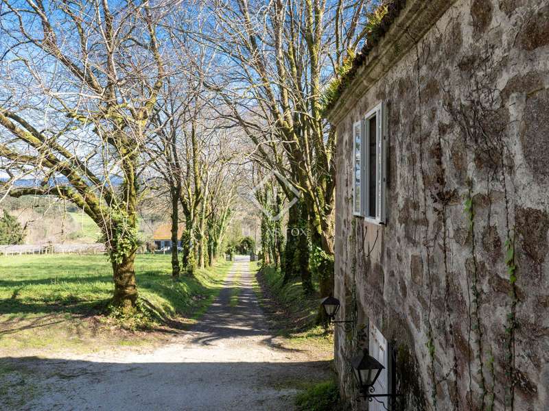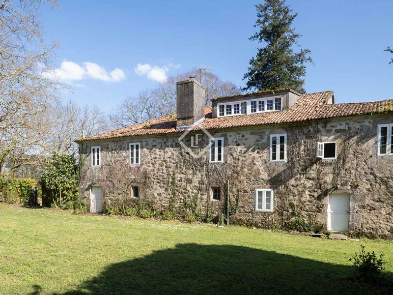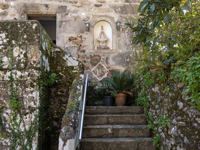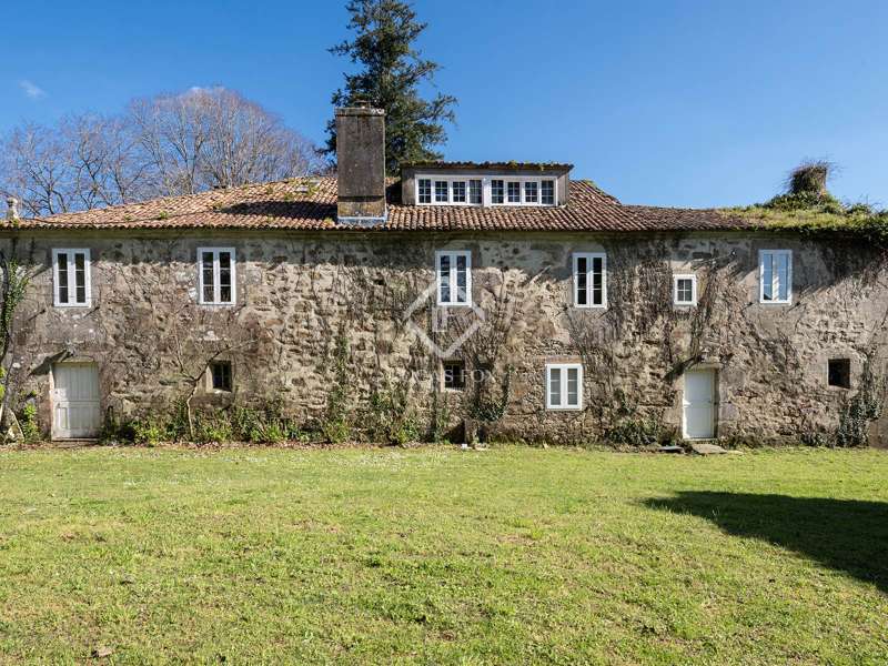 More than 4 hectares of land (40,000 m²) surround this Galician manor house, which includes its own chapel. The house provides a peaceful location with views over the natural landscape and proximity to the city of Santiago de Compostela, making it an excellent countryside retreat. Driving up the impressive driveway, the estate features a substantial plot of land extending to the right, with fruit trees and chestnuts, and gardens to the left, on the way up to the main house, a stone construction, with terraces, typical of the architecture of its time. On the other side of the house there is the original grand double-doorway to the estate, with stone columns and a cross guarding the door. From this side the facade is a simple stone and mortar finish over two floors plus the rooms in the attic. The terraces are all on the other side, which faces south and therefore gets the best of the sun throughout the day. The main entrance is via a stone staircase at the east end of the building, which leads into the first floor. Of course, in its day, the ground floor of the building would have been quarters for animals, so the first floor is where the main living areas were built. The roof of the house was replaced in the 1980s after a fire, and many renovations were carried out at that point too. The property remains in good condition, but needs a renovation in order to bring it up to today's standards, and to help this property reach its full potential. Going through the main entrance, there is a hall which gives access to the downstairs, and a living room to the left, with a large stone fireplace. There are terraces facing south from the lounge area, as well as a larger corner terrace accessed via the dining room and master suite. There is also the kitchen, office, two further bedrooms and a bathroom on this floor. Going up another floor we find five more bedrooms, two bathrooms and a store room on the attic level. On the ground floor, we find a games room, pantry, garage and wood store. Outside, there are gardens, land with fruit trees, chestnuts, vines. The plot extends to more than 35,000 m² and contains the chapel of Santa Maria, the other side of the access road, which is also in its own grounds. This property would suit a large family looking for a countryside retreat, investors looking for a potential rural hotel or events space, or simply buyers interested in historic properties in general.
