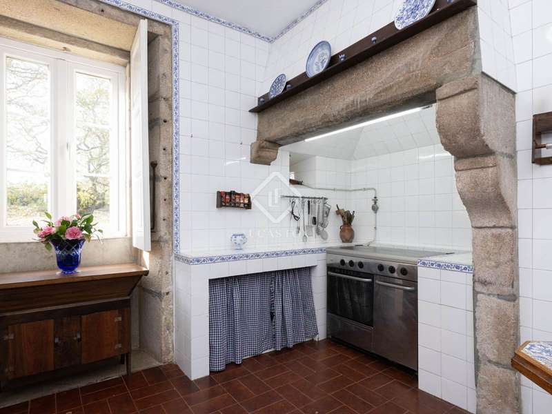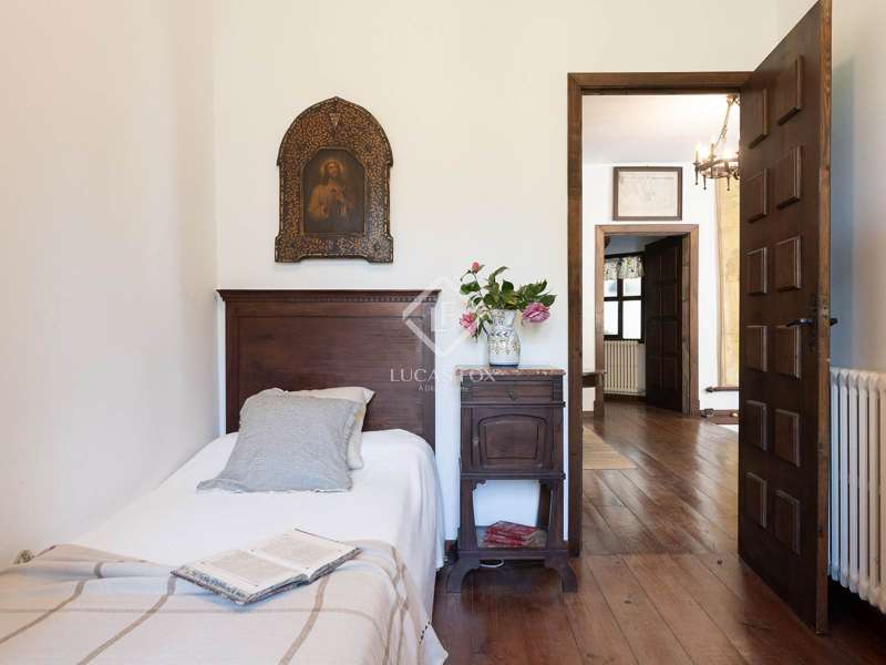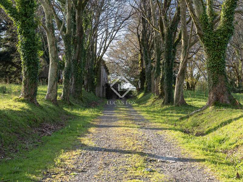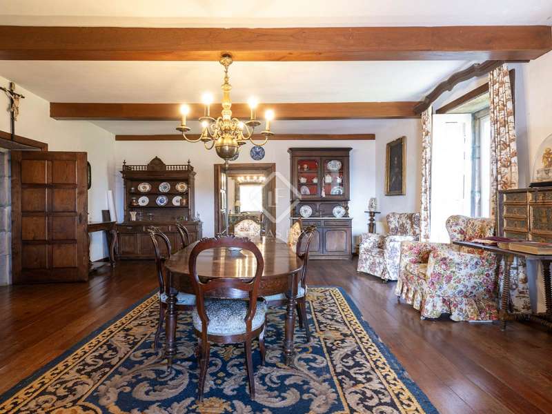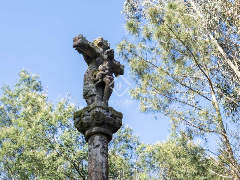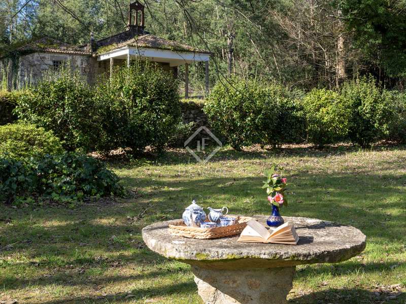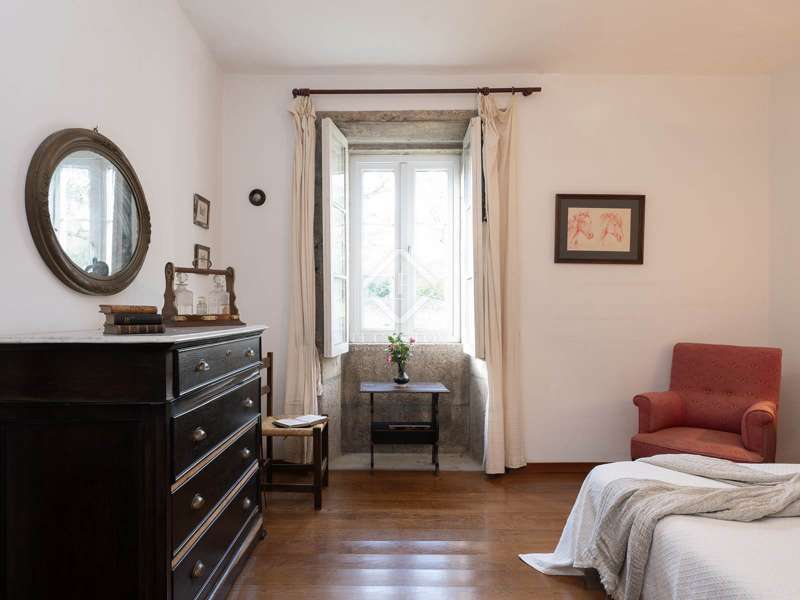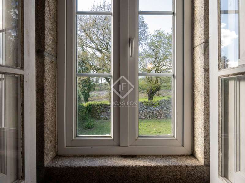 More than 4 hectares of land (40,000 m²) surround this Galician manor house, which includes its own chapel. The house provides a peaceful location with views over the natural landscape and proximity to the city of Santiago de Compostela, making it an excellent countryside retreat. Driving up the impressive driveway, the estate features a substantial plot of land extending to the right, with fruit trees and chestnuts, and gardens to the left, on the way up to the main house, a stone construction, with terraces, typical of the architecture of its time. On the other side of the house there is the original grand double-doorway to the estate, with stone columns and a cross guarding the door. From this side the facade is a simple stone and mortar finish over two floors plus the rooms in the attic. The terraces are all on the other side, which faces south and therefore gets the best of the sun throughout the day. The main entrance is via a stone staircase at the east end of the building, which leads into the first floor. Of course, in its day, the ground floor of the building would have been quarters for animals, so the first floor is where the main living areas were built. The roof of the house was replaced in the 1980s after a fire, and many renovations were carried out at that point too. The property remains in good condition, but needs a renovation in order to bring it up to today's standards, and to help this property reach its full potential. Going through the main entrance, there is a hall which gives access to the downstairs, and a living room to the left, with a large stone fireplace. There are terraces facing south from the lounge area, as well as a larger corner terrace accessed via the dining room and master suite. There is also the kitchen, office, two further bedrooms and a bathroom on this floor. Going up another floor we find five more bedrooms, two bathrooms and a store room on the attic level. On the ground floor, we find a games room, pantry, garage and wood store. Outside, there are gardens, land with fruit trees, chestnuts, vines. The plot extends to more than 35,000 m² and contains the chapel of Santa Maria, the other side of the access road, which is also in its own grounds. This property would suit a large family looking for a countryside retreat, investors looking for a potential rural hotel or events space, or simply buyers interested in historic properties in general.