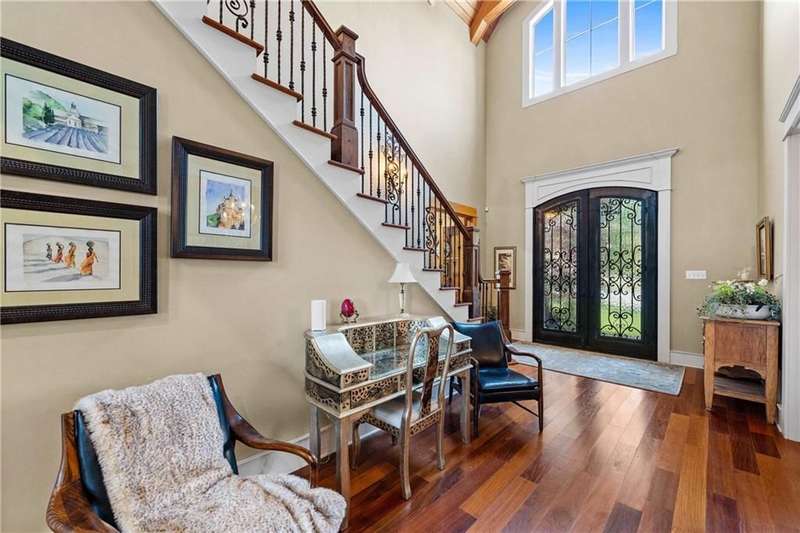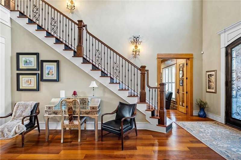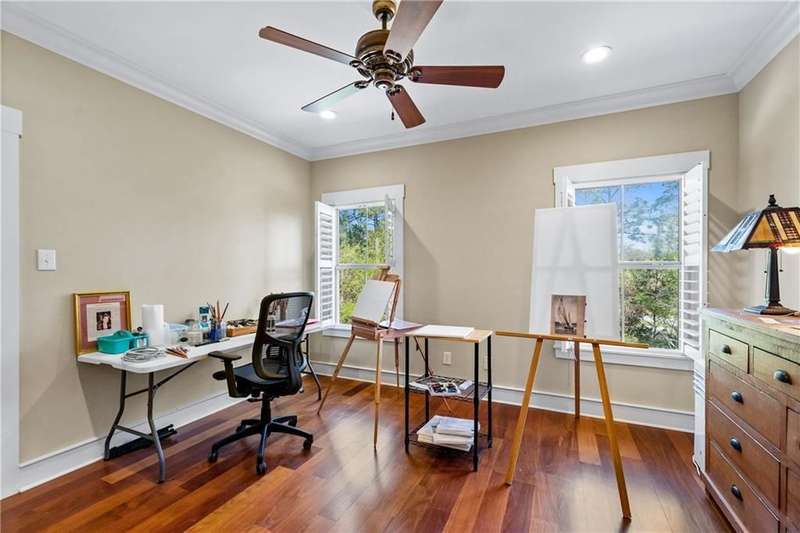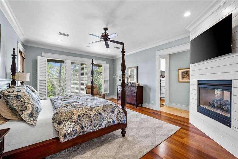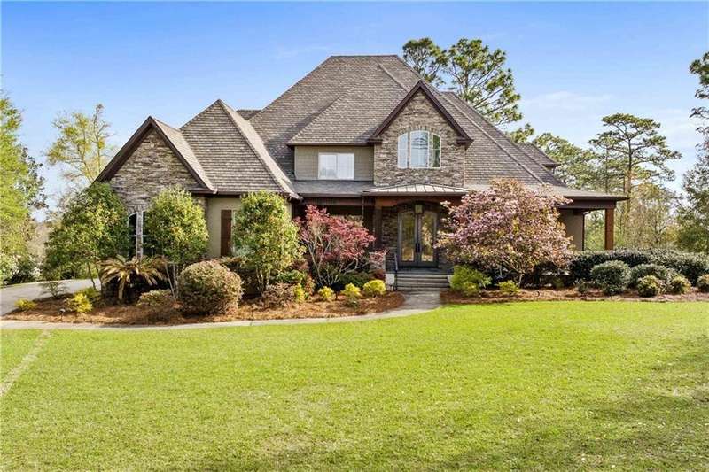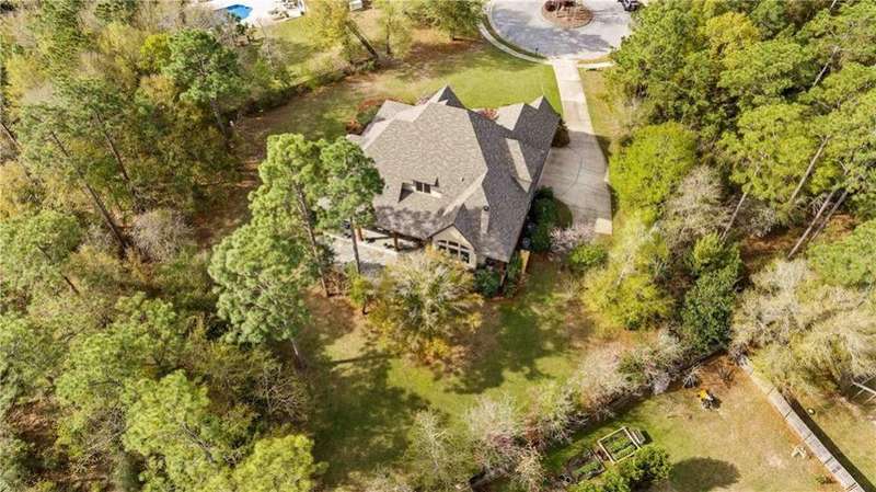 ONE-OF-A-KIND Home in Spanish Fort with new POOL! 2023 Fortified Roof and 35KW Whole House Generator! Stepping through the grand double doors, you're greeted by an architectural masterpiece that will leave you in awe. The soaring ceilings are adorned with custom-milled wood trusses, arched to create a sense of refined grandeur. Right away you will notice the attention to every detail from the solid teak floors, plantation shutters throughout the home, extensive custom trim work, beautiful lighting, coffered ceilings in the dining room and Cypress walls in the office. The expansive kitchen is open to the breakfast room and den with stone woodburning fireplace and more arched custom milled trusses with floor to ceiling windows and updated lighting fixtures. Recent kitchen updates include: Bertrazzoni 6 burner dual fuel range, GE speed cook oven, quartz countertops, wine fridge, modified and painted cabinets, new subway tile, on demand hot/cold water dispenser, and new Brizo faucet. The oversized primary bedroom retreat with two graciously sized walk-in closets and double-sided gas fireplace that can also be enjoyed in the luxurious en-suite bath. Upstairs you will find 3 additional bedrooms, 2 full bathrooms and an extra room with cabinets. The catwalk upstairs serves as both a functional passage and an eye-catching design element. This unique addition enhances the open concept of the home, allowing for breathtaking views of the living space below. Back porch is screened extending the living space outdoors. ADDITIONAL FEATURES: personal well for commercial grade irrigation, New LED landscape lighting, 3-car garage, double water filtration system, 3 Trane HVAC systems (one installed August 2025) with full-service contract, Custom built by Dan Mooney, located in the beautiful Blakeley Forest neighborhood in Spanish Fort. Buyer to verify all information during due diligence.